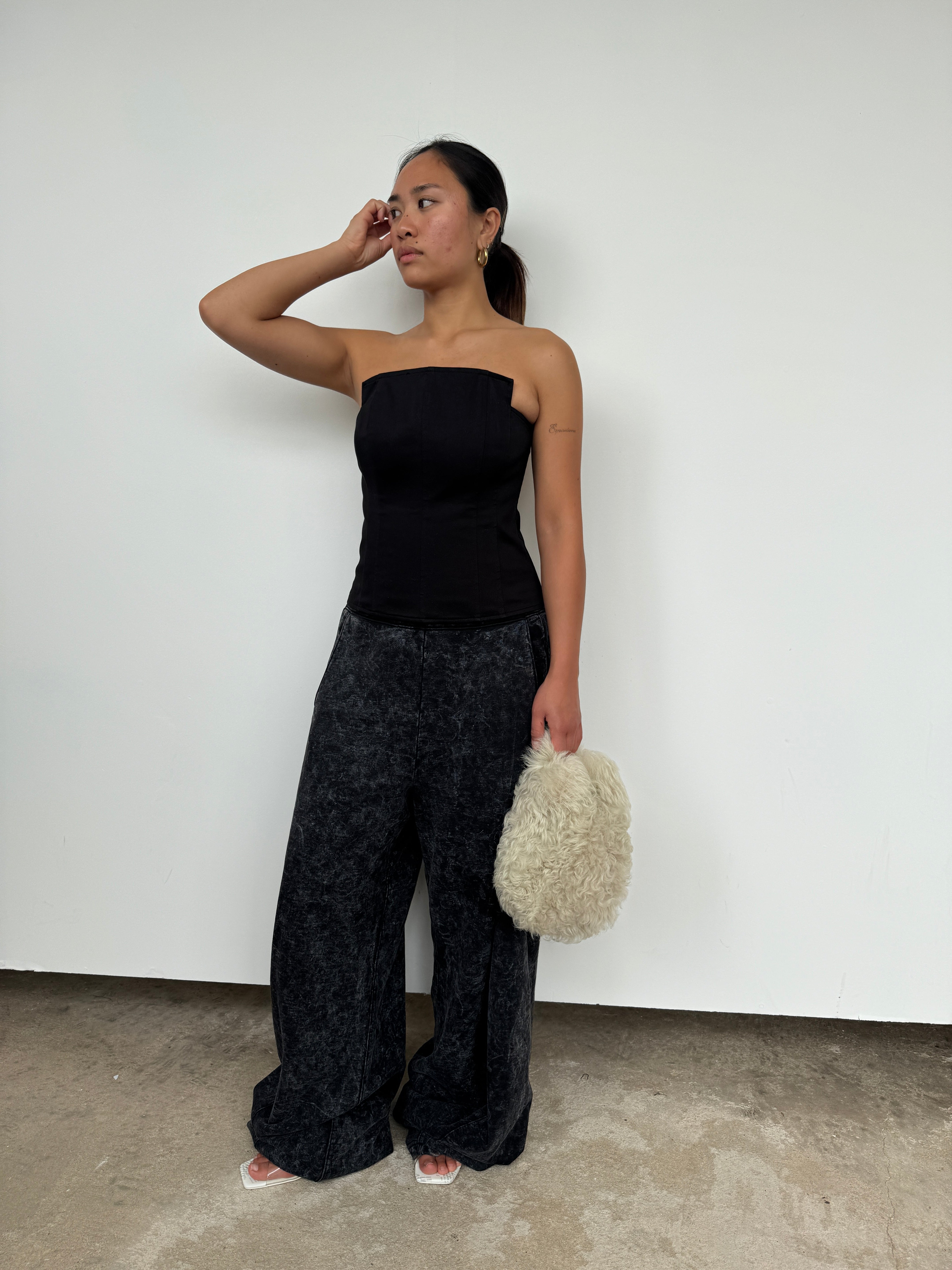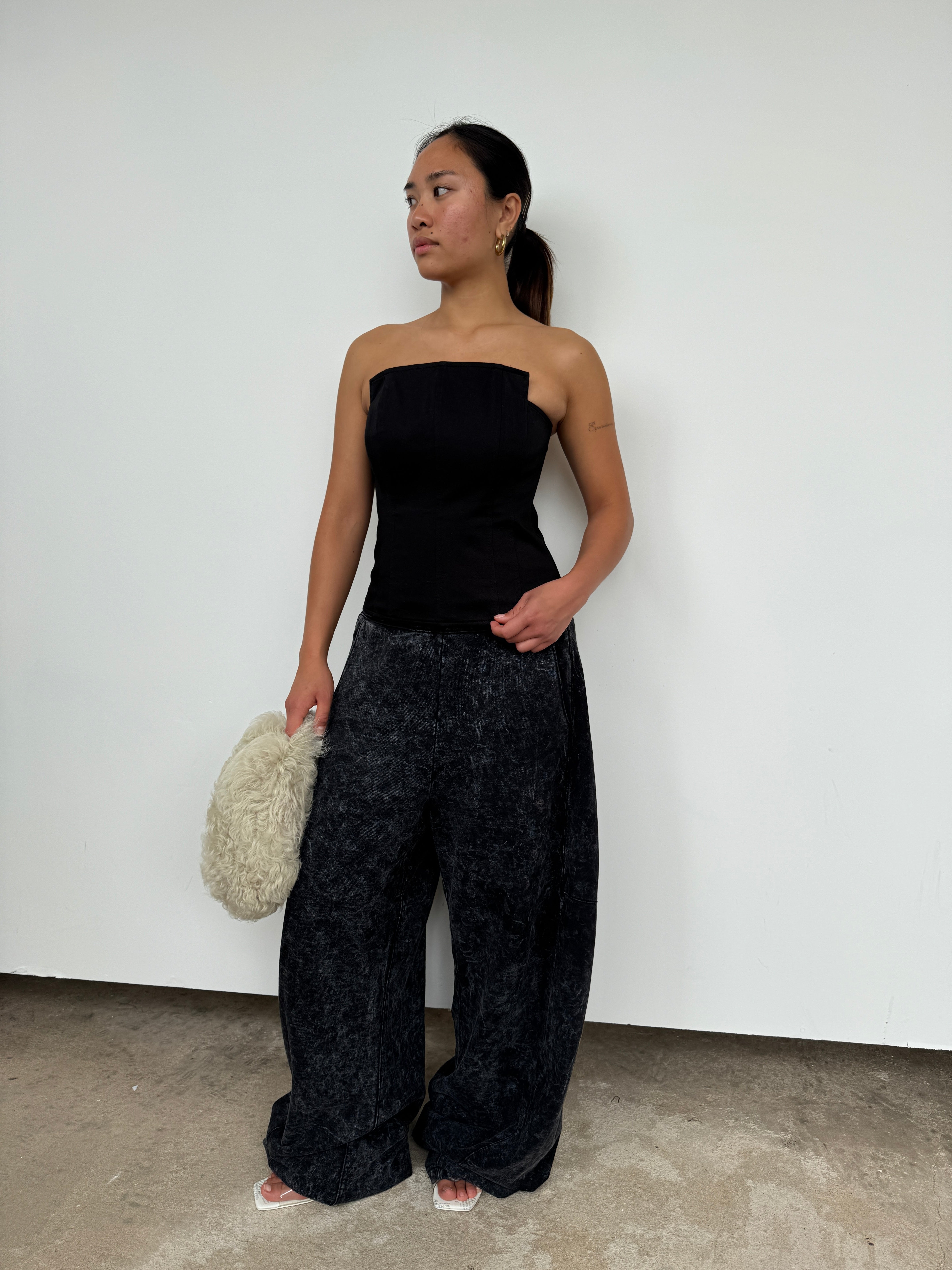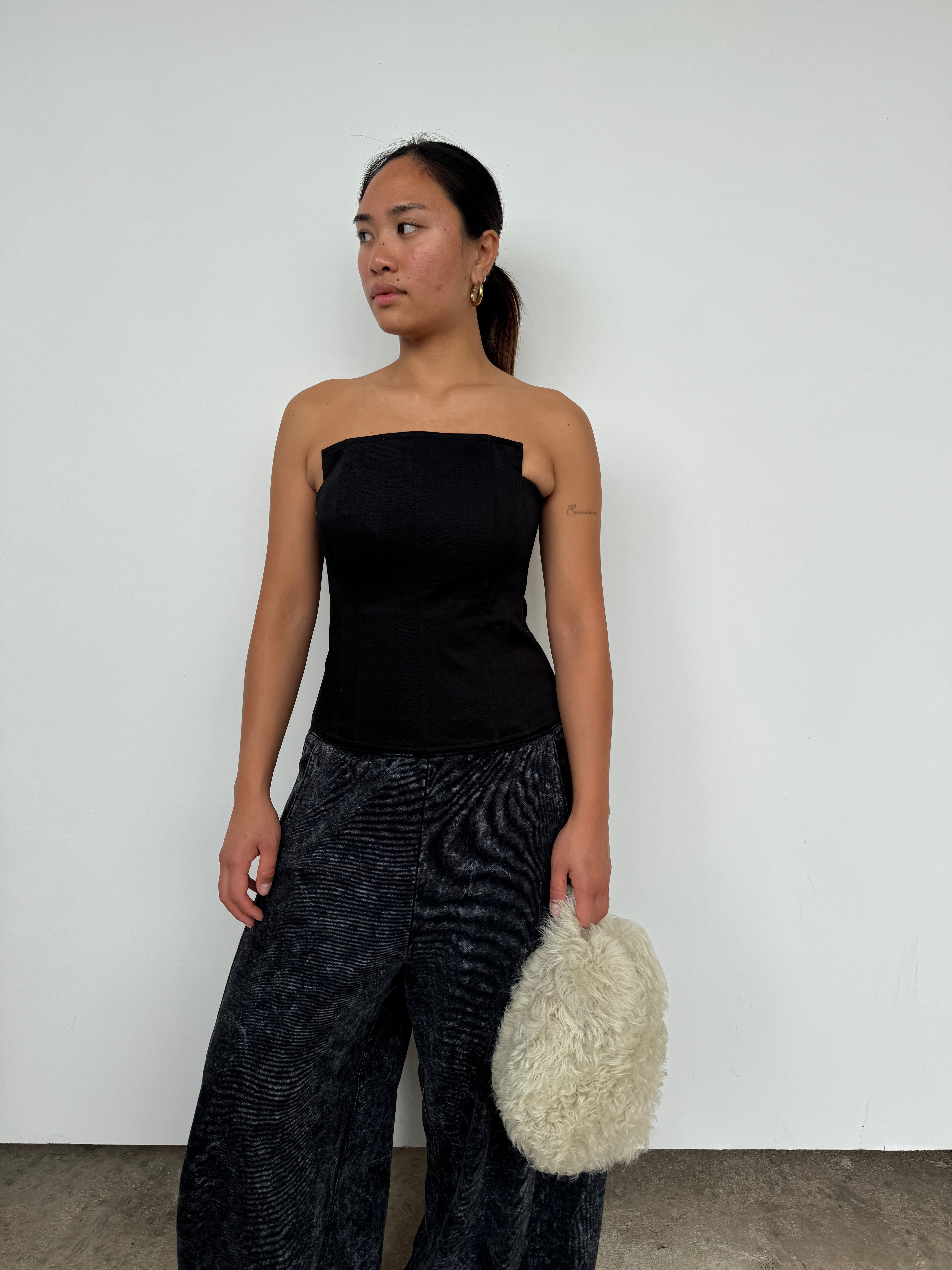 Tibi Black Cotton Bandeau Top | UK8/10