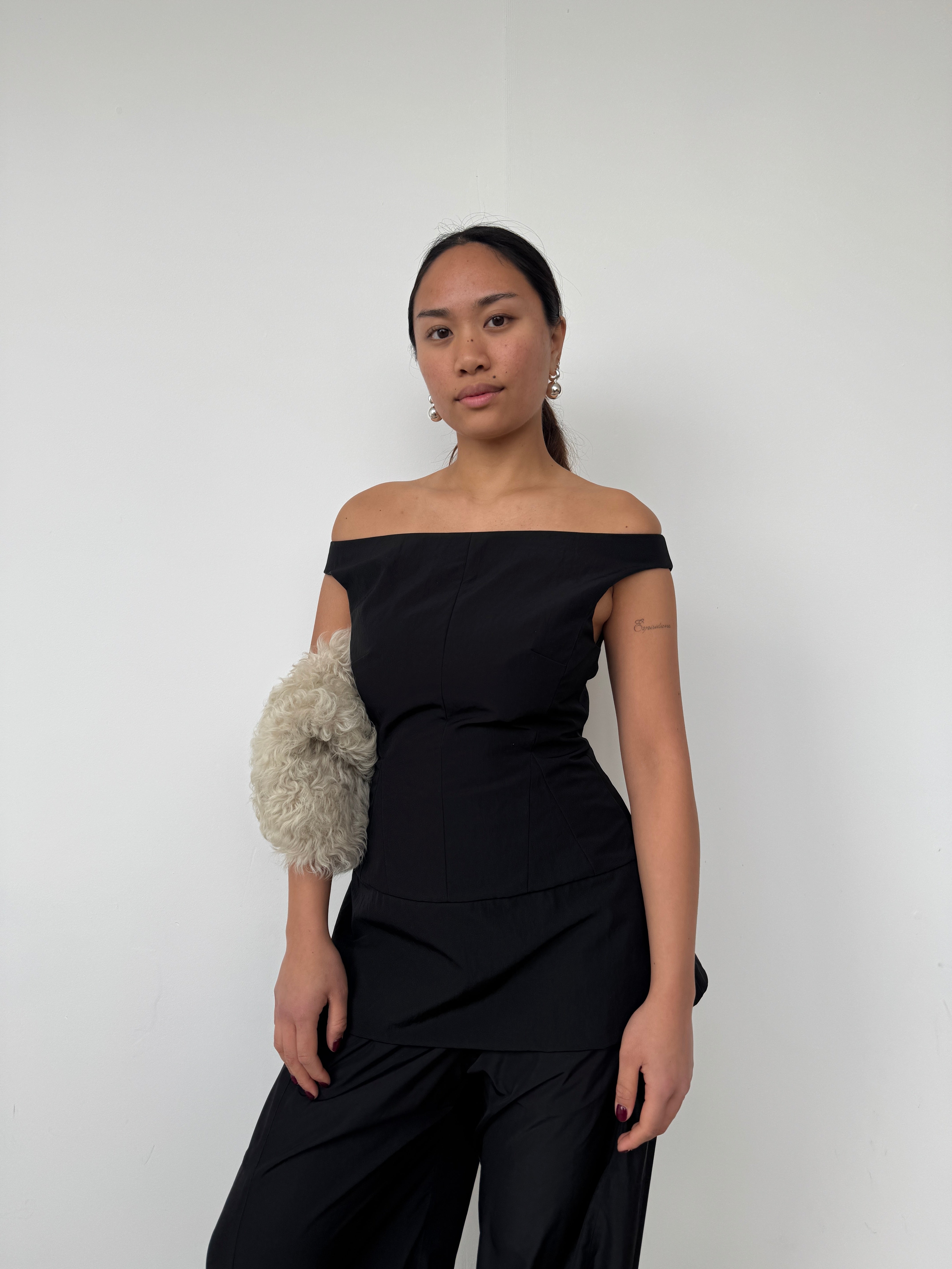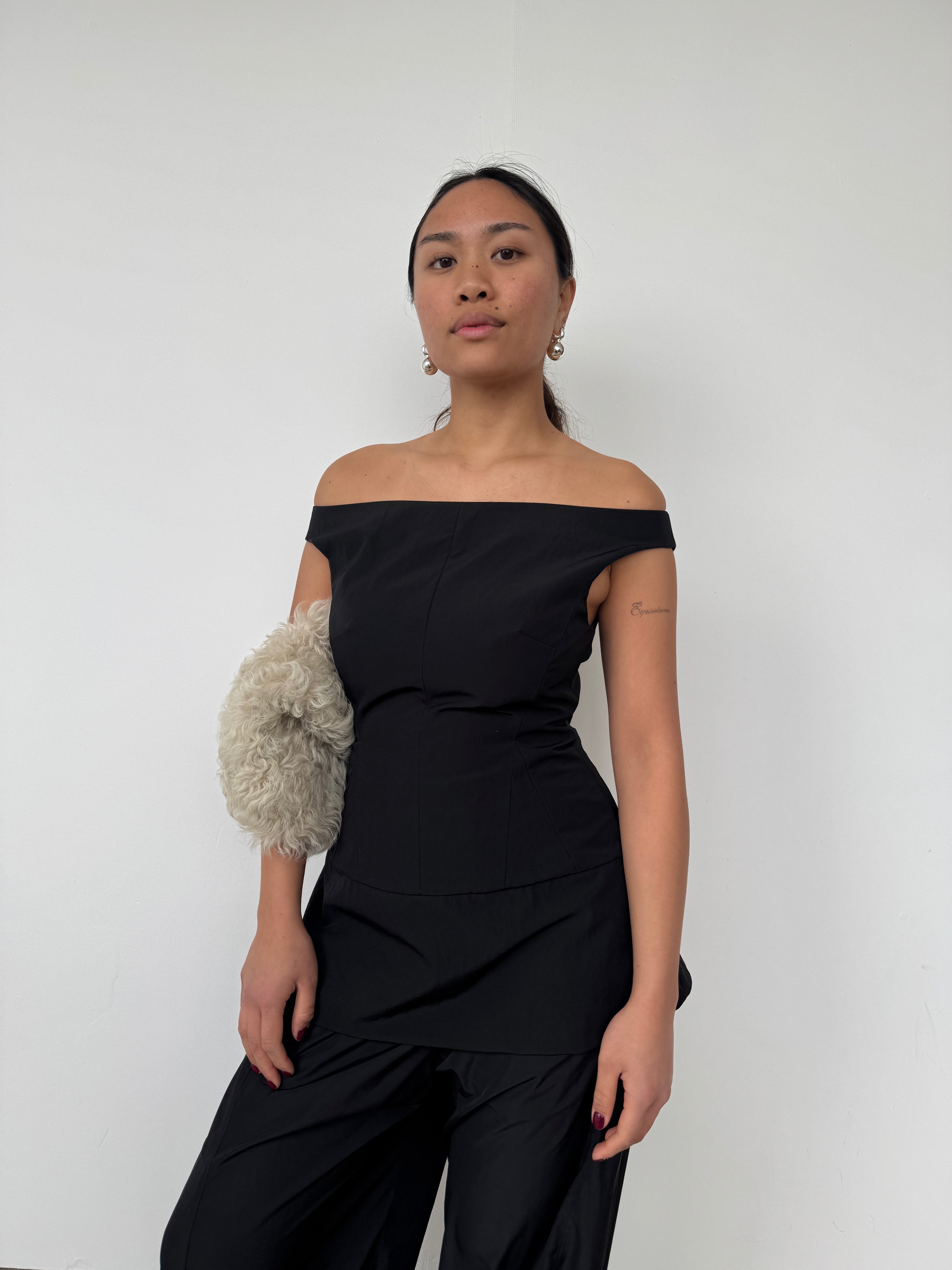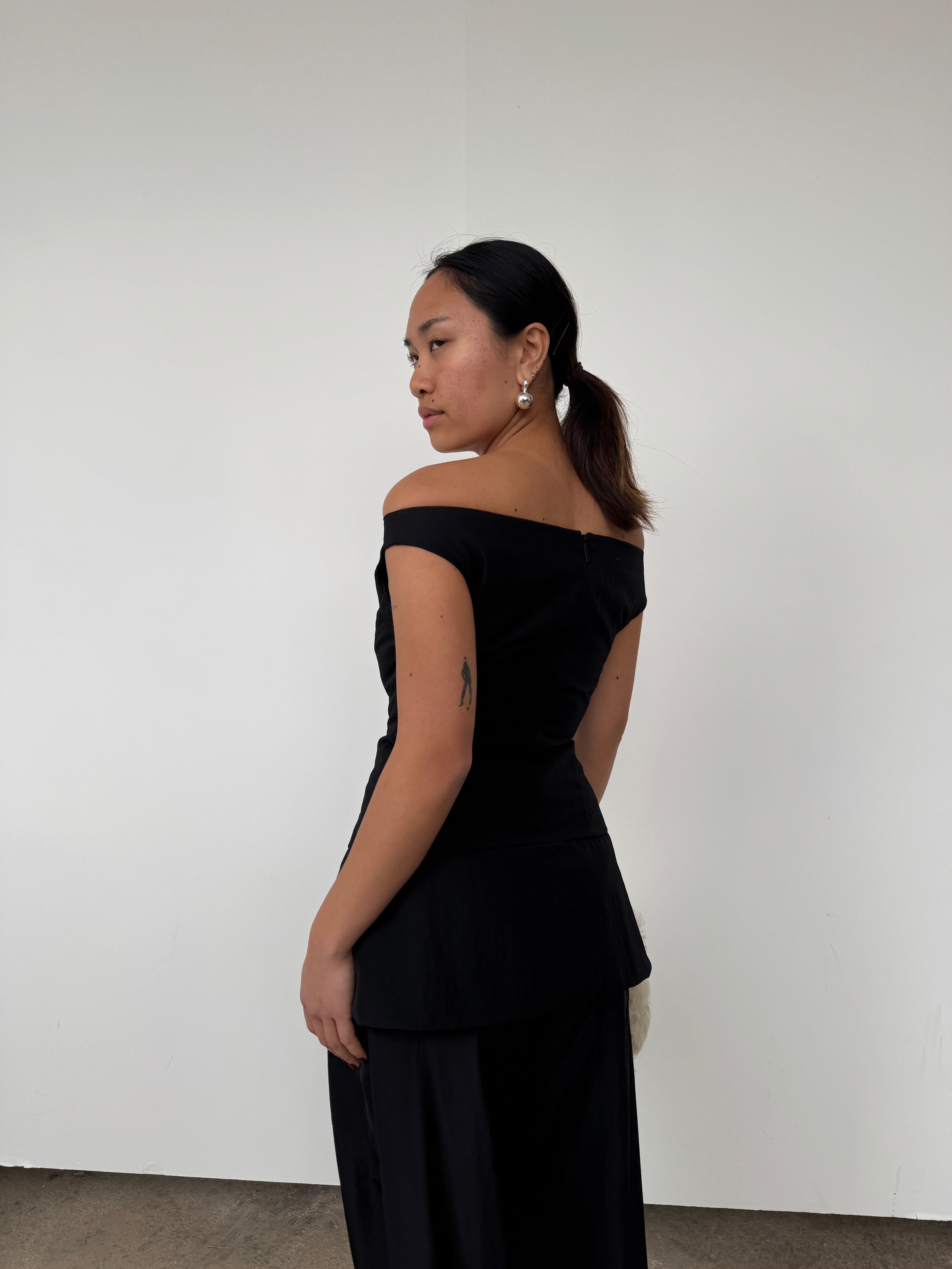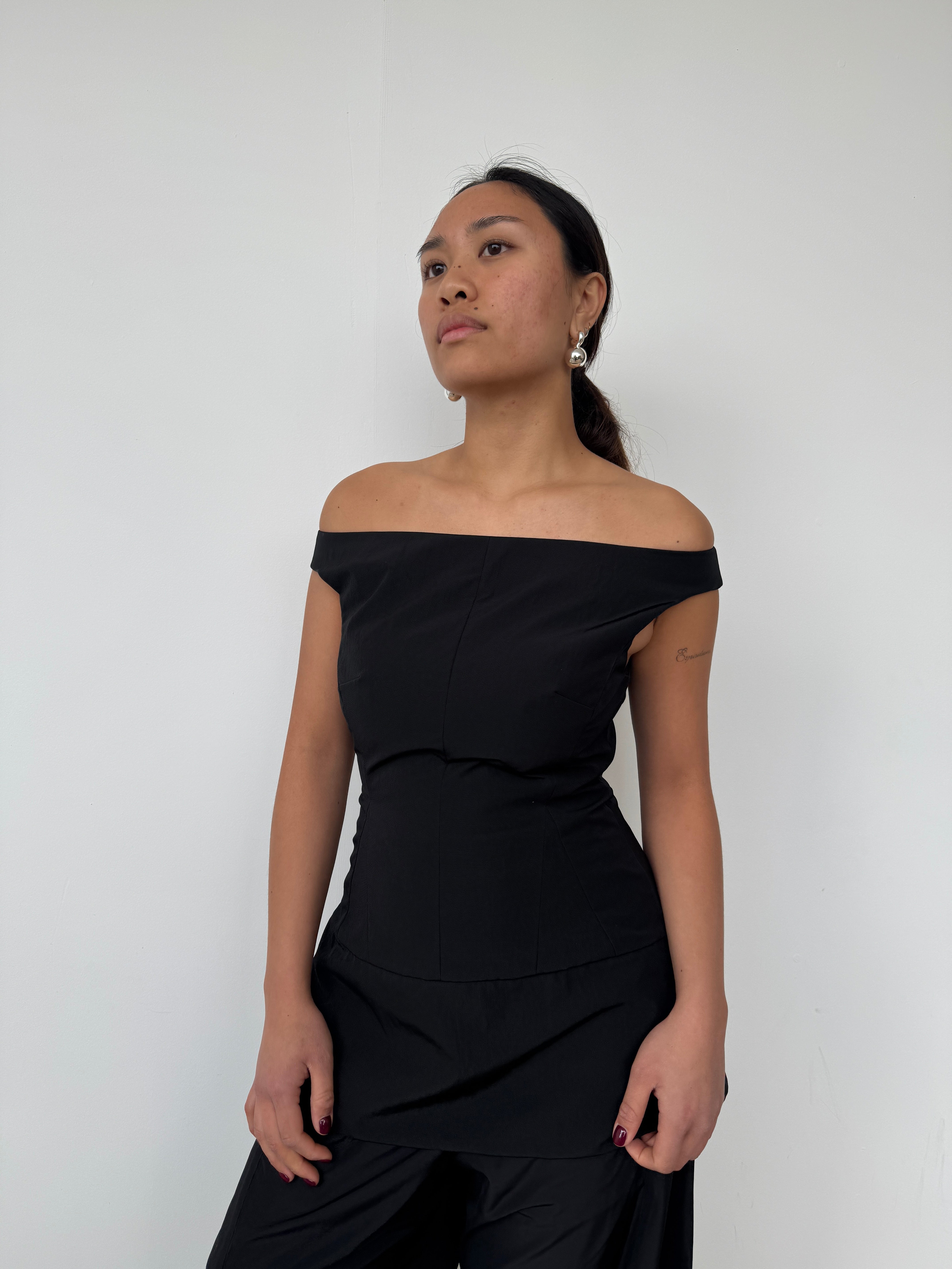 Tibi Black 'Schema' Structured Off Shoulder Top | UK6-8