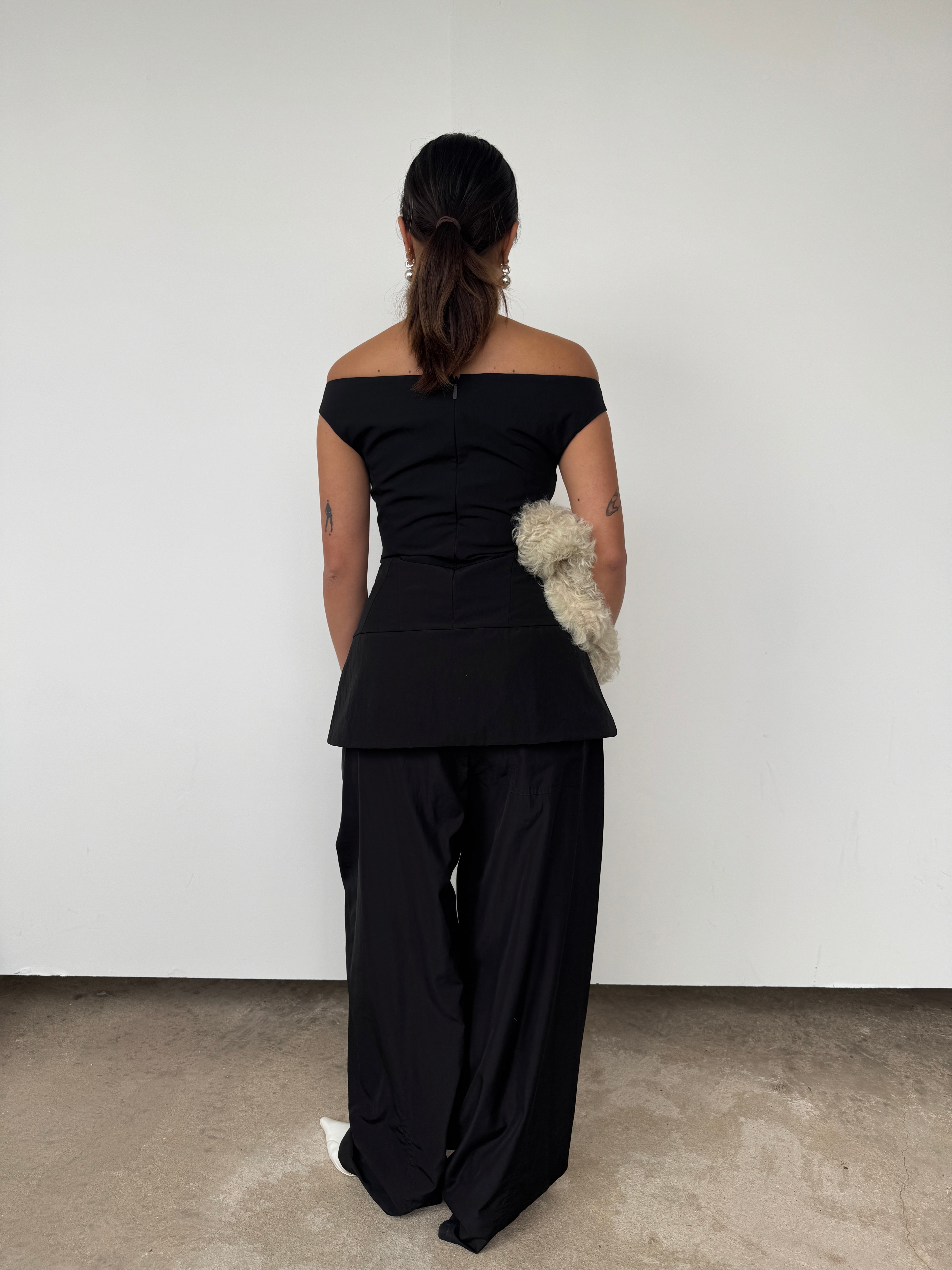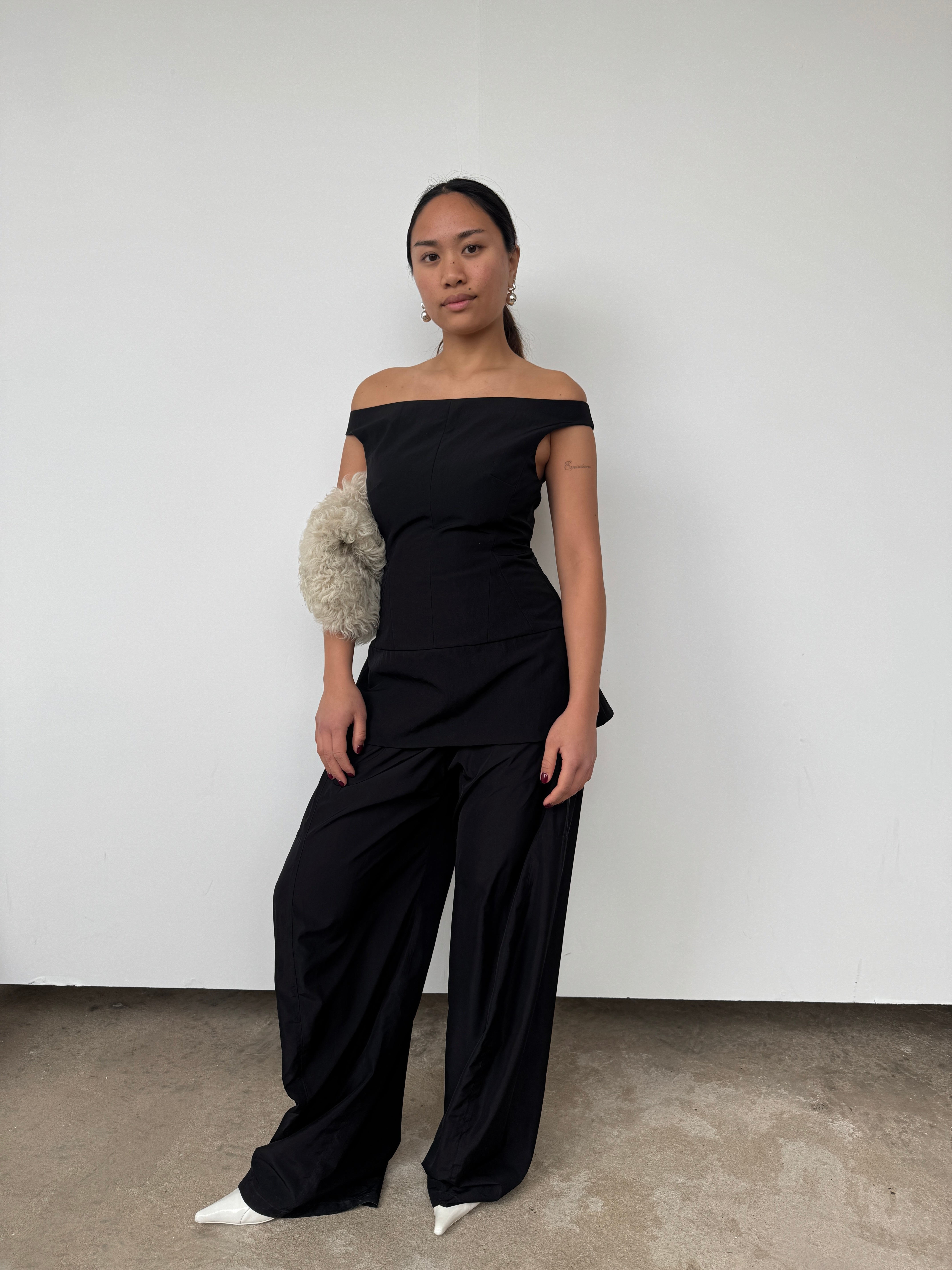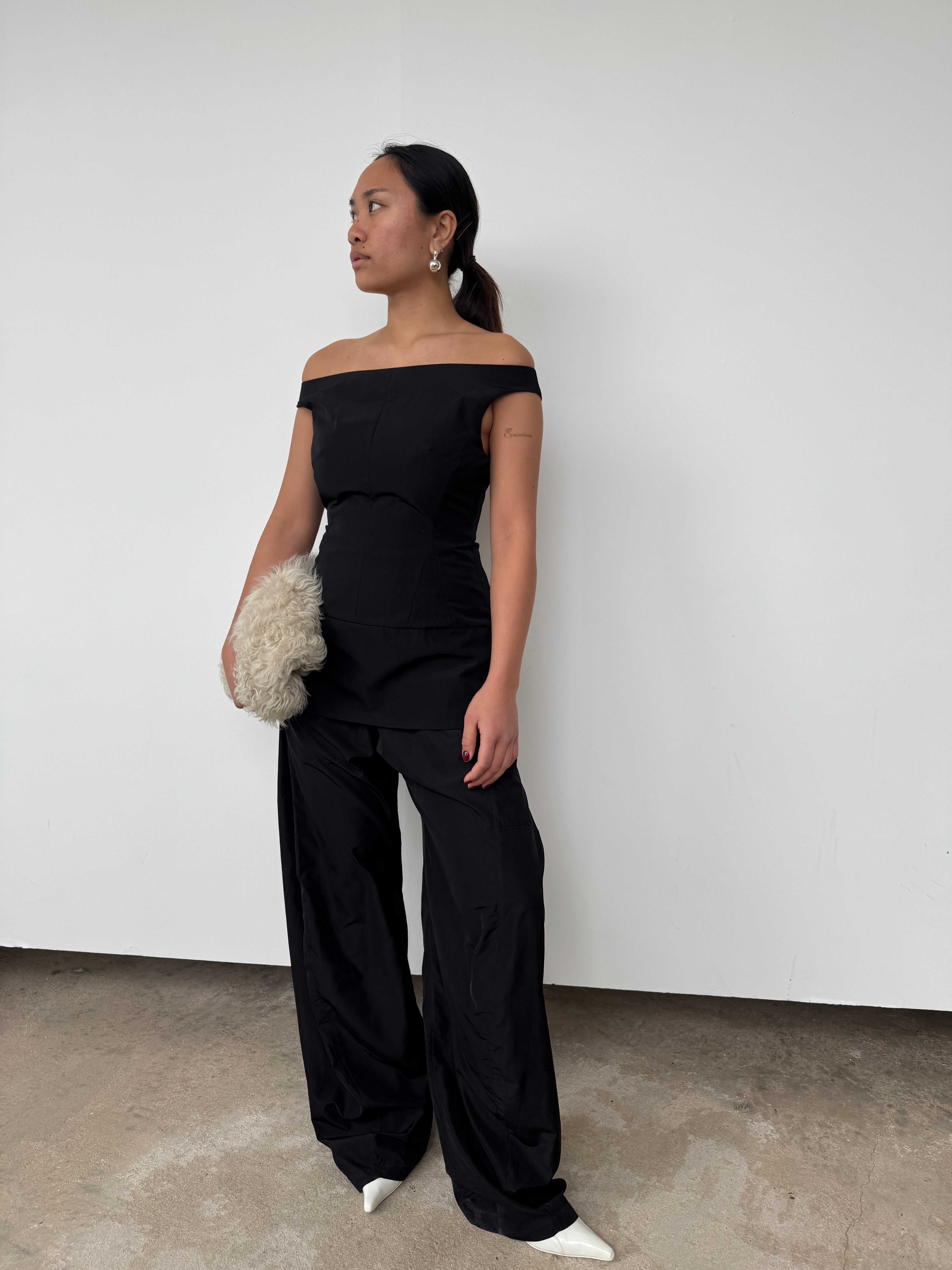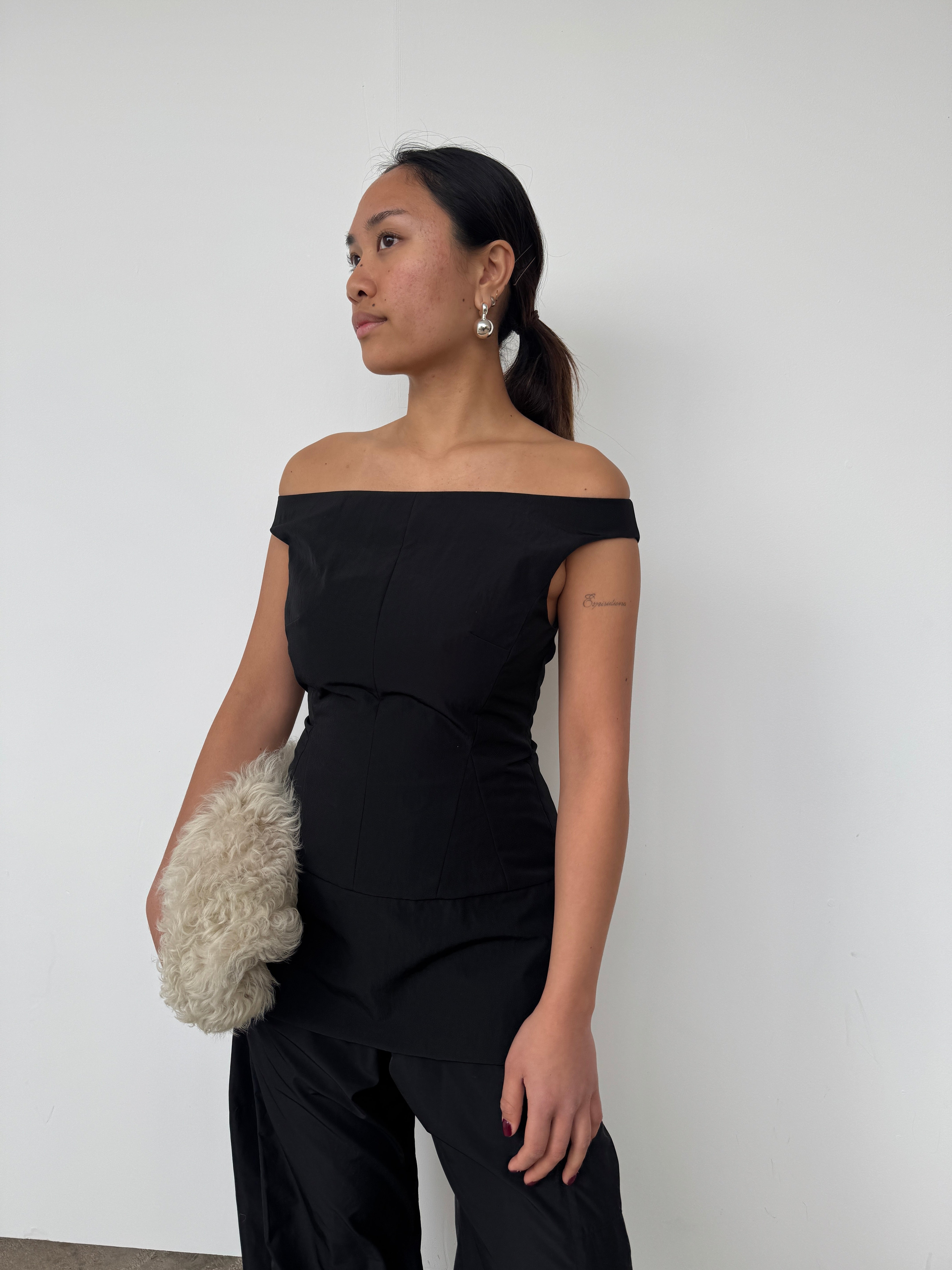 Tibi Black 'Schema' Structured Off Shoulder Top | UK6-8