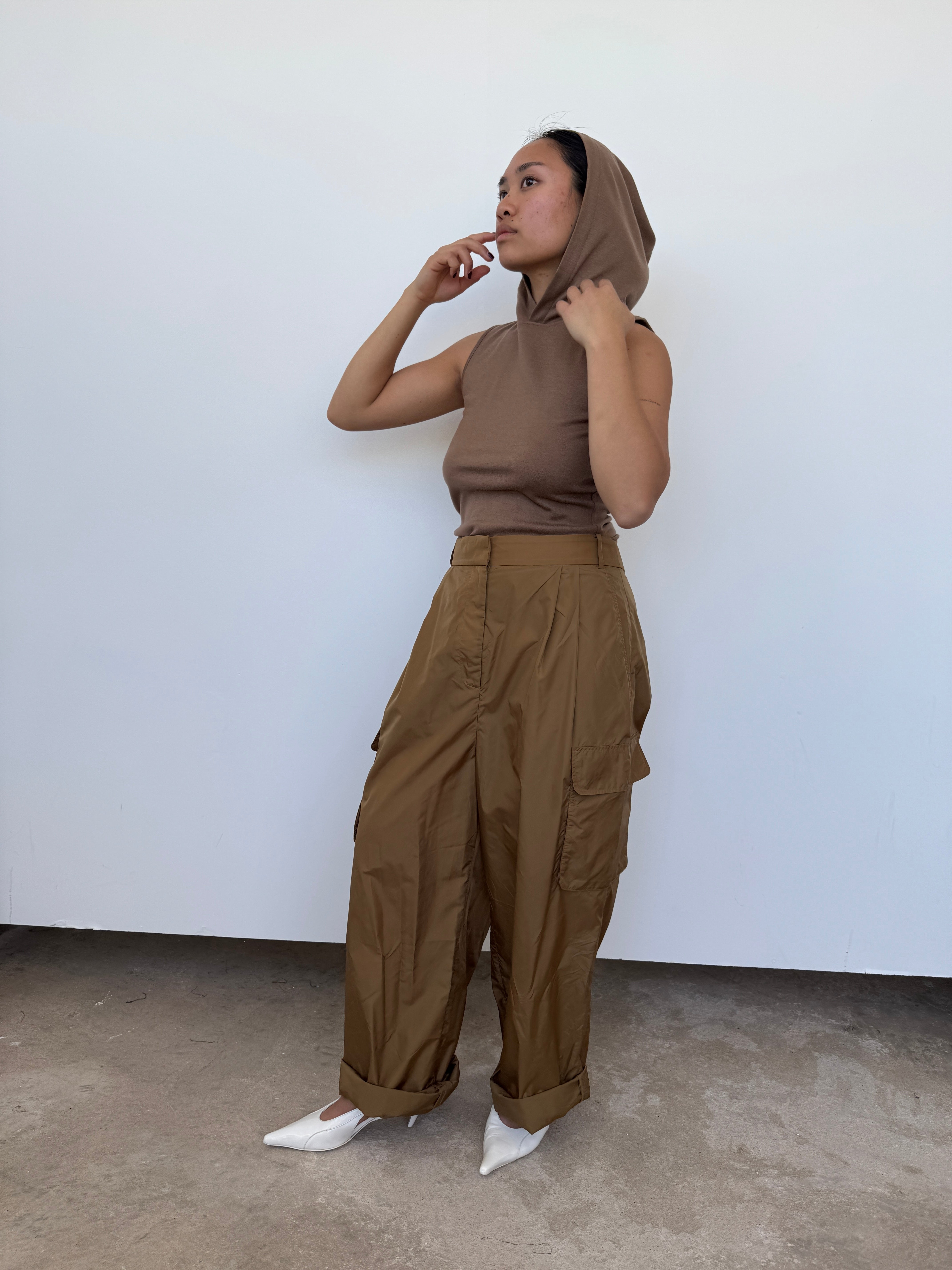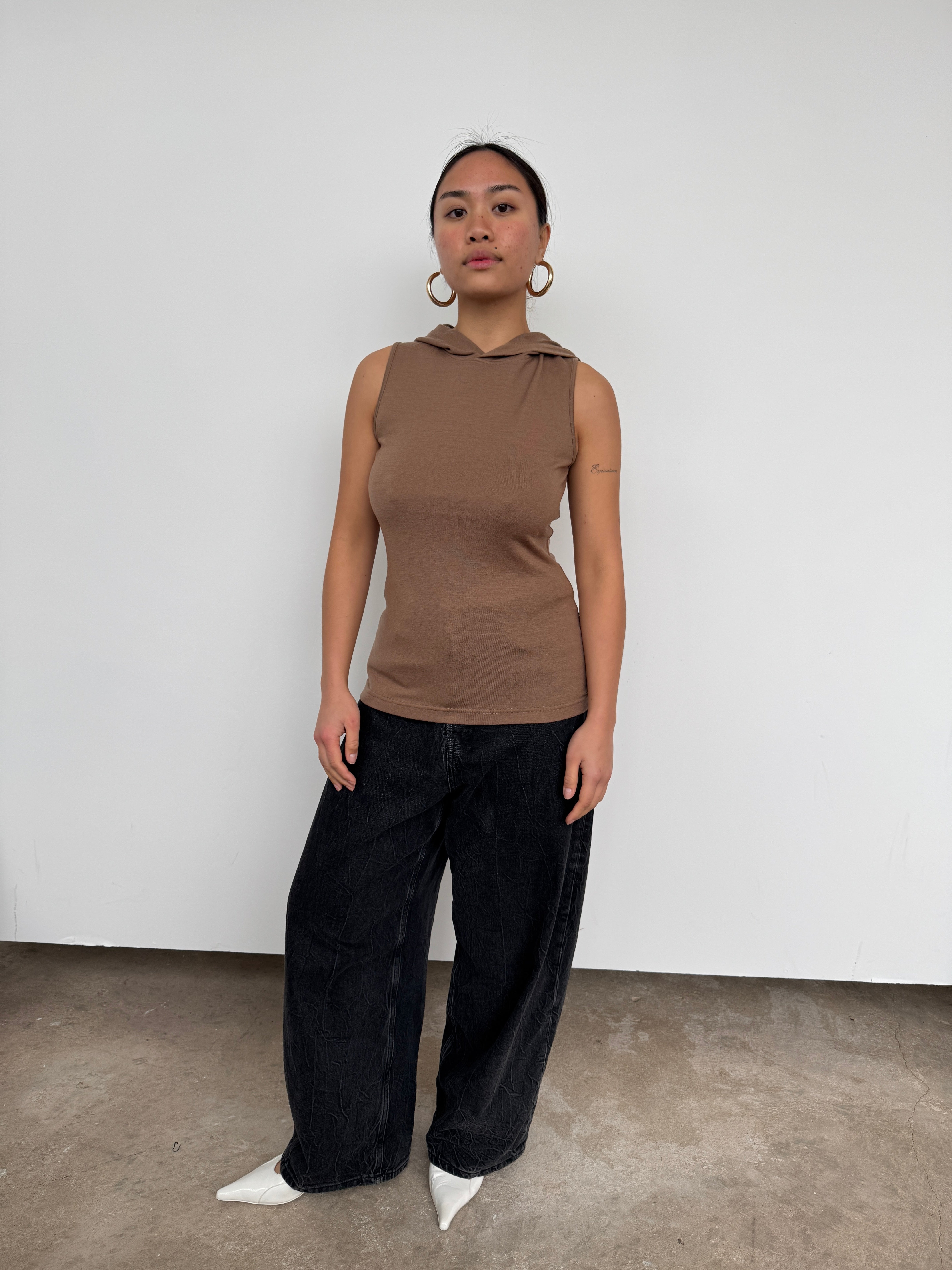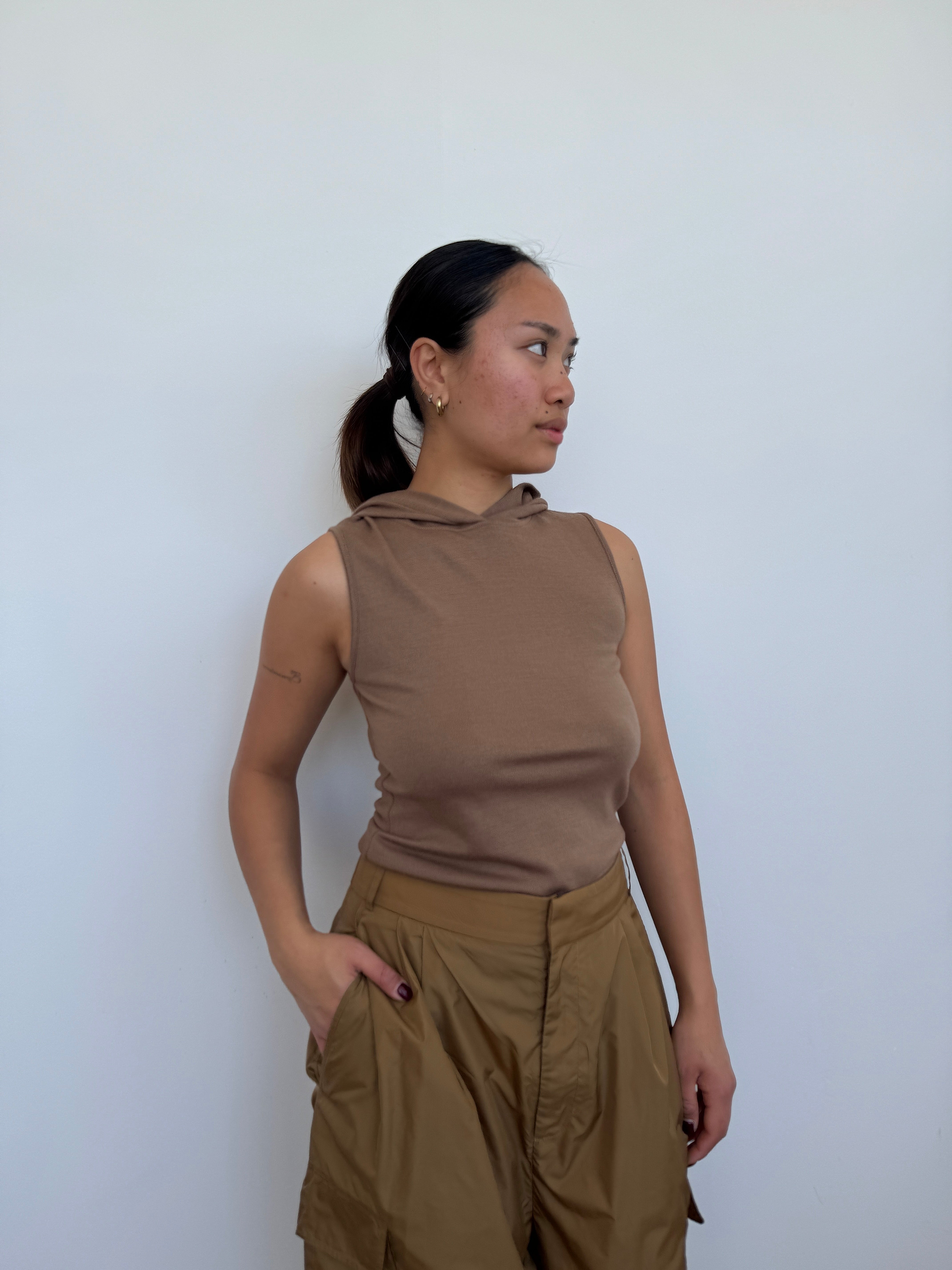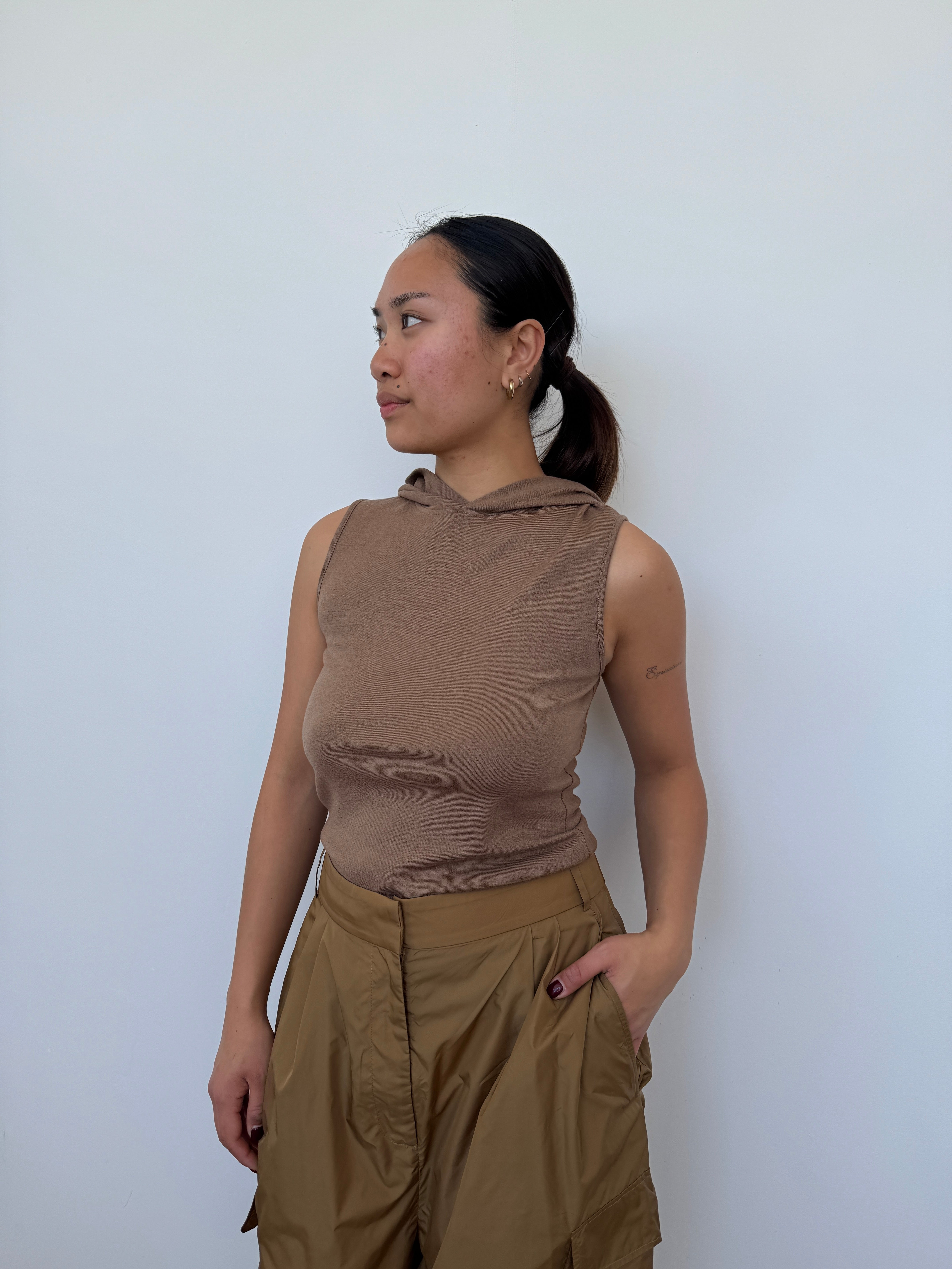 Tibi Brown Hooded Wool Top | S