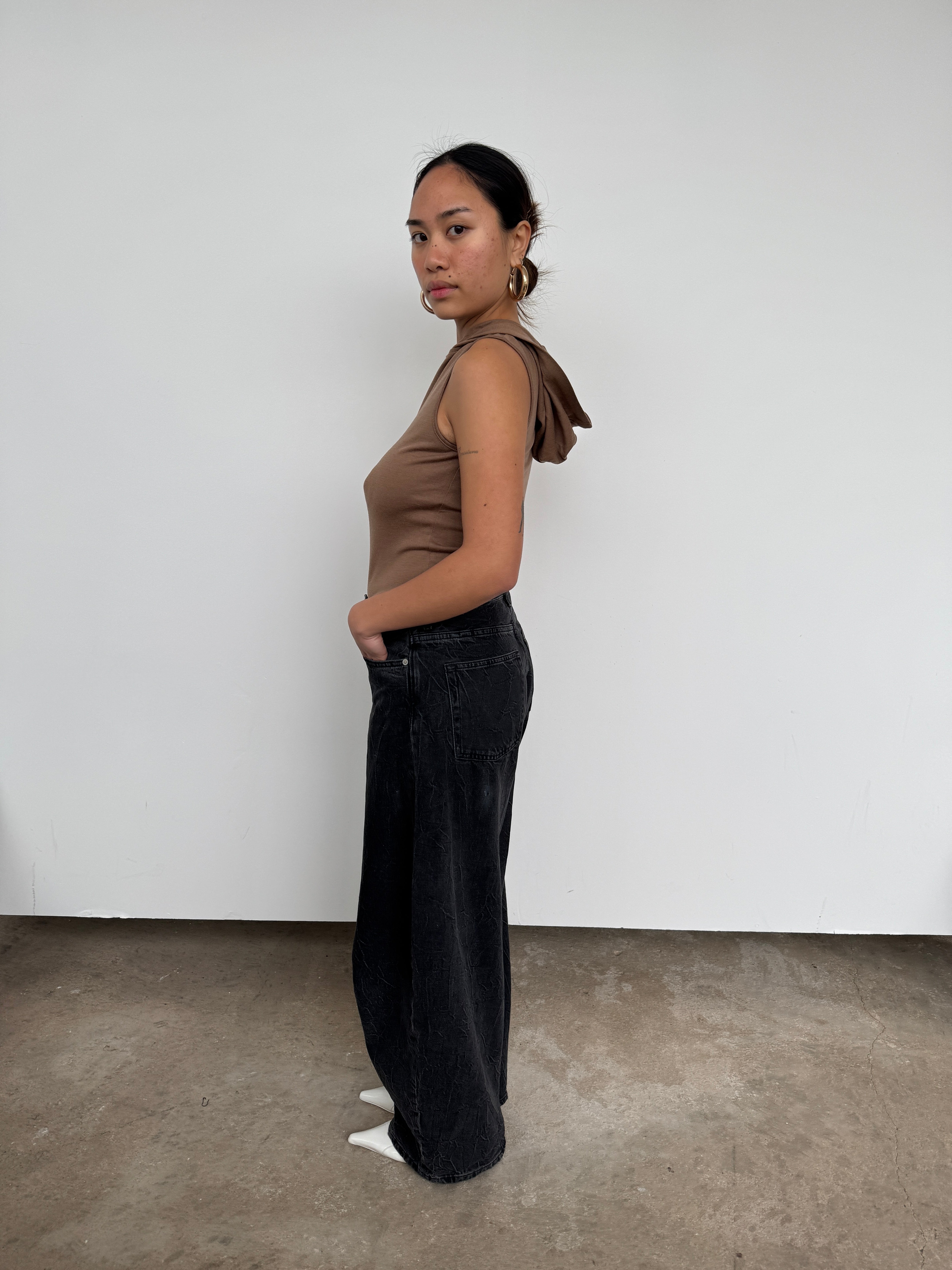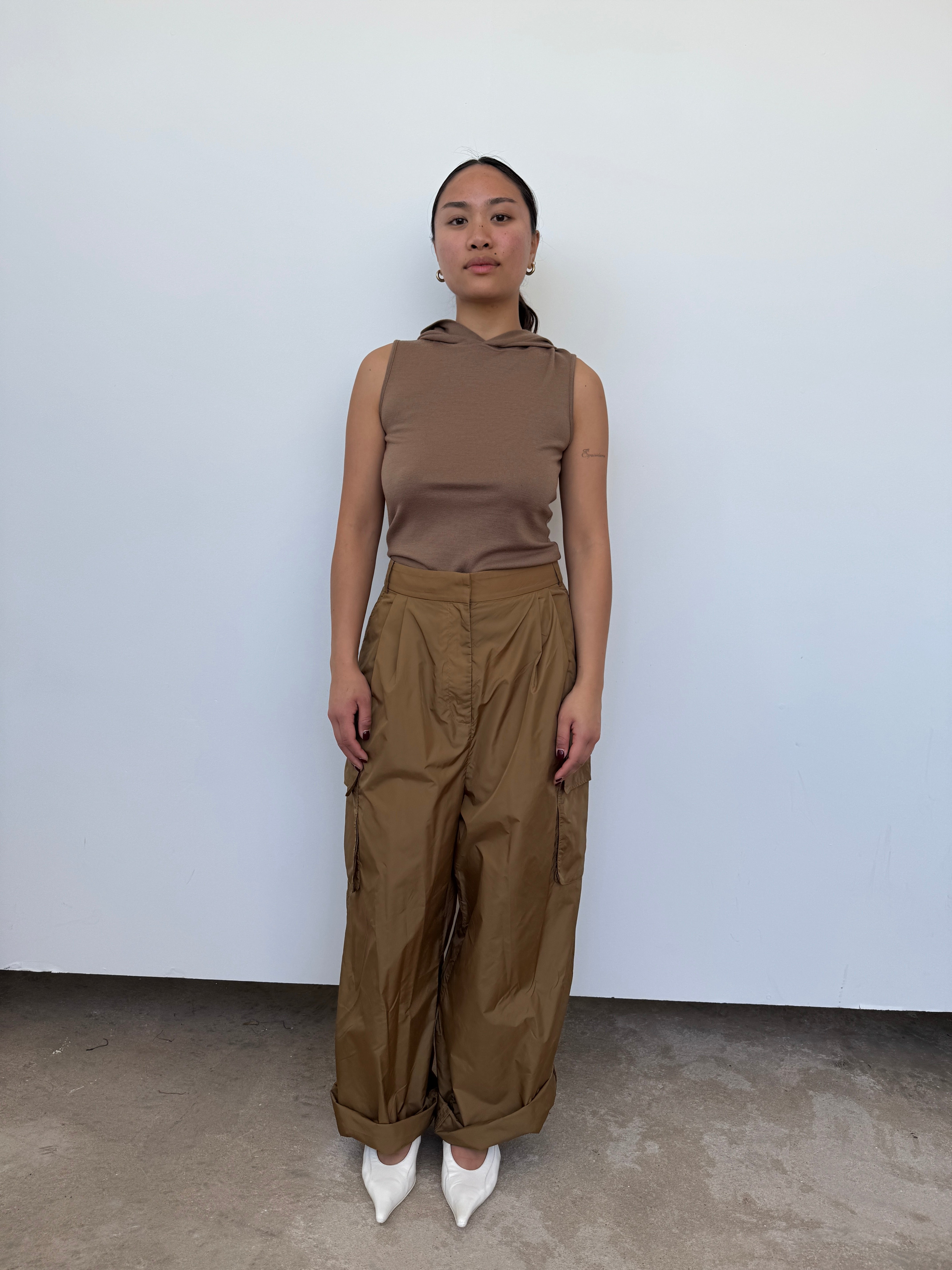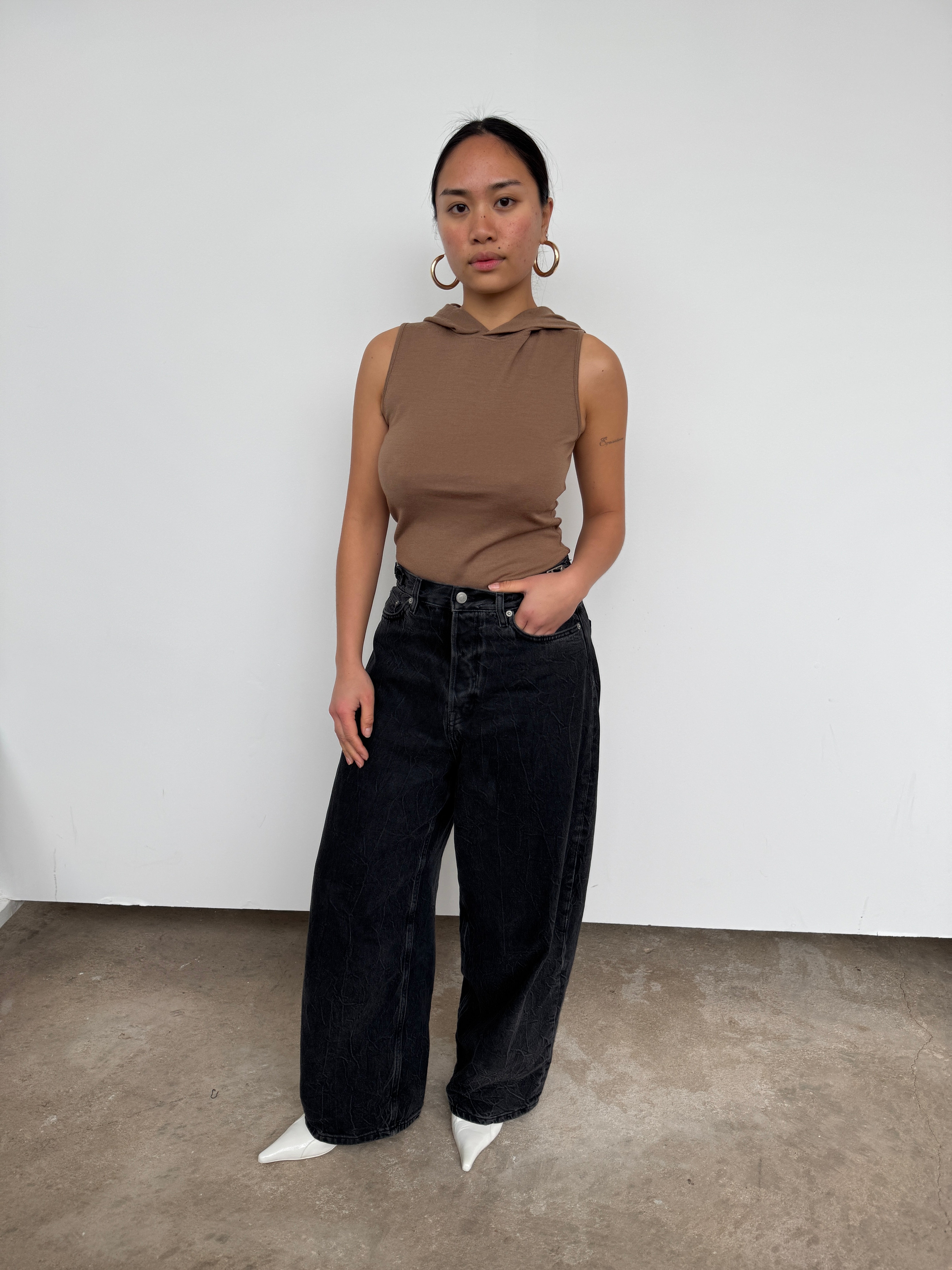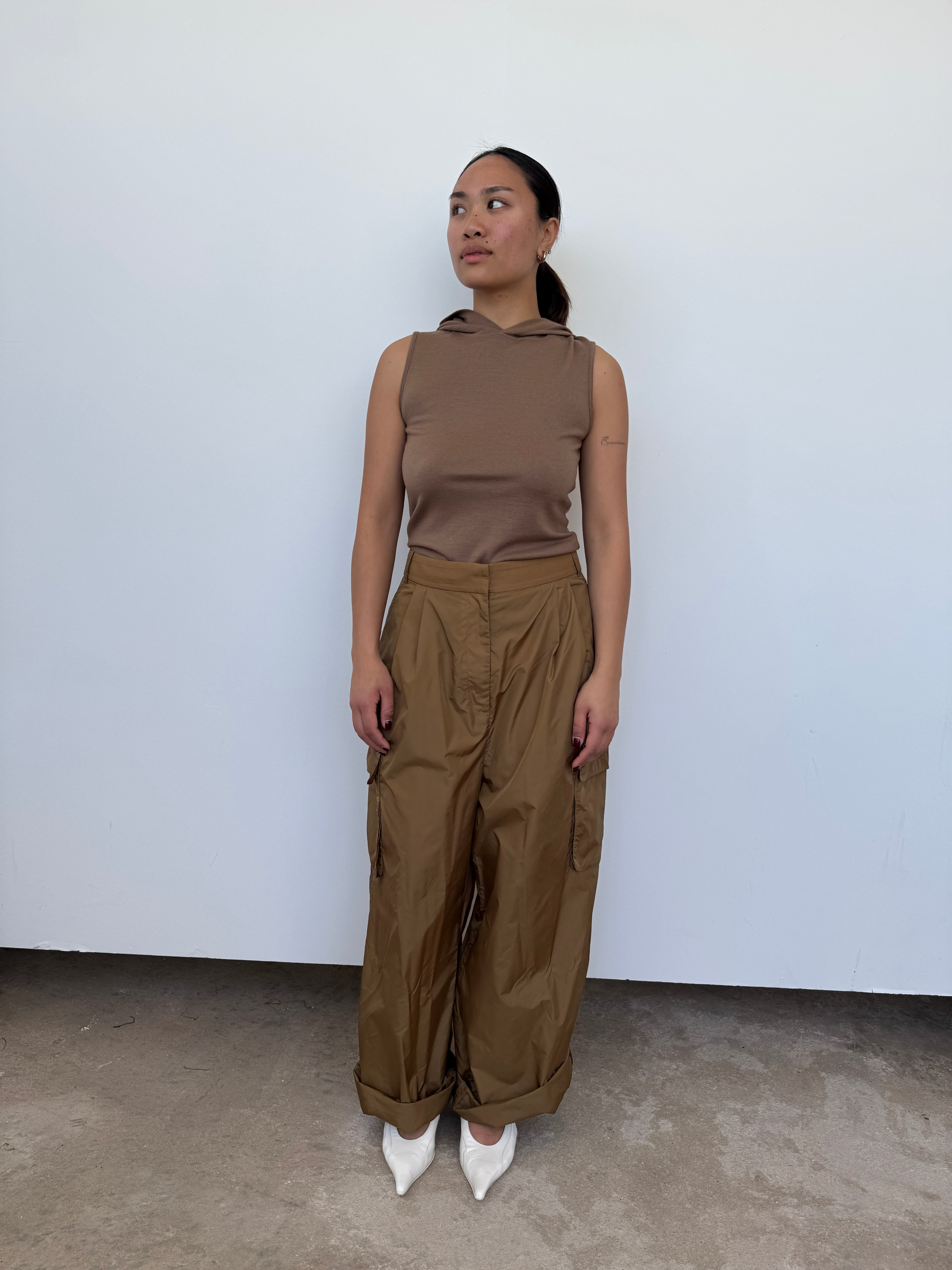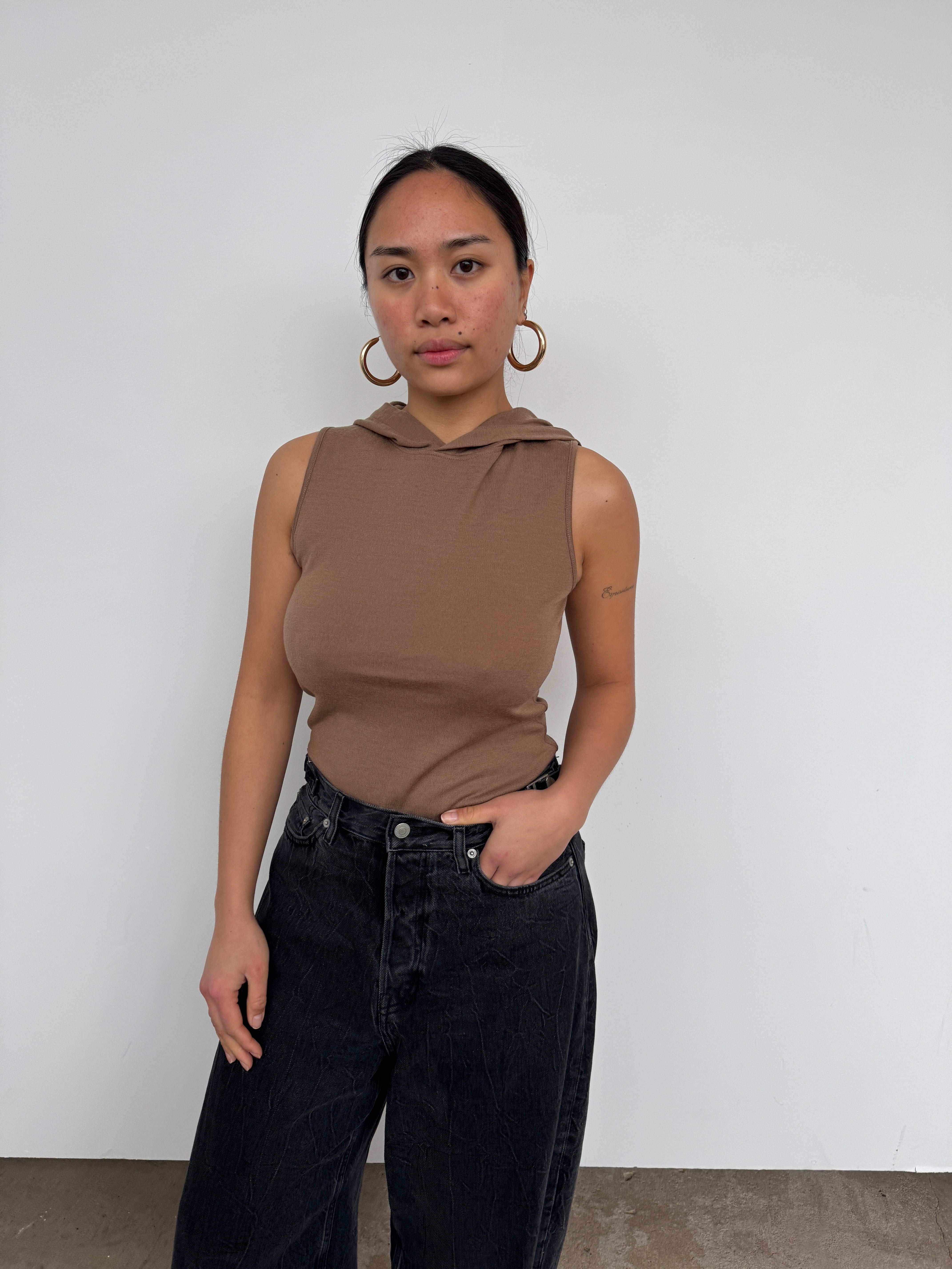 Tibi Brown Hooded Wool Top | S