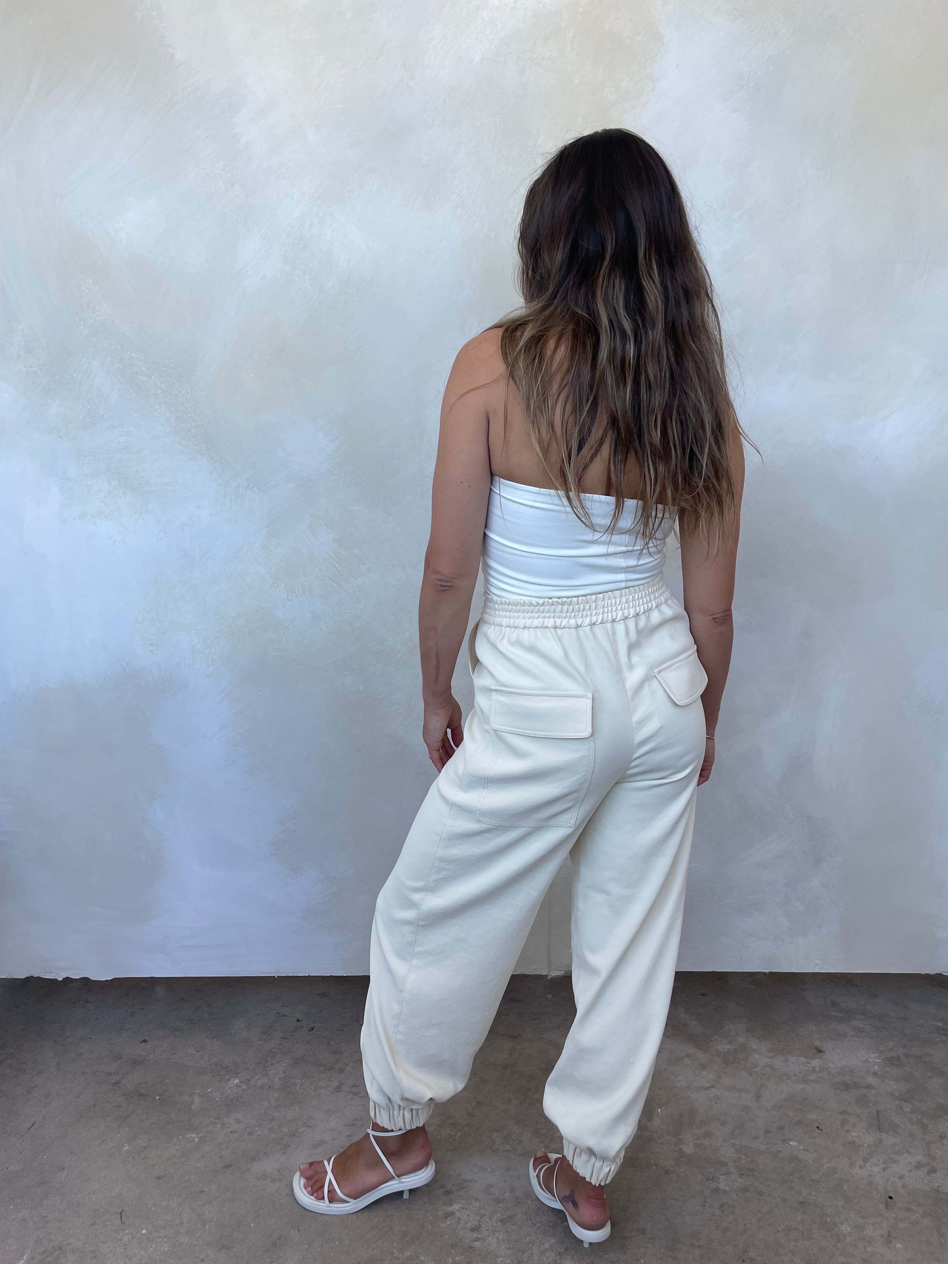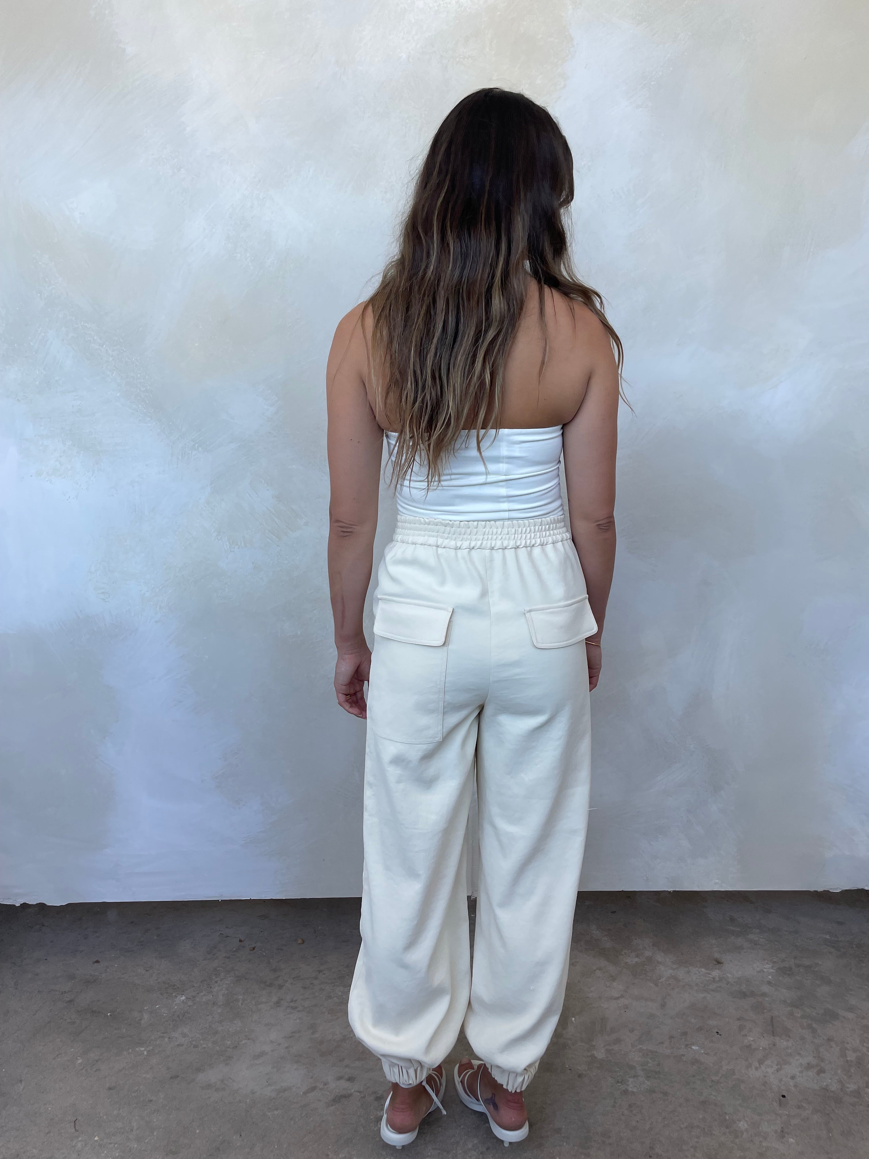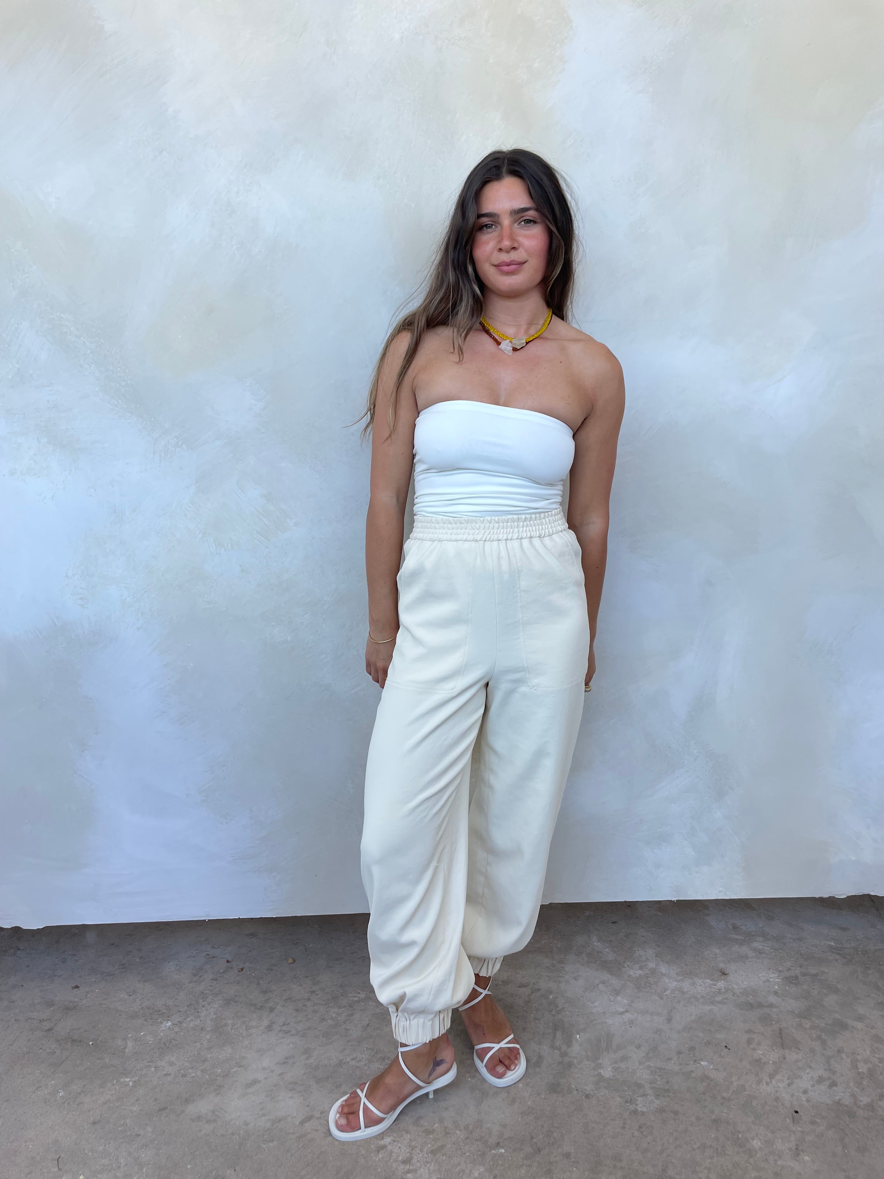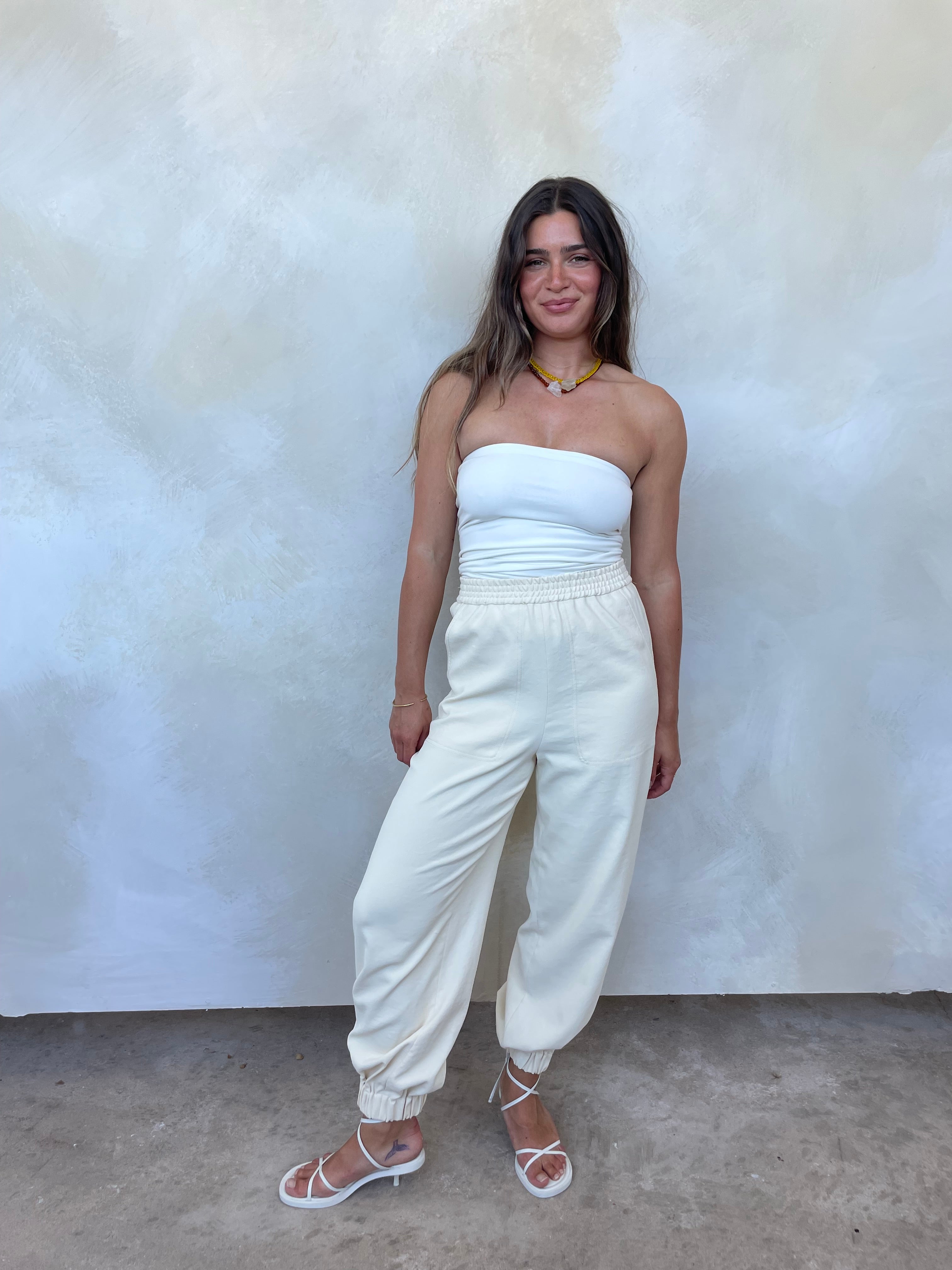 TIBI CREAM CHALKY DRAPE JOGGER | XS