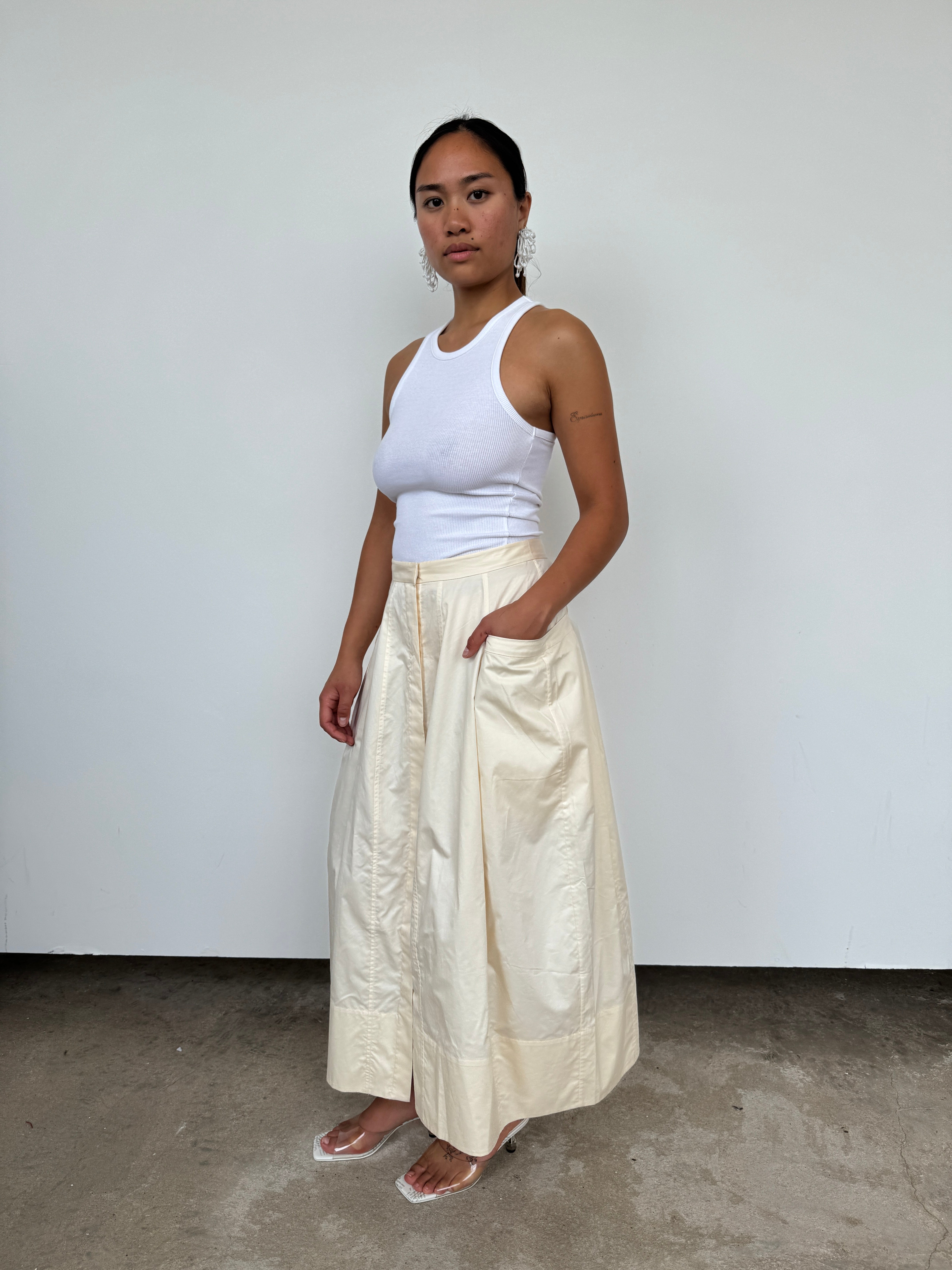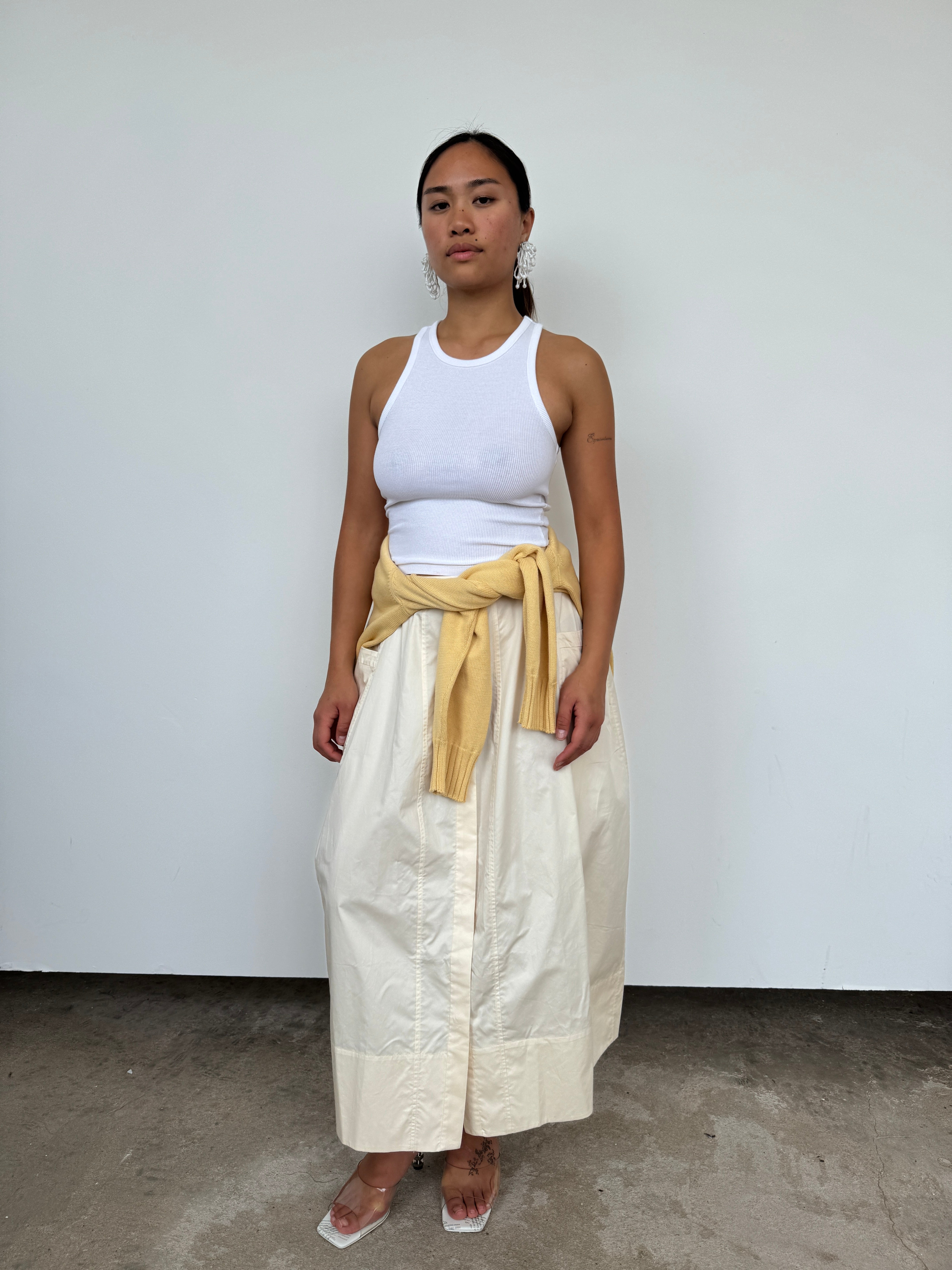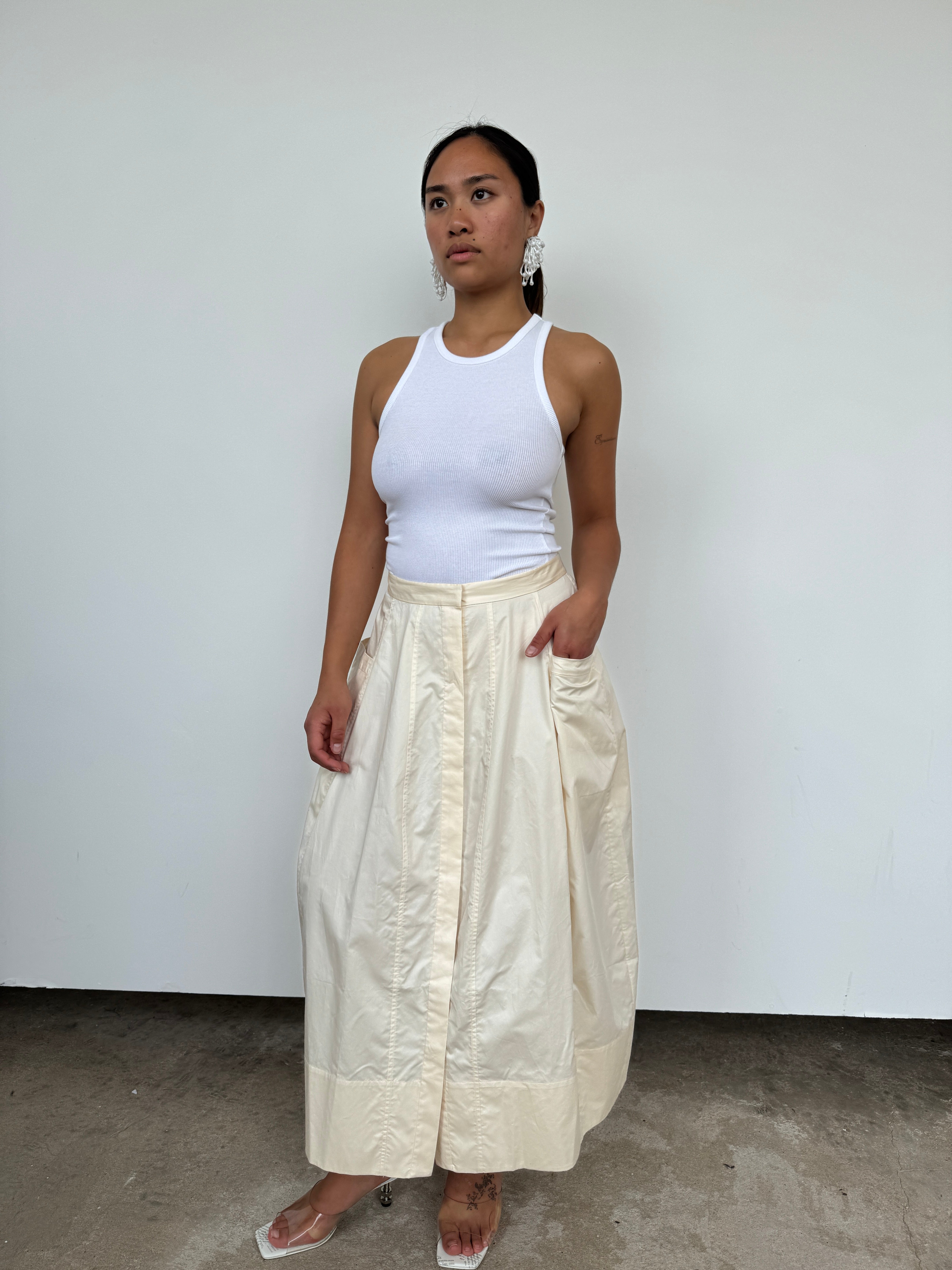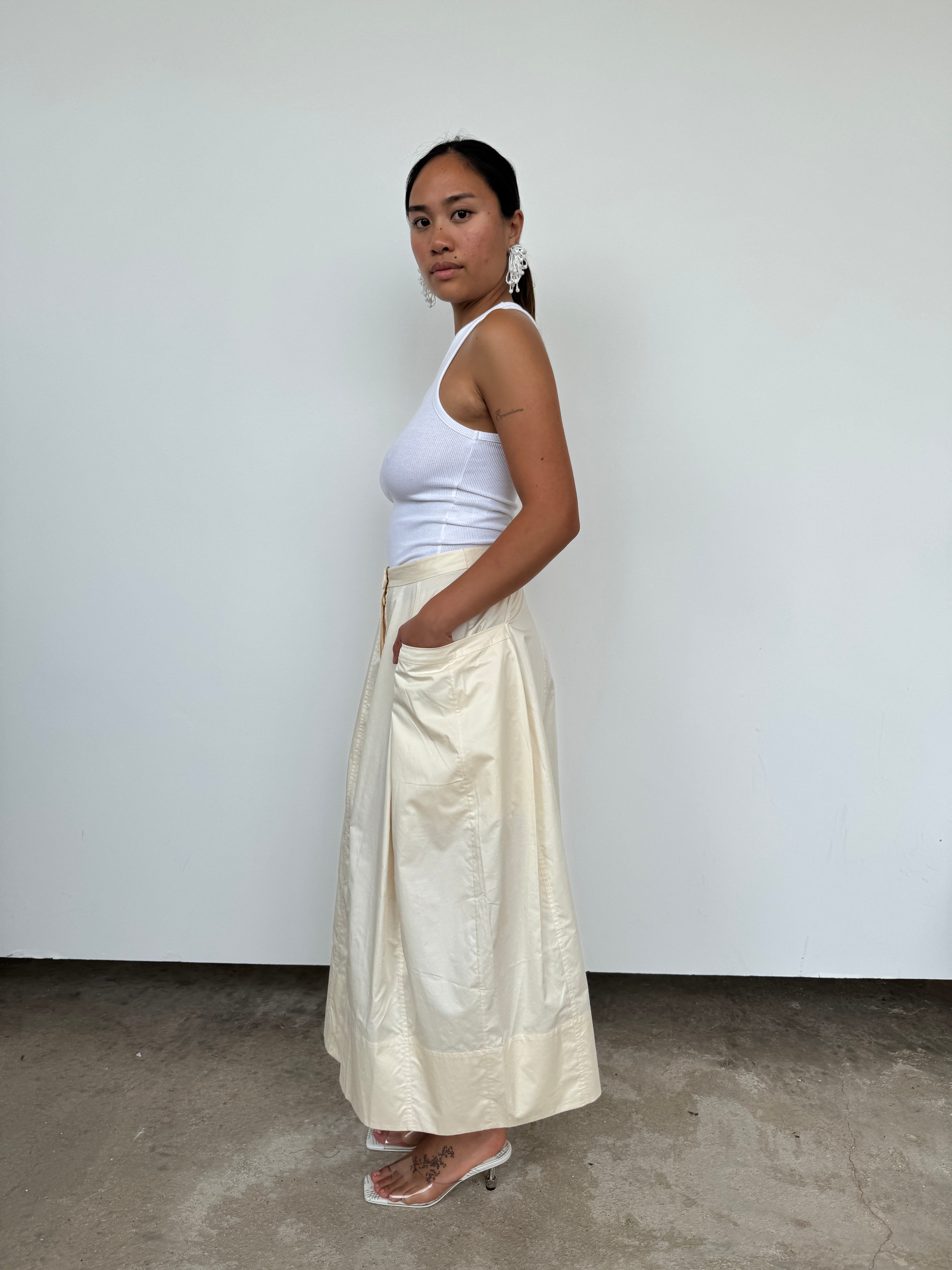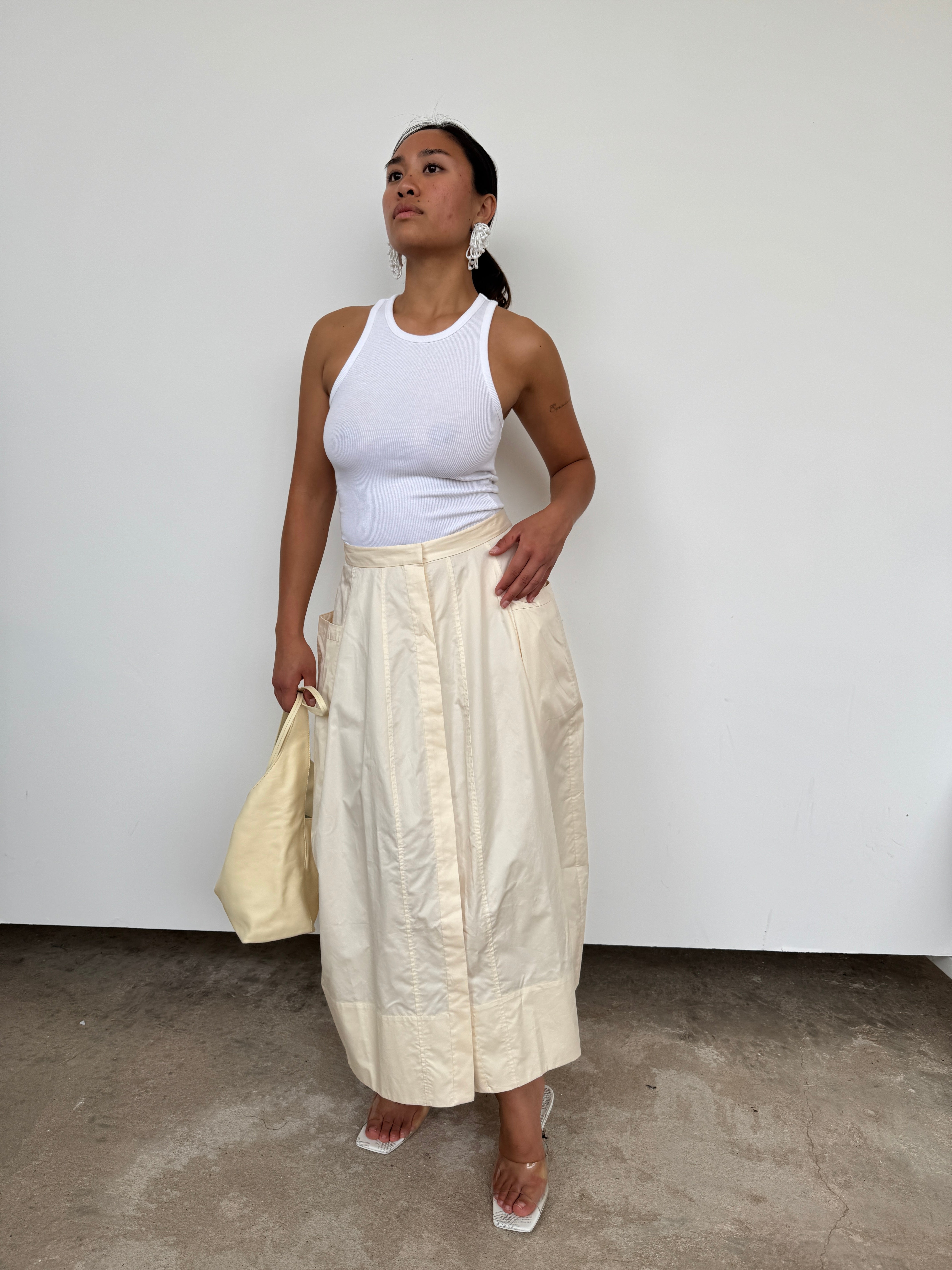 Tibi Cream Cotton Buttoned Skirt | UK8