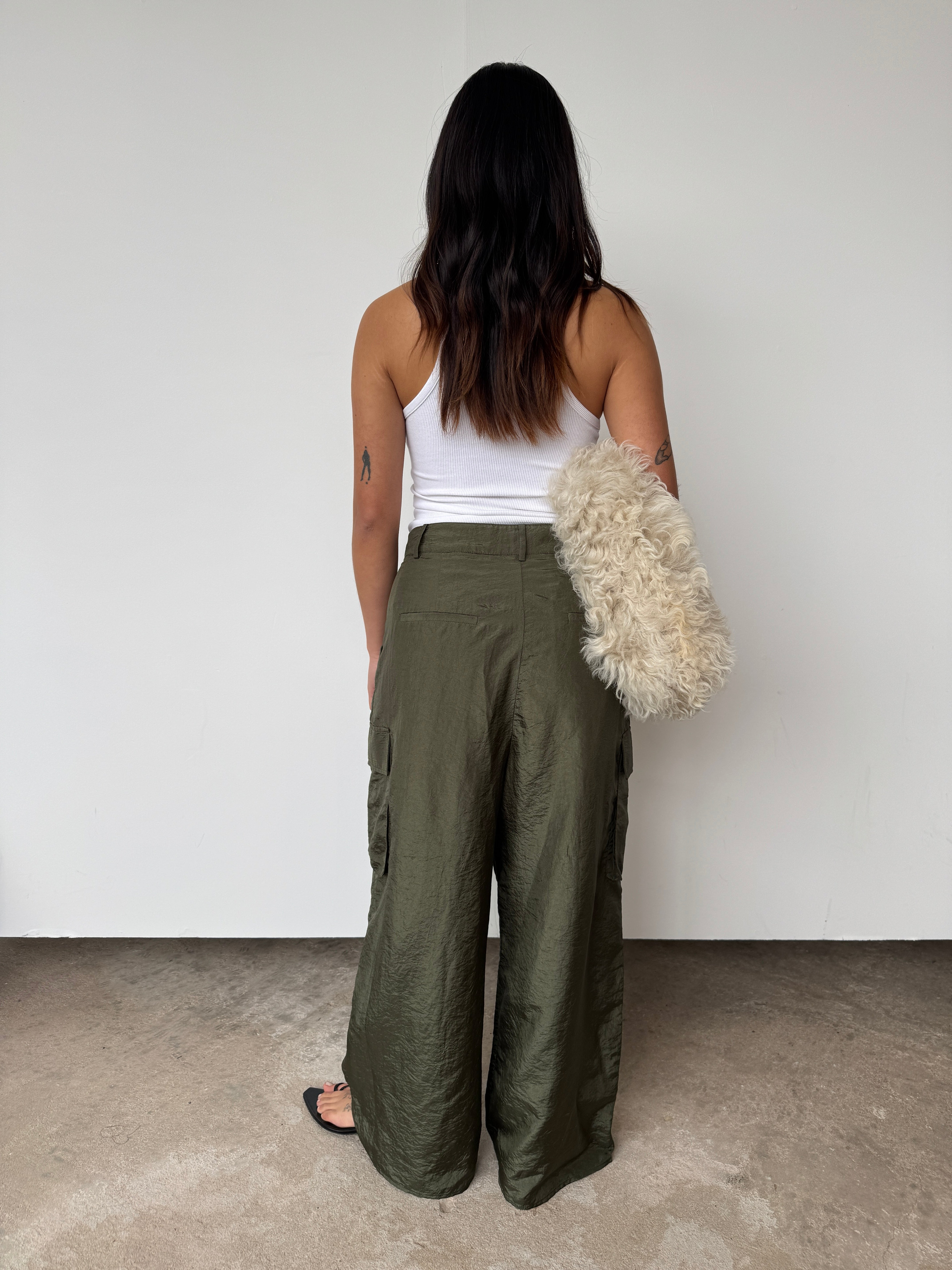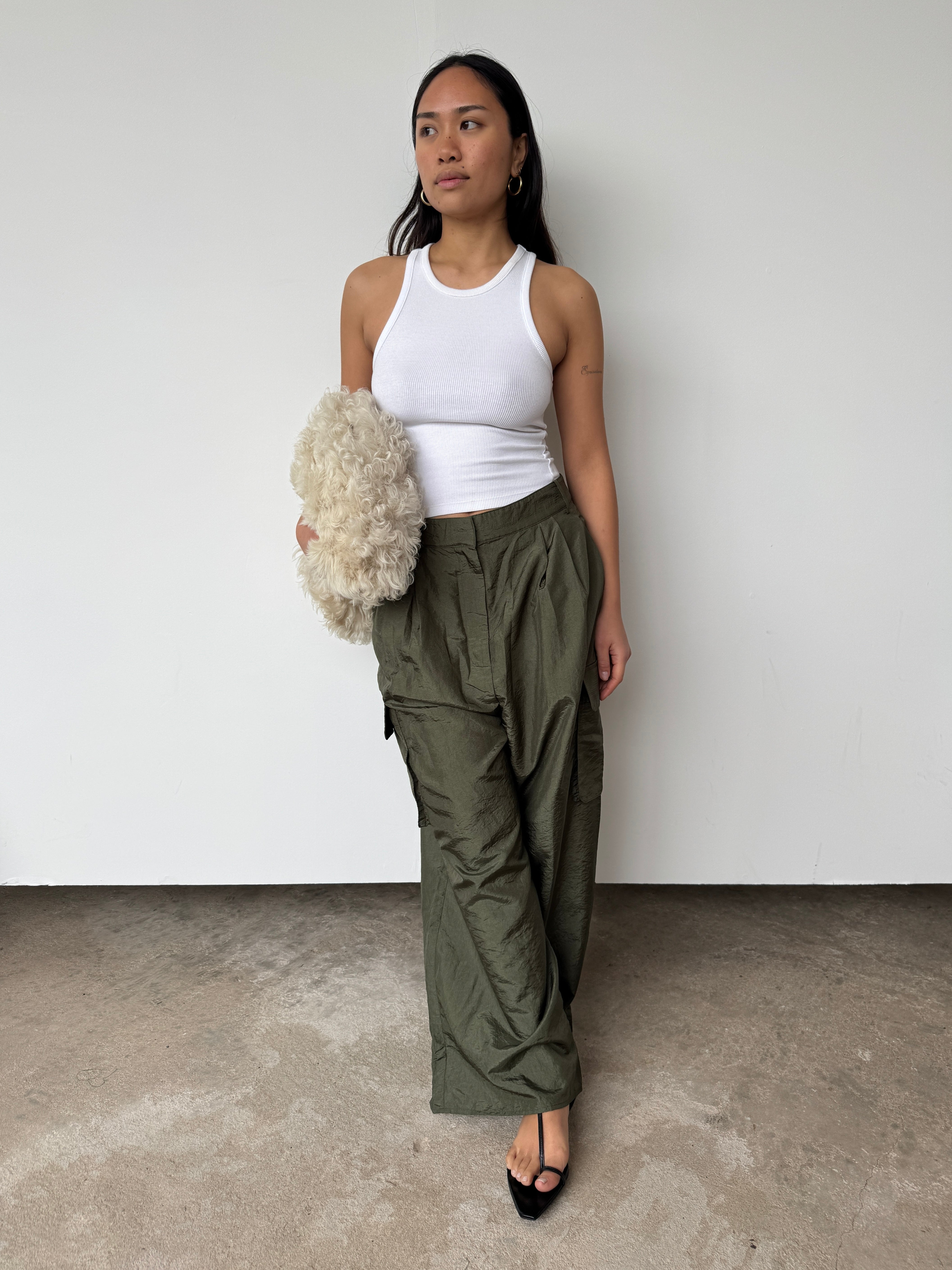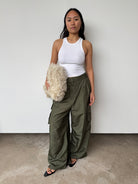 "A similar shape to the classic Stella pant, this nylon version has a relaxed cargo pocket, but maintains the same level of elevated functionality. Made in a nylon blend, these pants possess the relaxed elegance needed to transition from the grocery store, to the office, to evening with the right shoes."