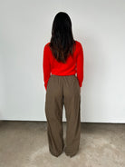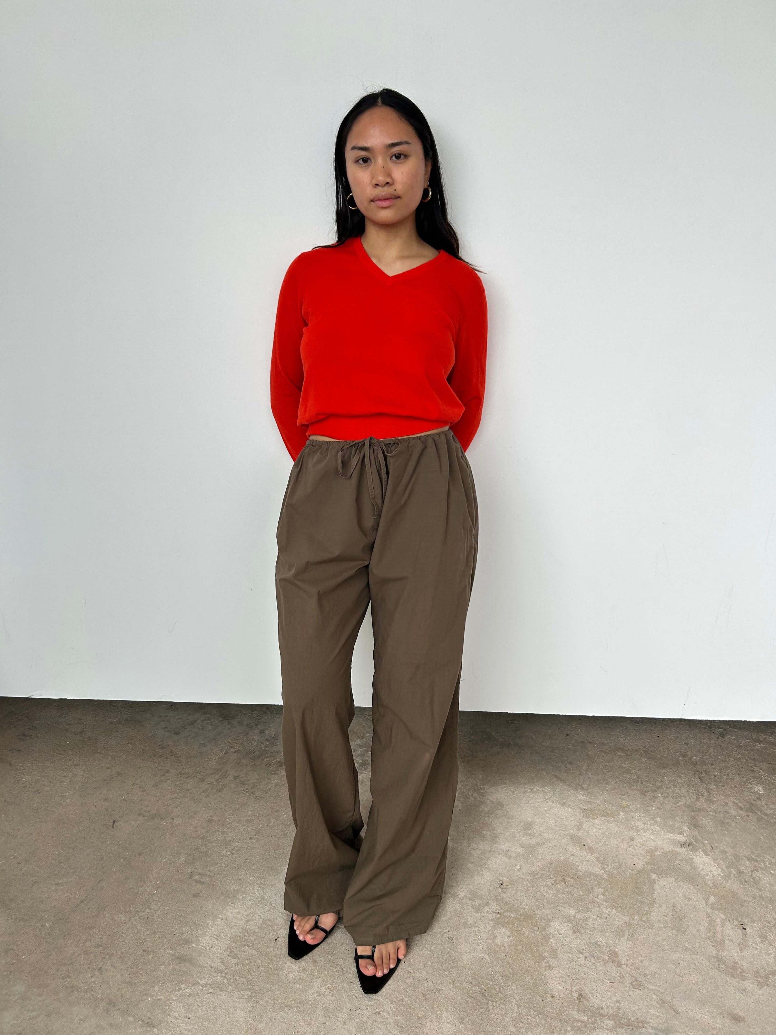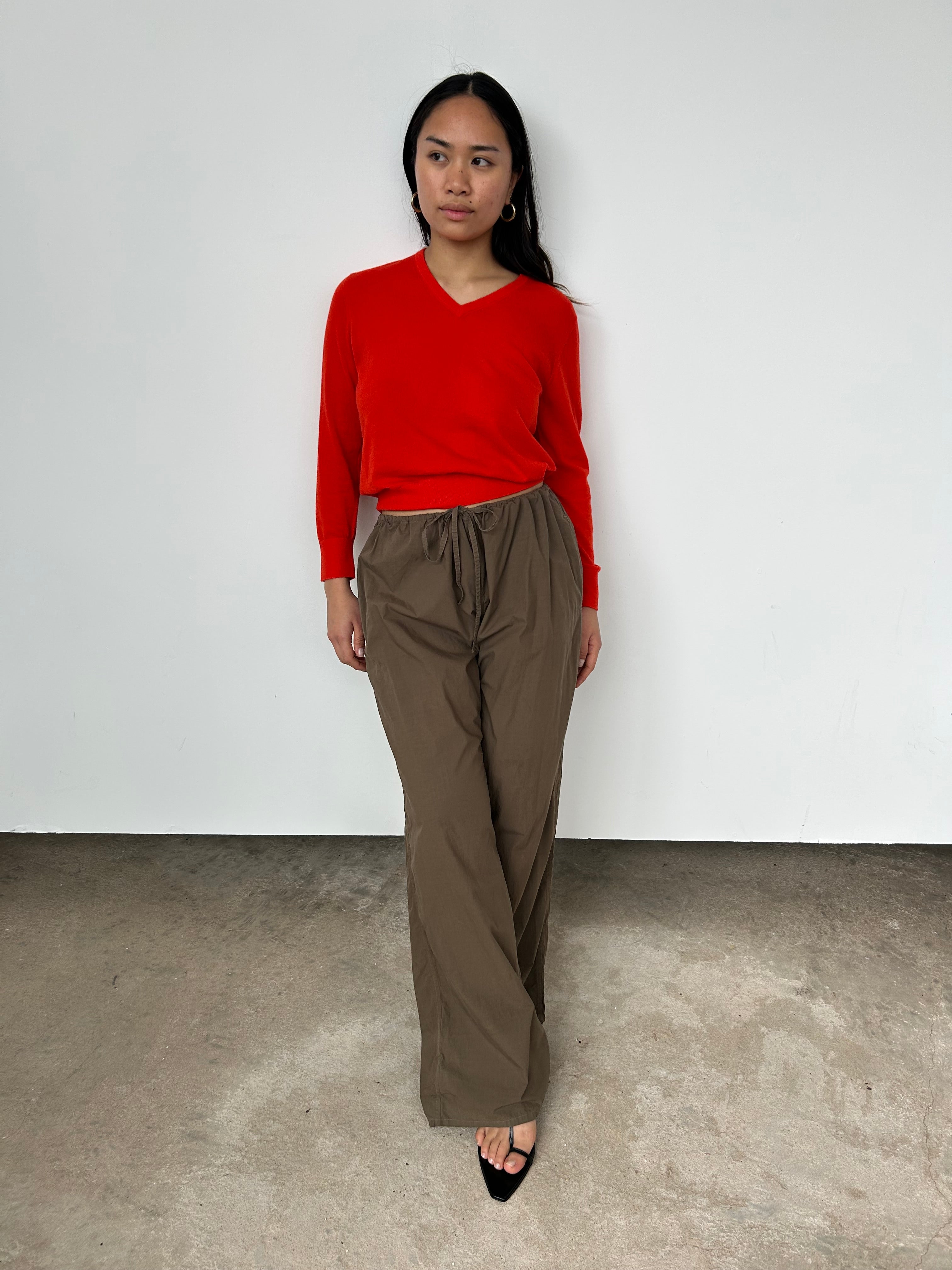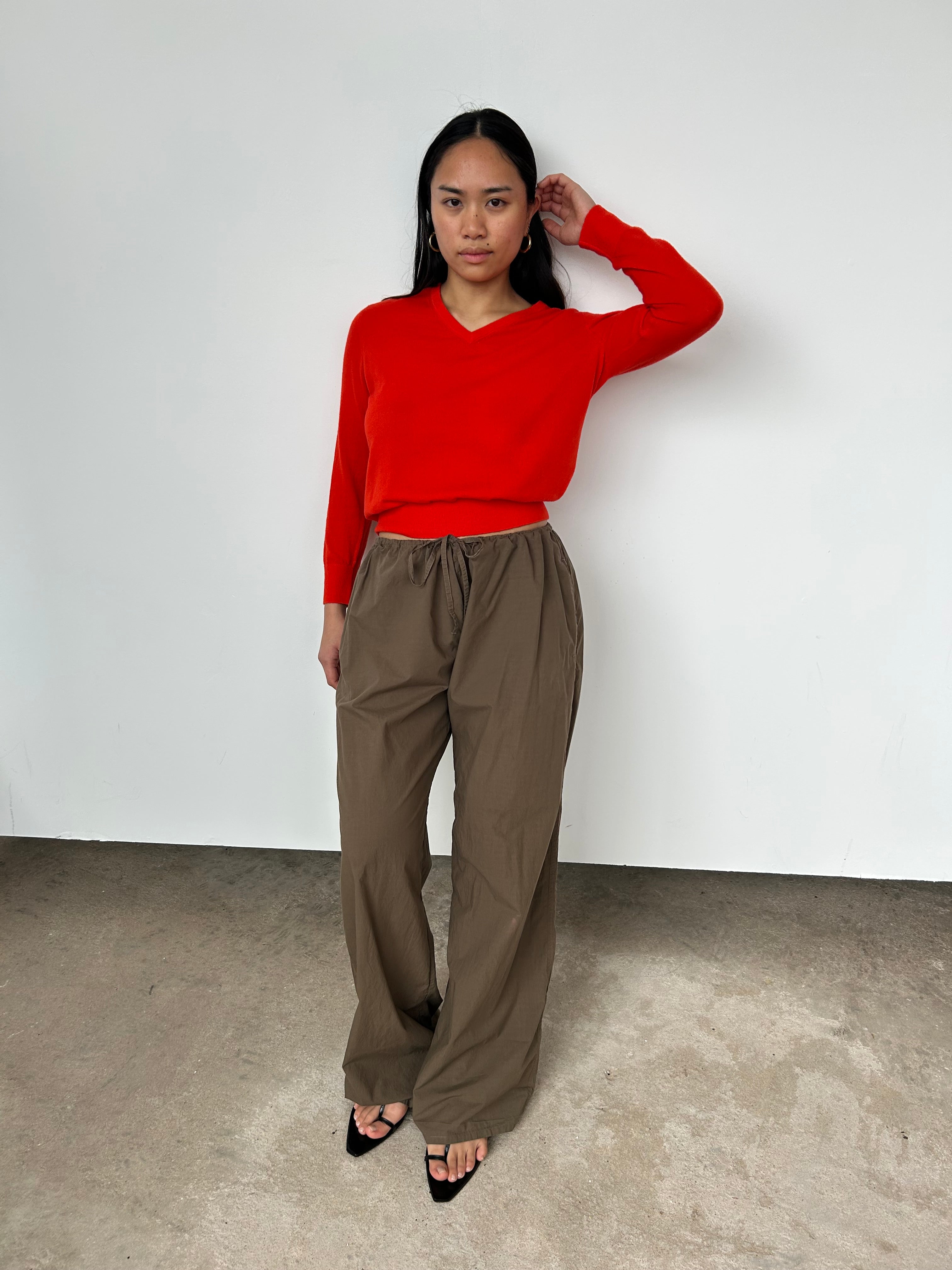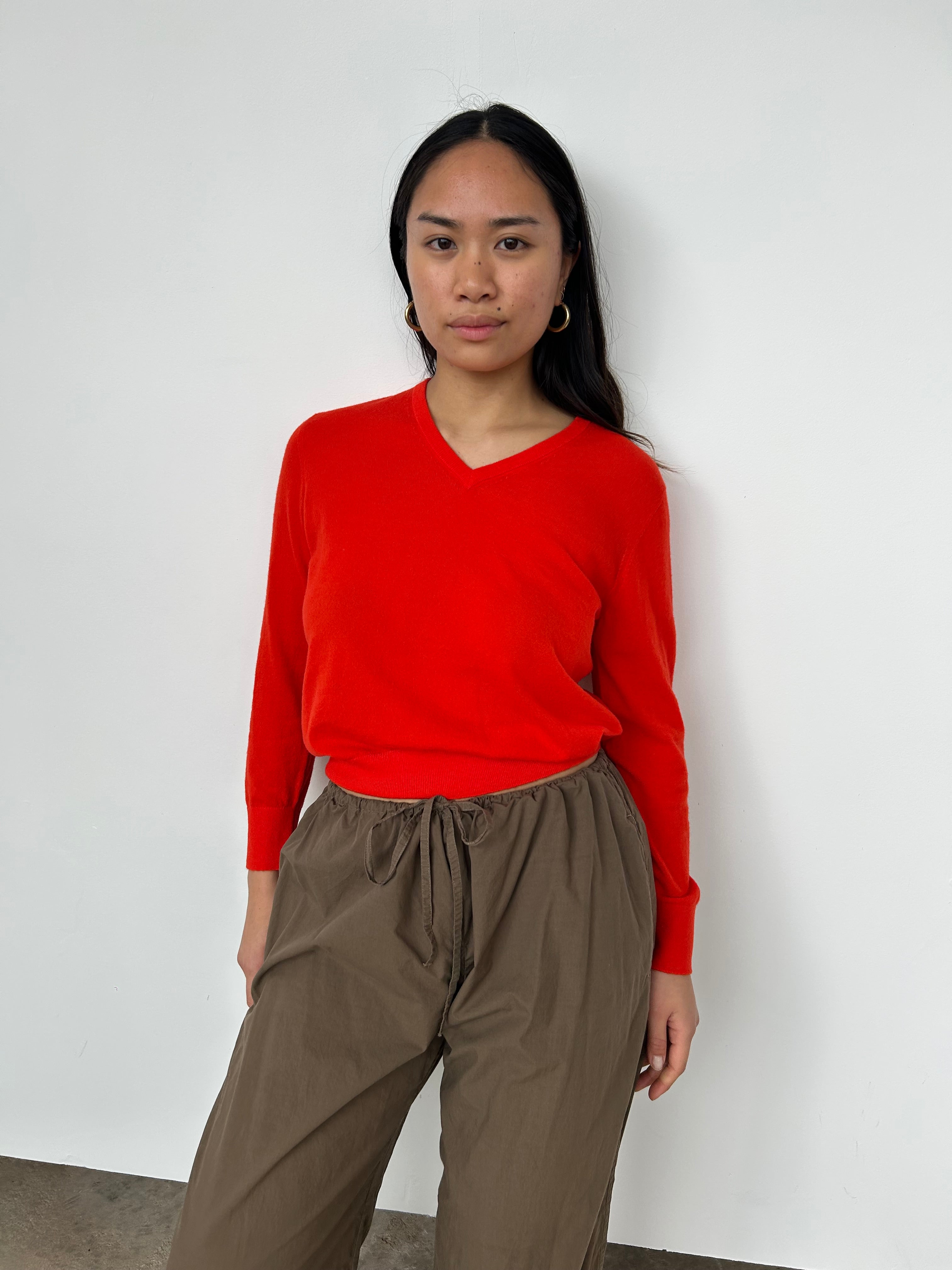 Tibi Red Mercerized Wool Shrunken V-Neck Sweater | S