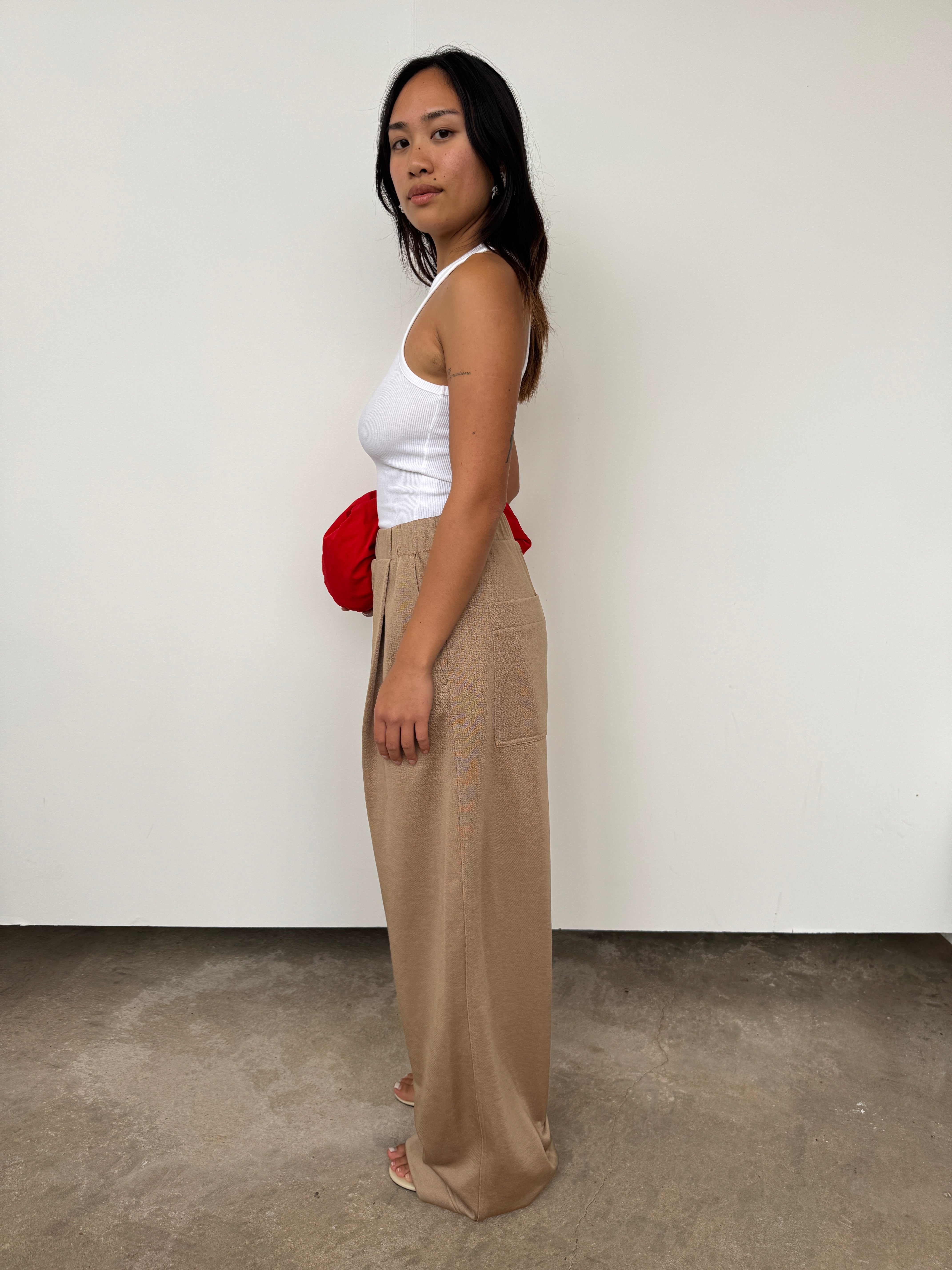 These Silk Terry Pleated Pull on Pant is soon to be a year-round wardrobe staple. Crafted from a Japanese drapey terry with a special silky finish, solidifying its CMC status.