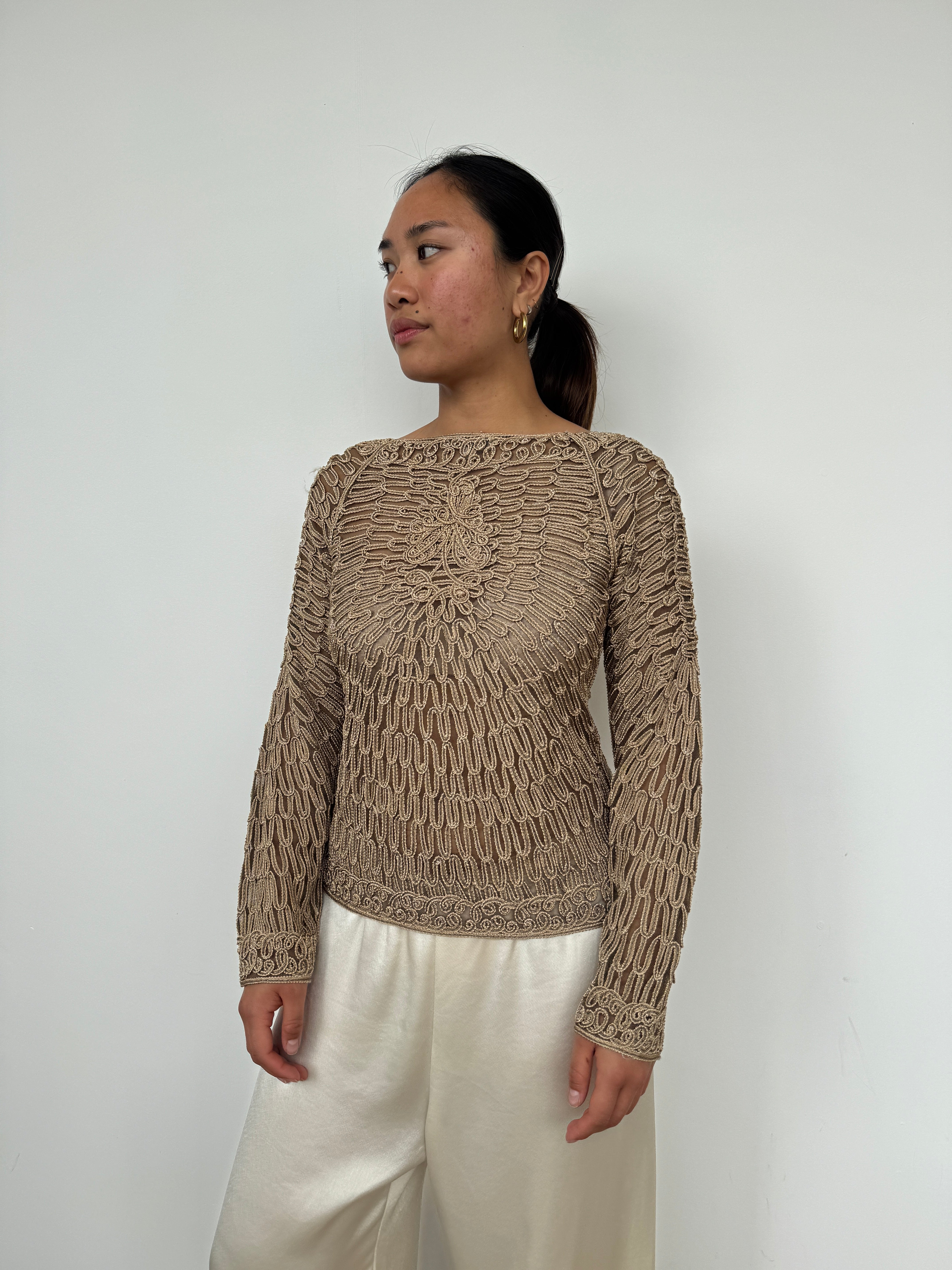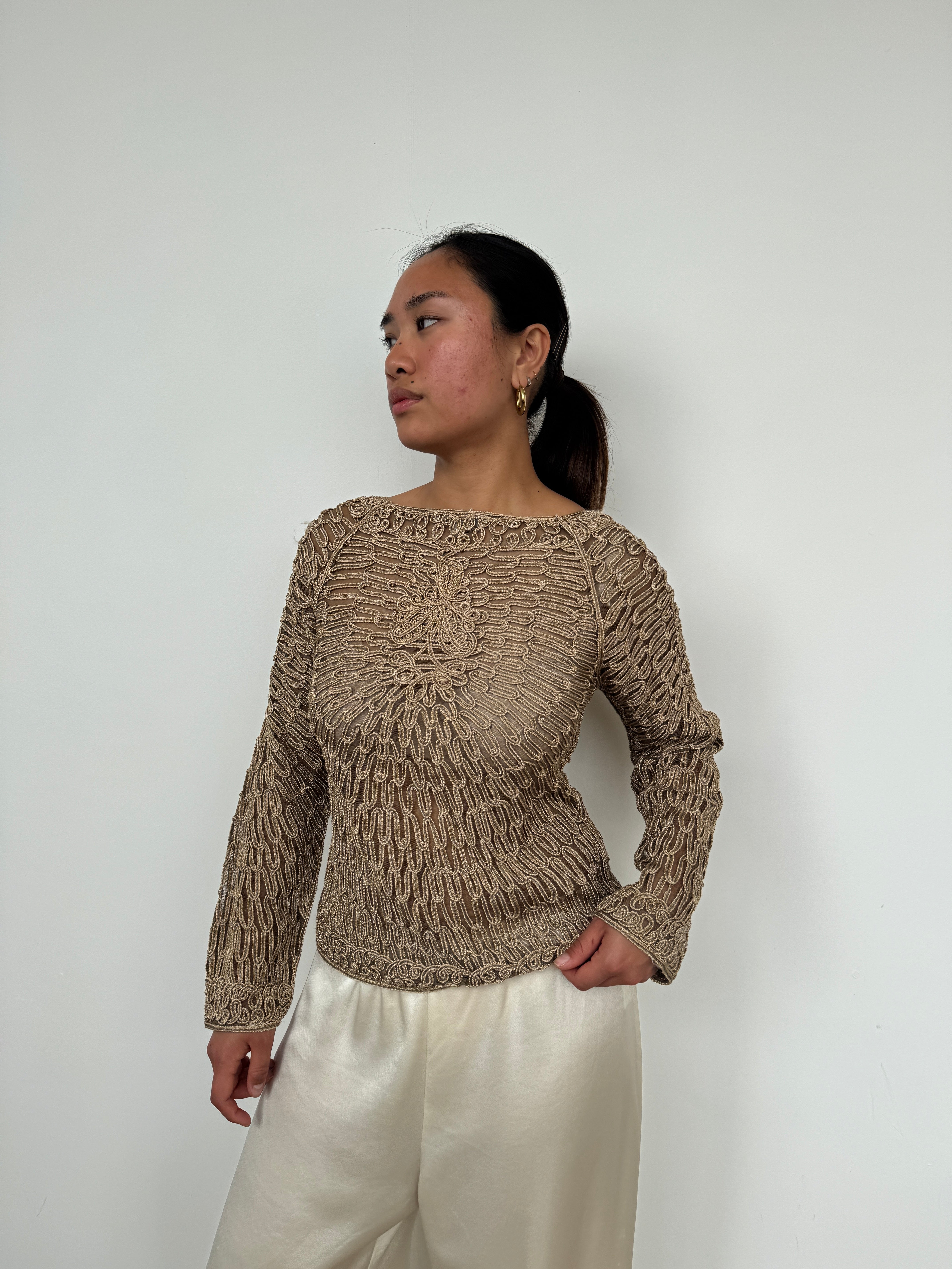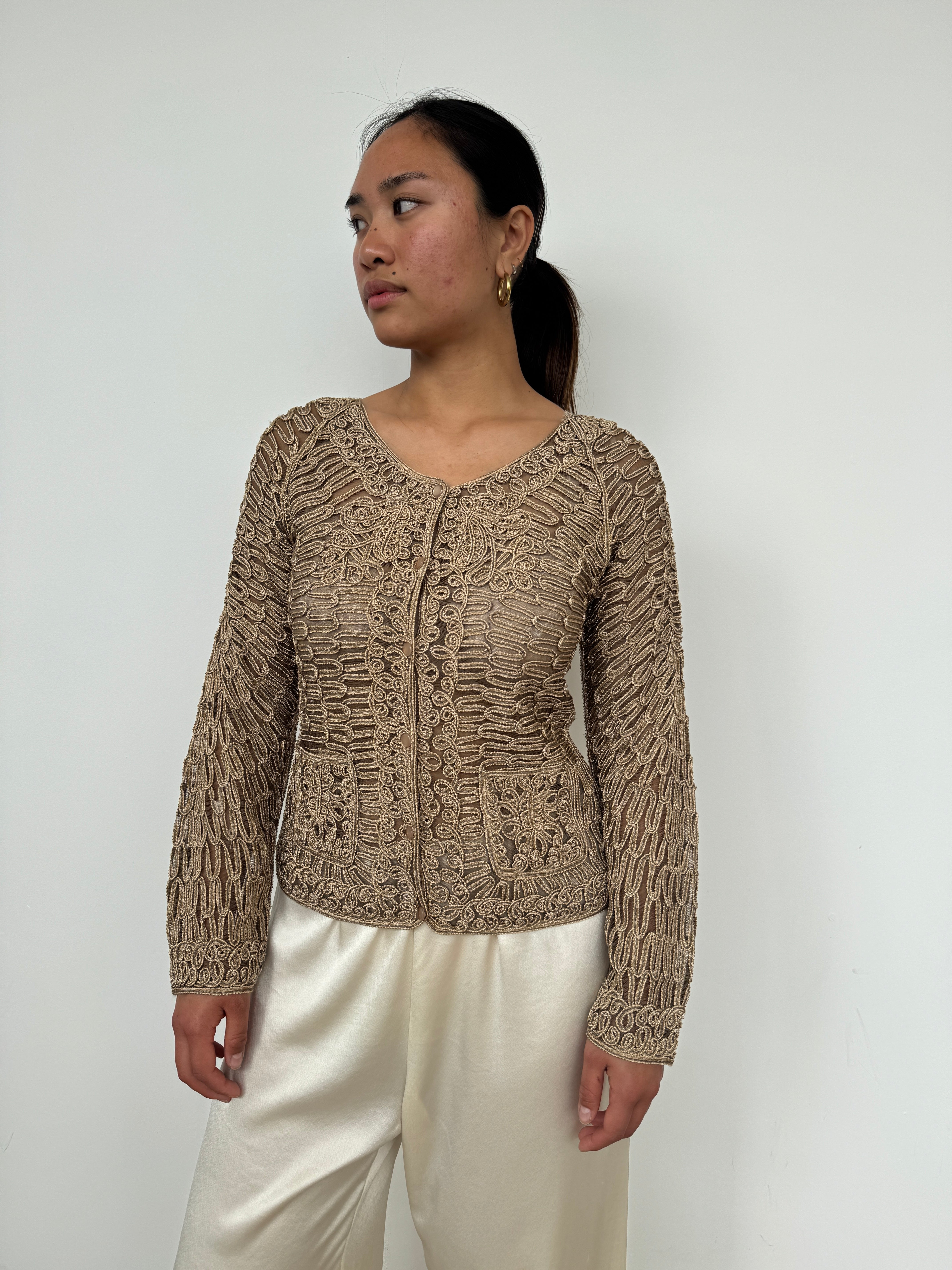 Vintage Gold Lace Buttoned Top | UK8-10