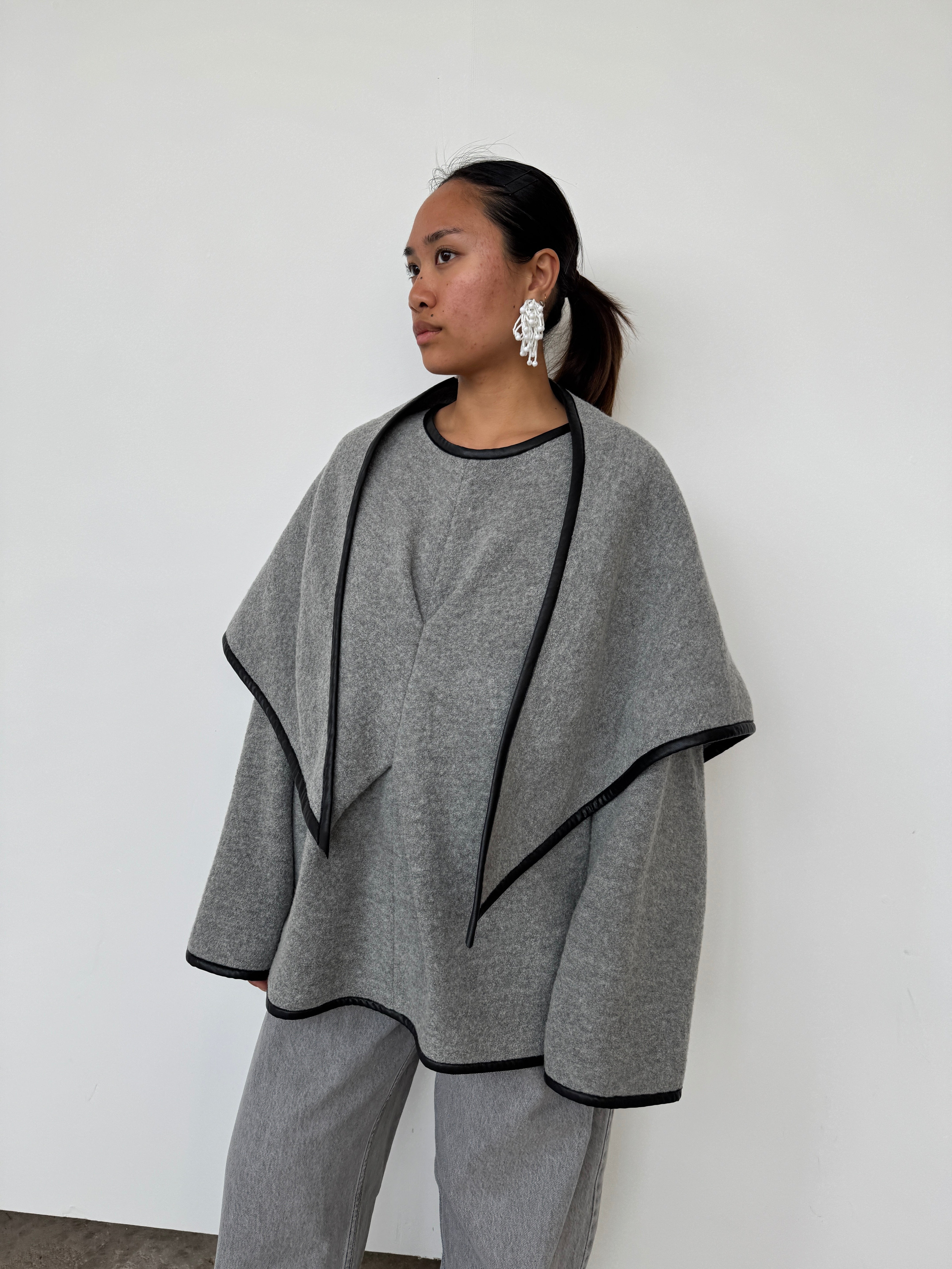 MATERIAL: 52% Wool | 48% Viscose | Lining: 100% Viscose | Trim: Lambskin - dry clean only