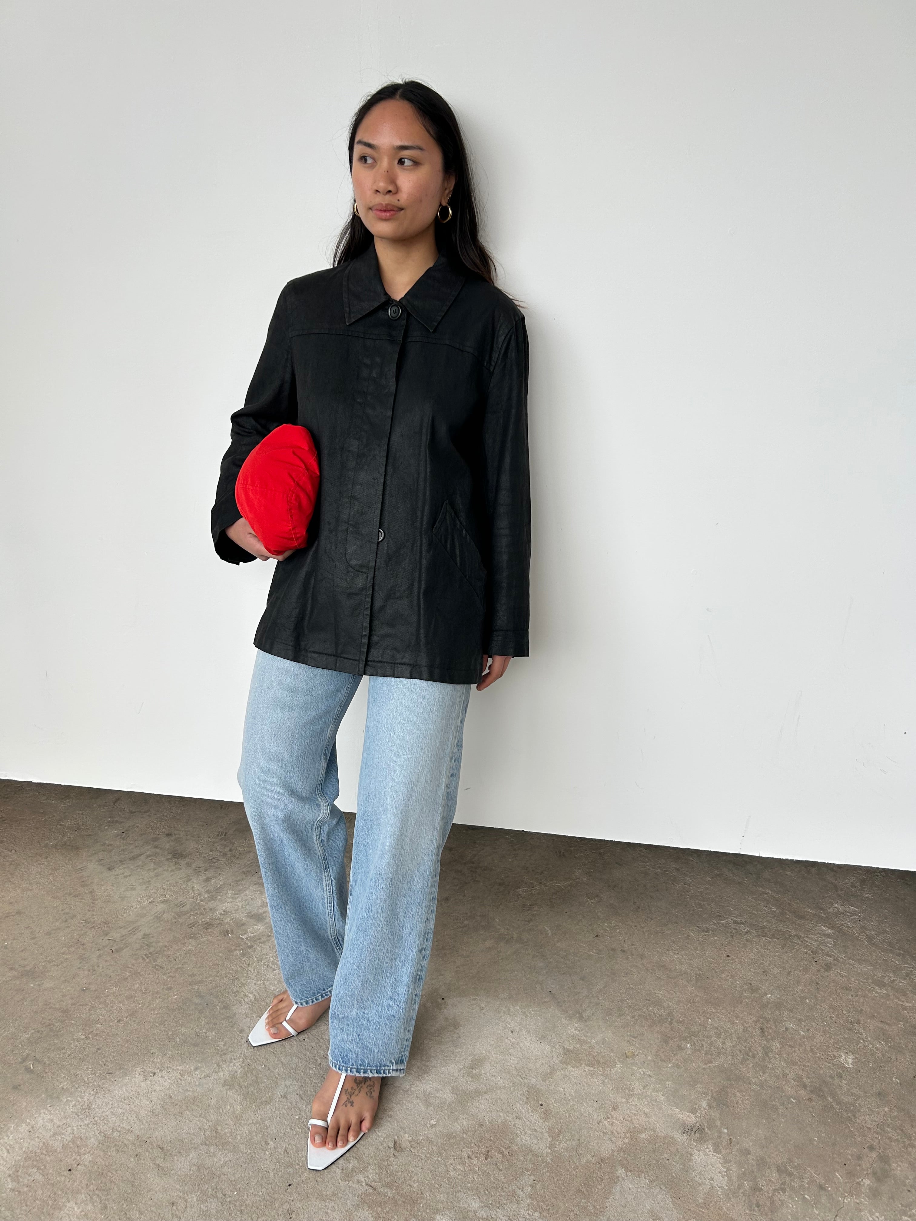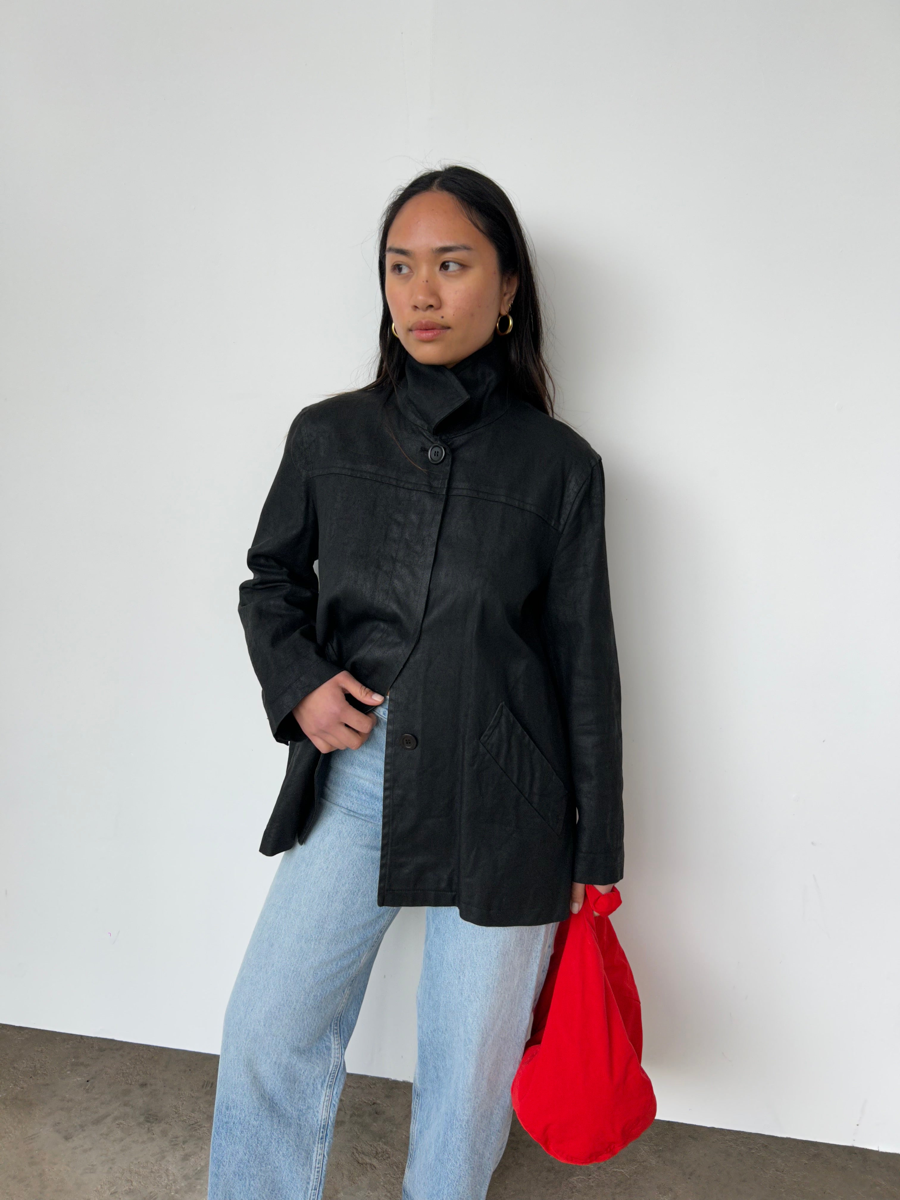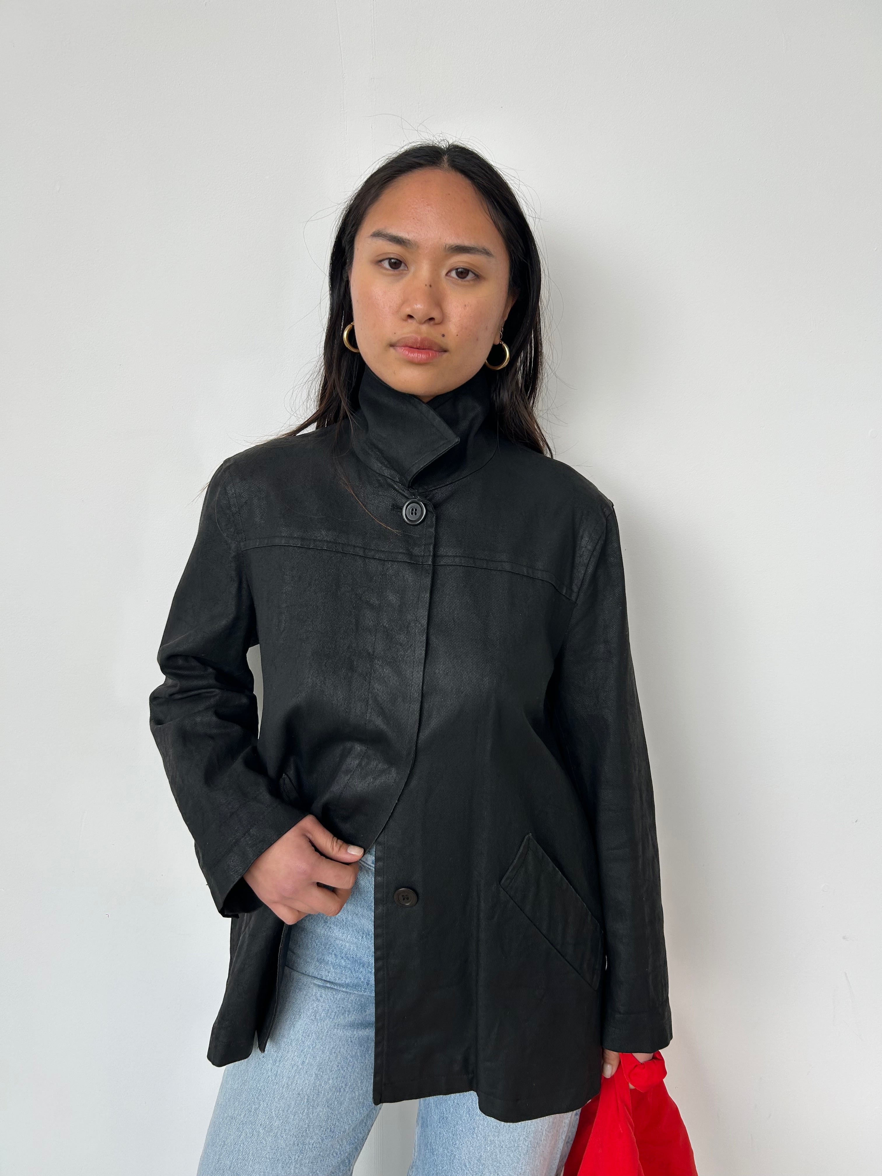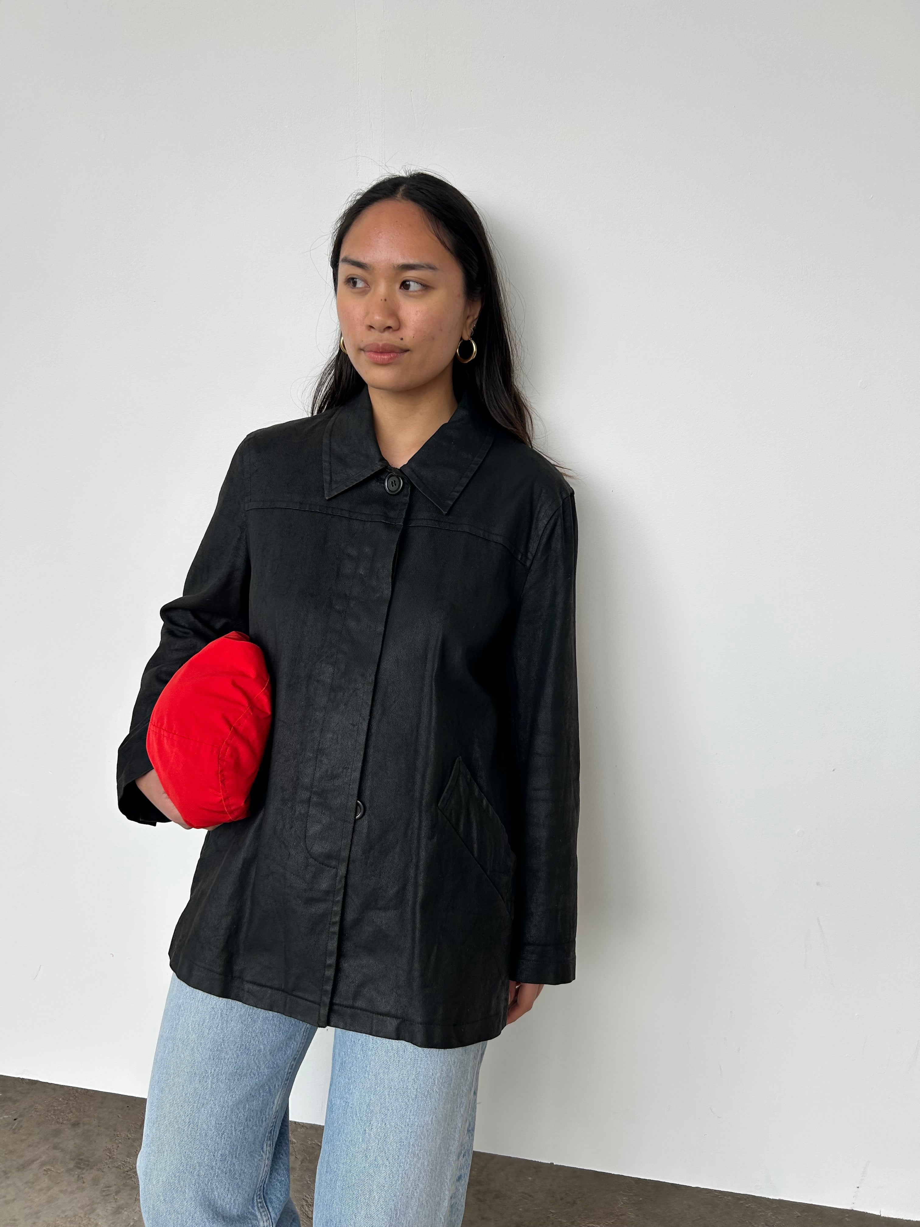 Vintage Sportmax Black Coated Cotton Jacket | UK8