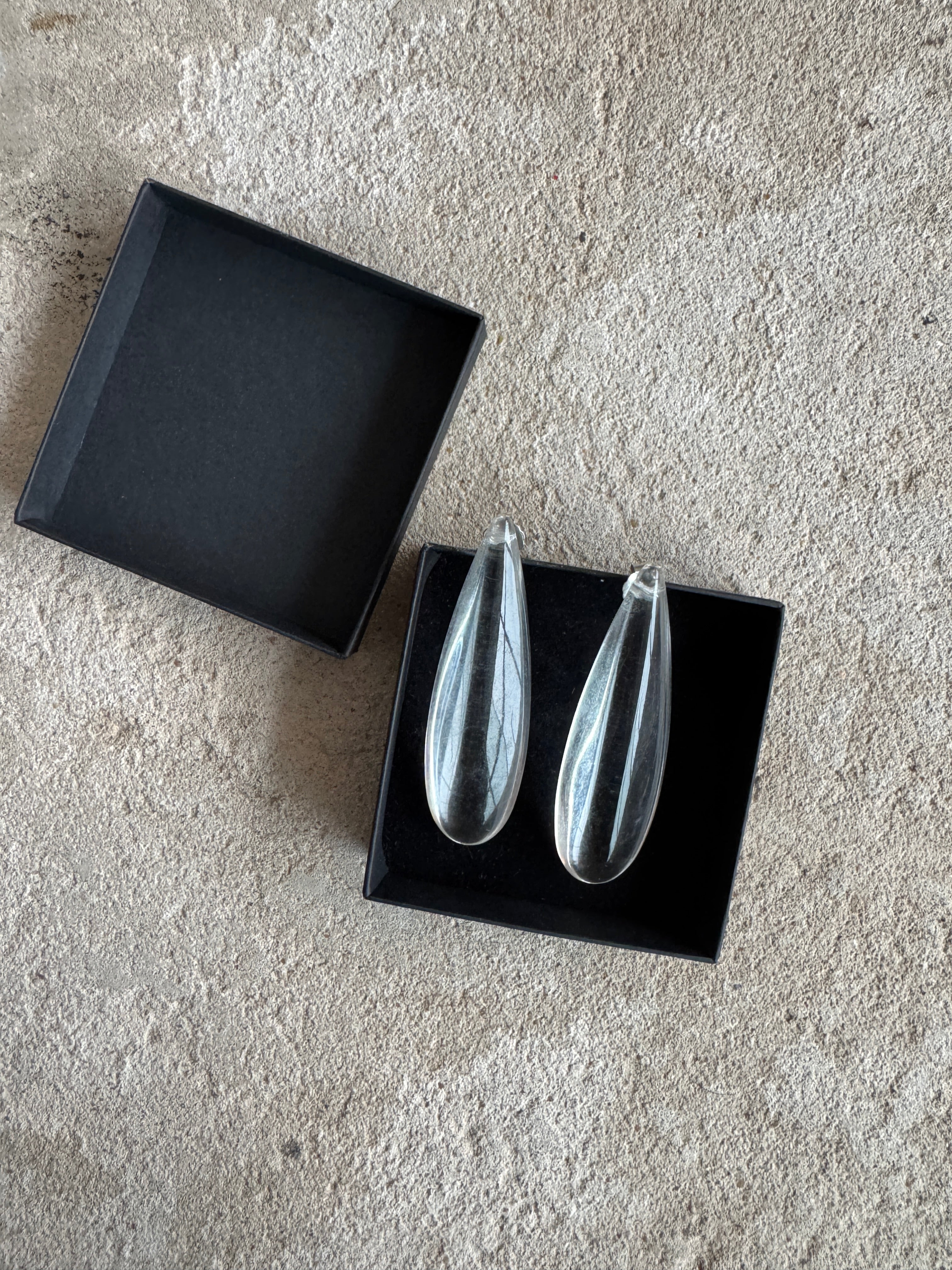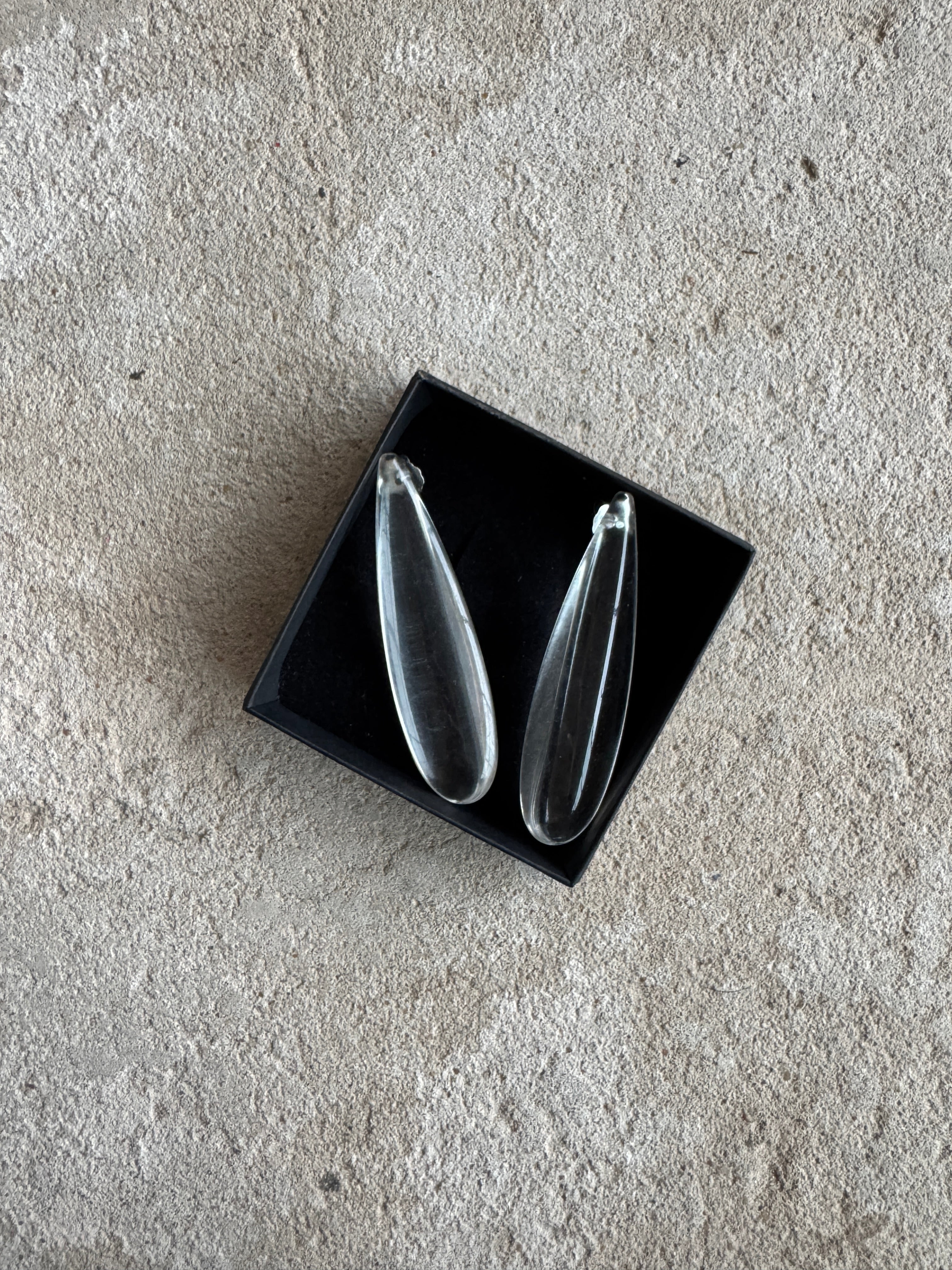 Beautiful, clear resin earrings finished with butterfly backings. These come in their original box.