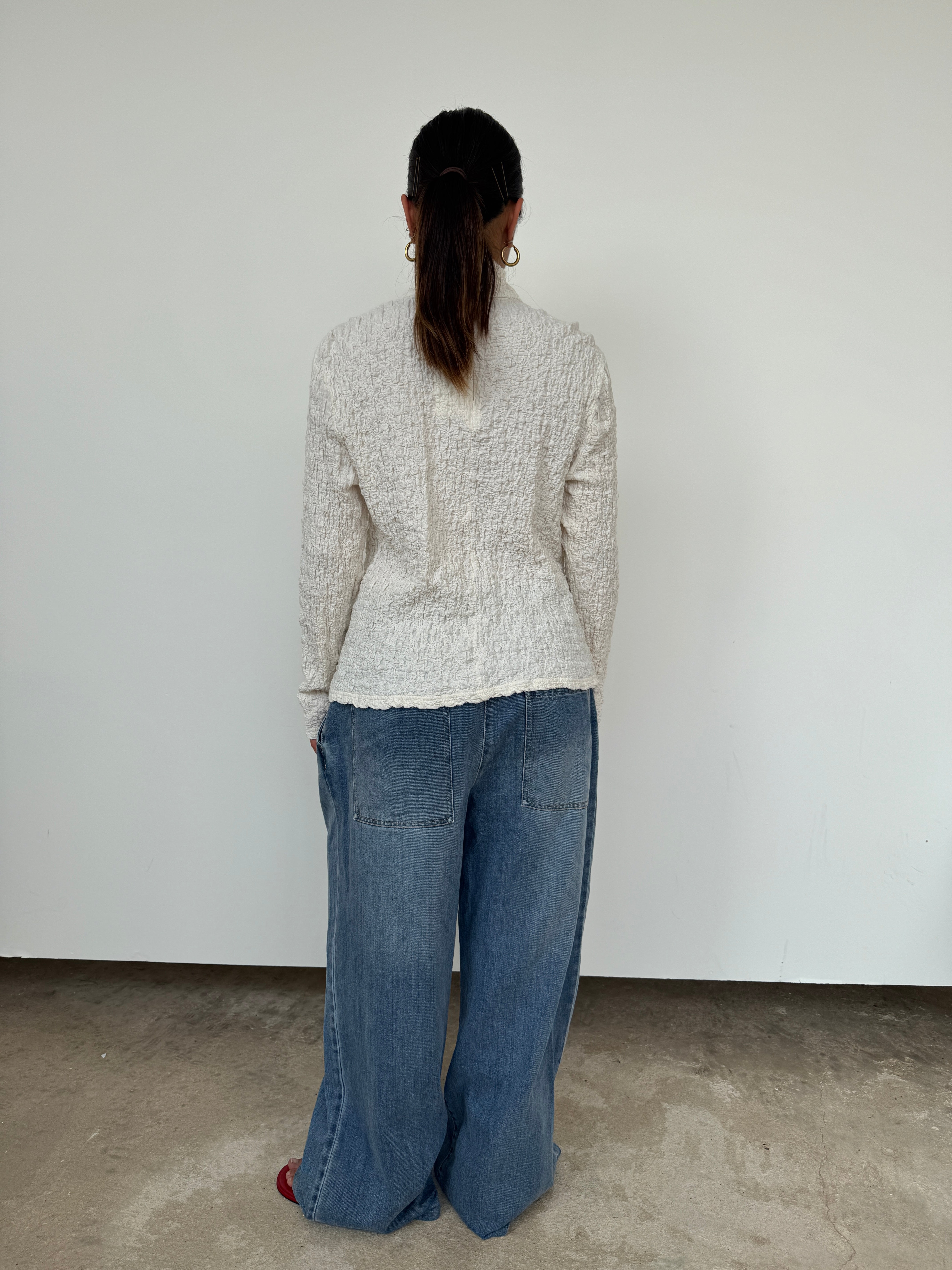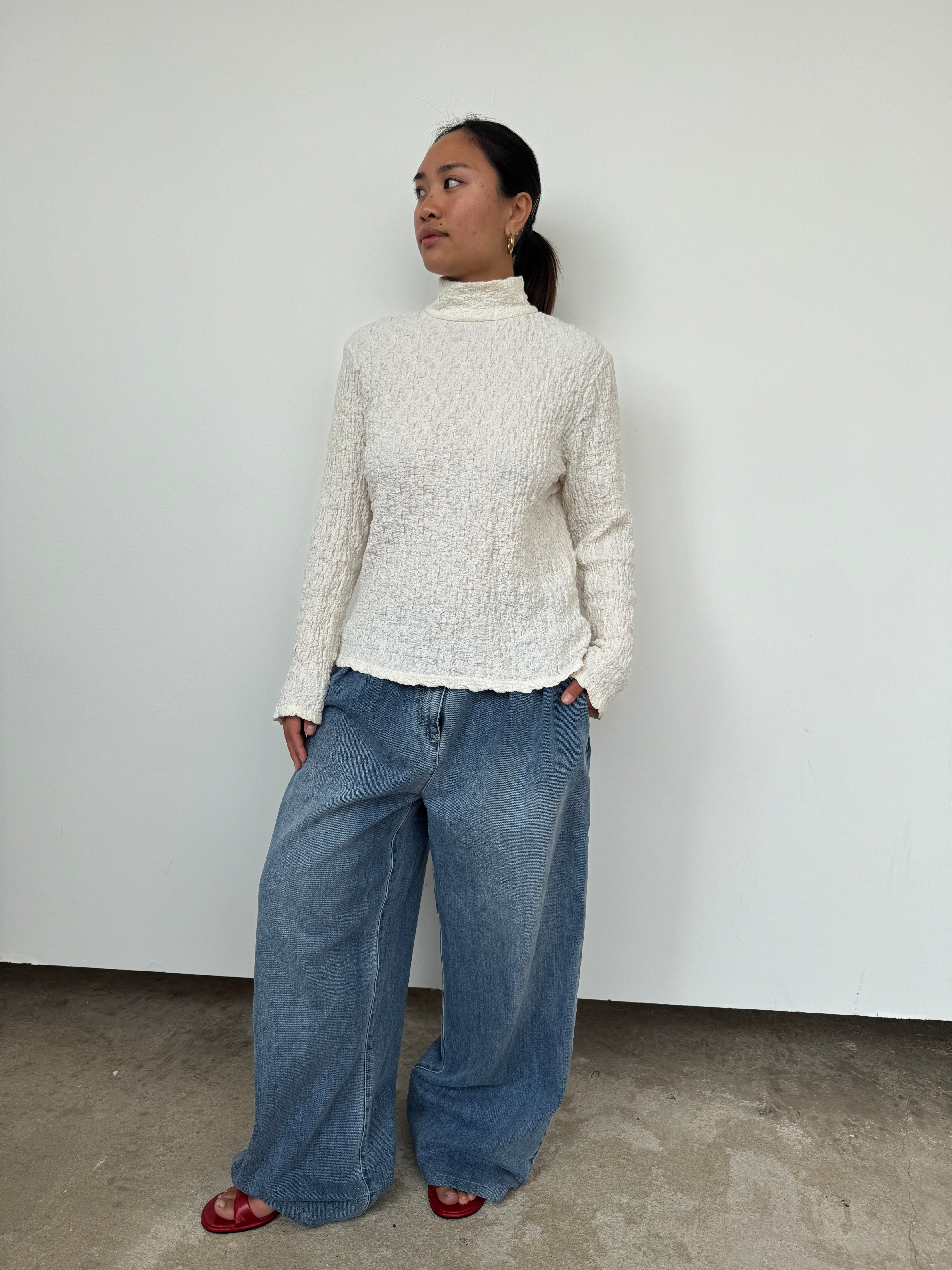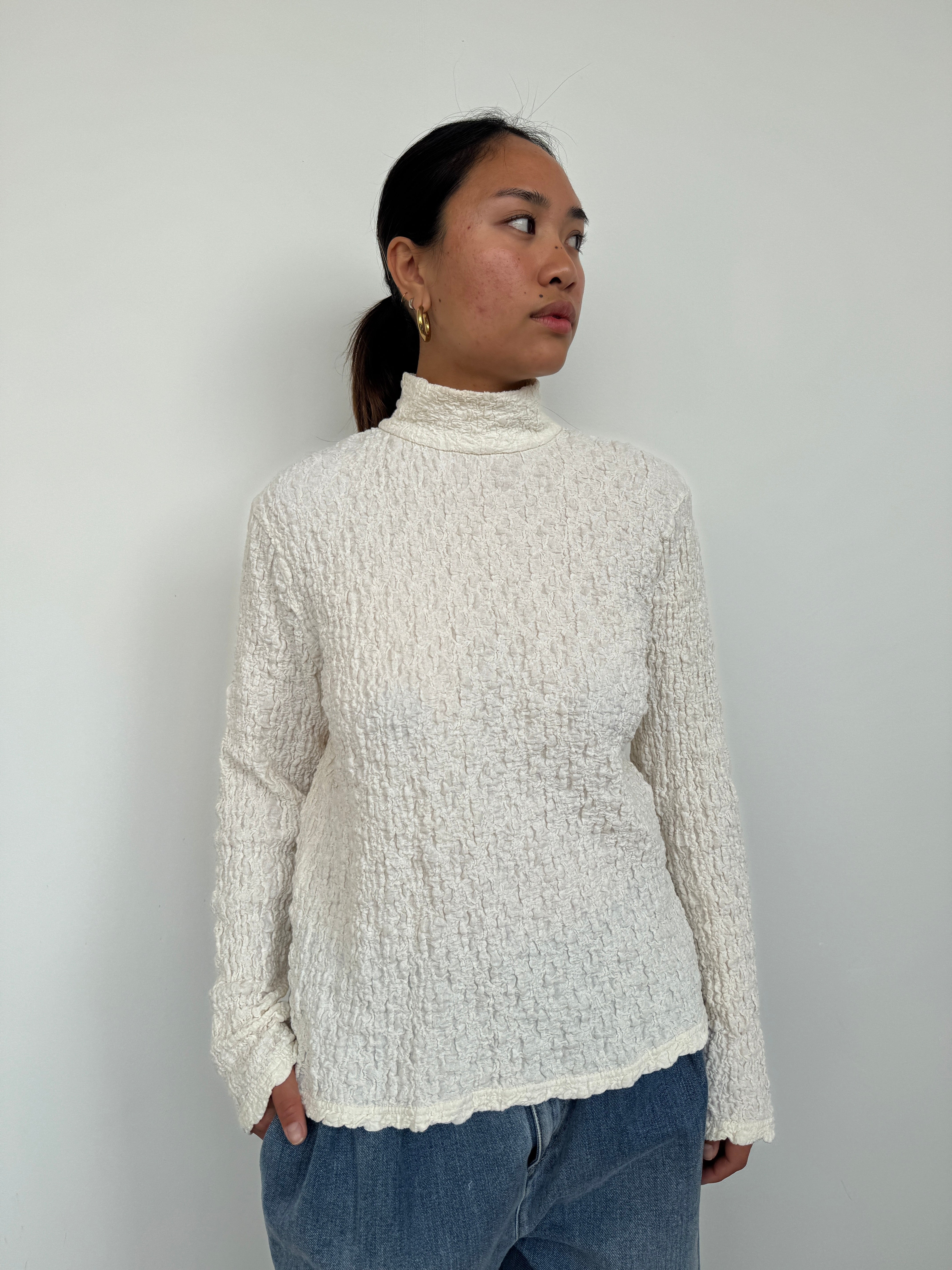This piece has a beautiful crinkled effect throughout. Features a concealed zip to the reverse