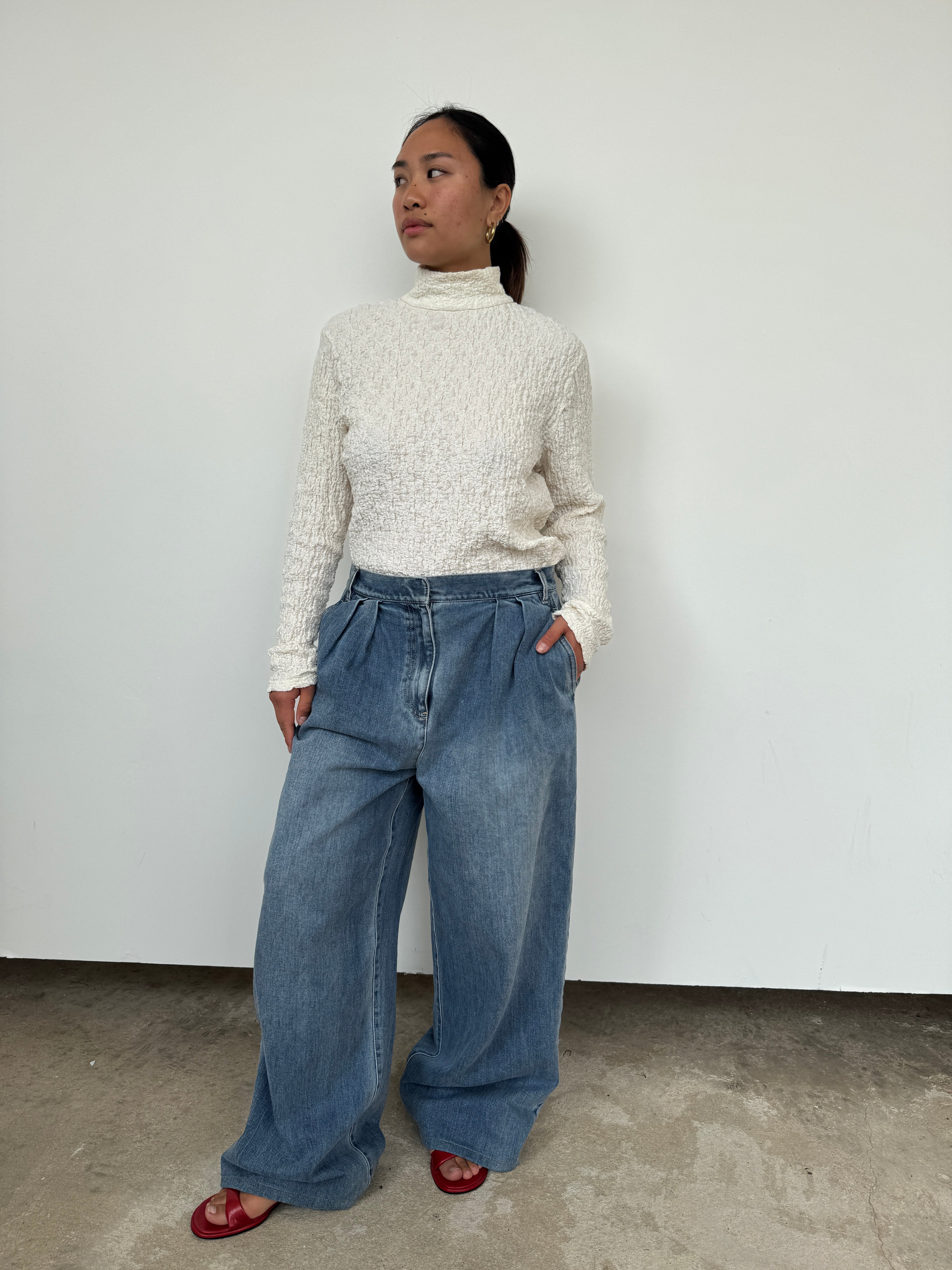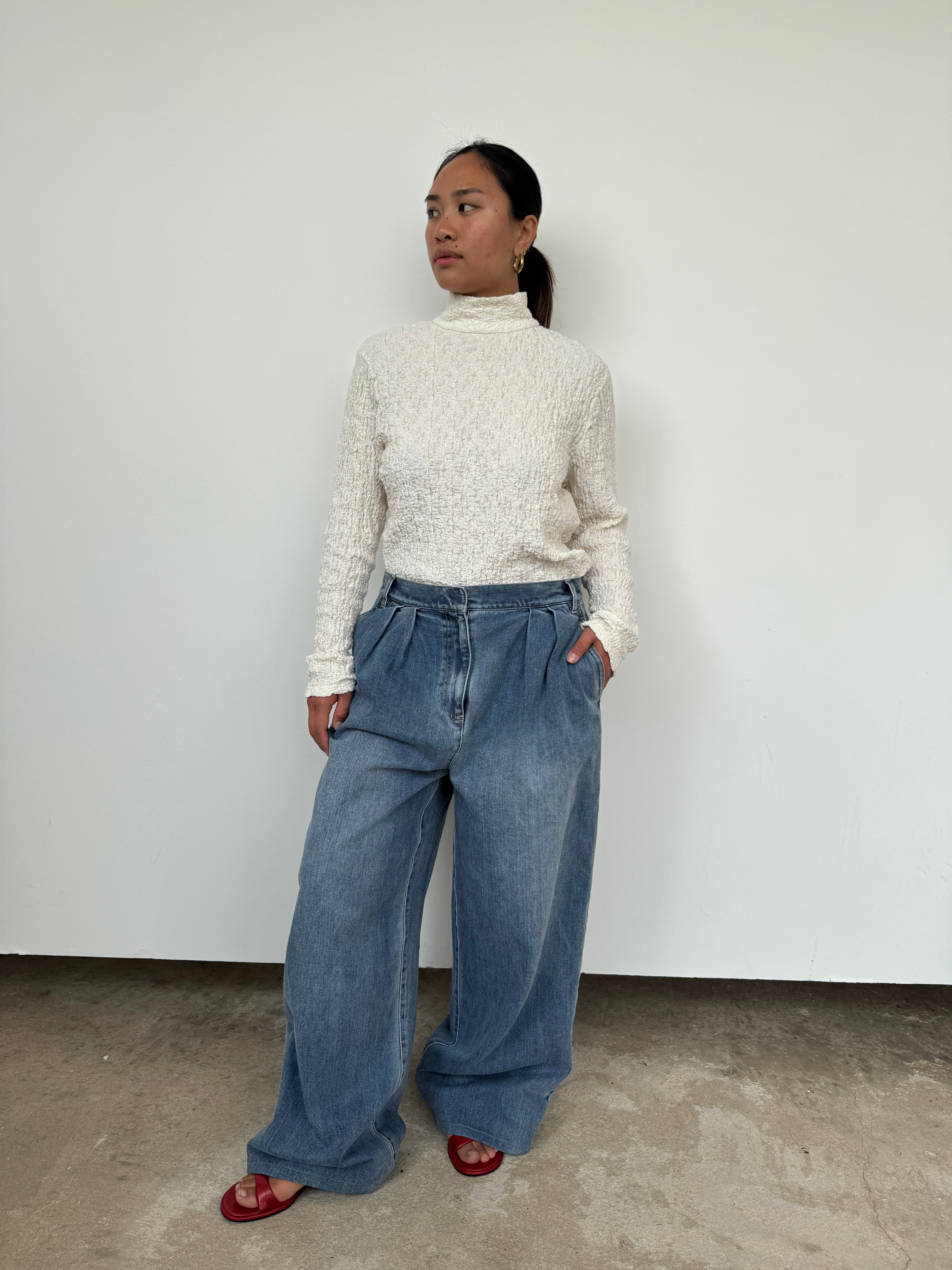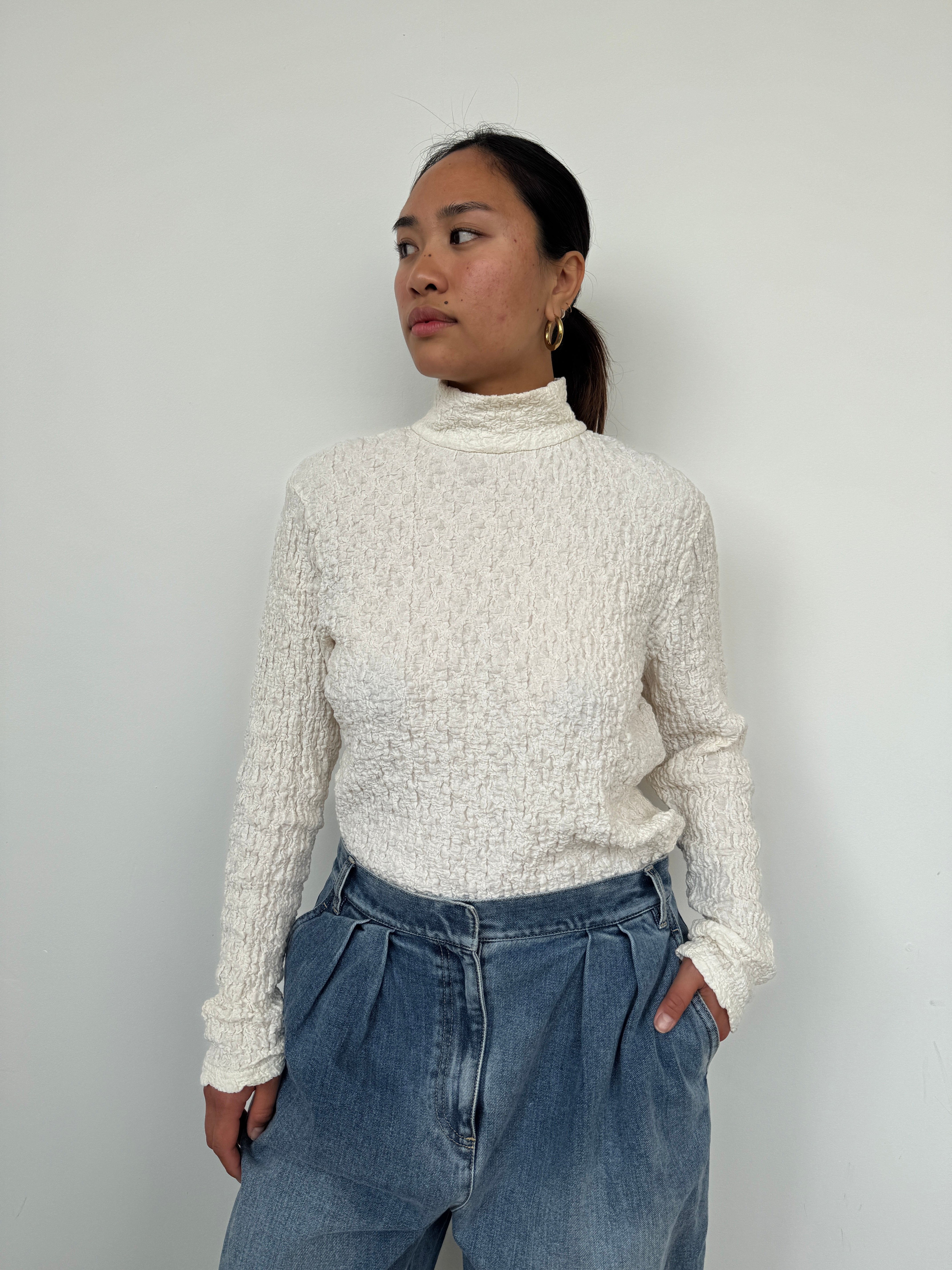 This piece has a beautiful crinkled effect throughout. Features a concealed zip to the reverse