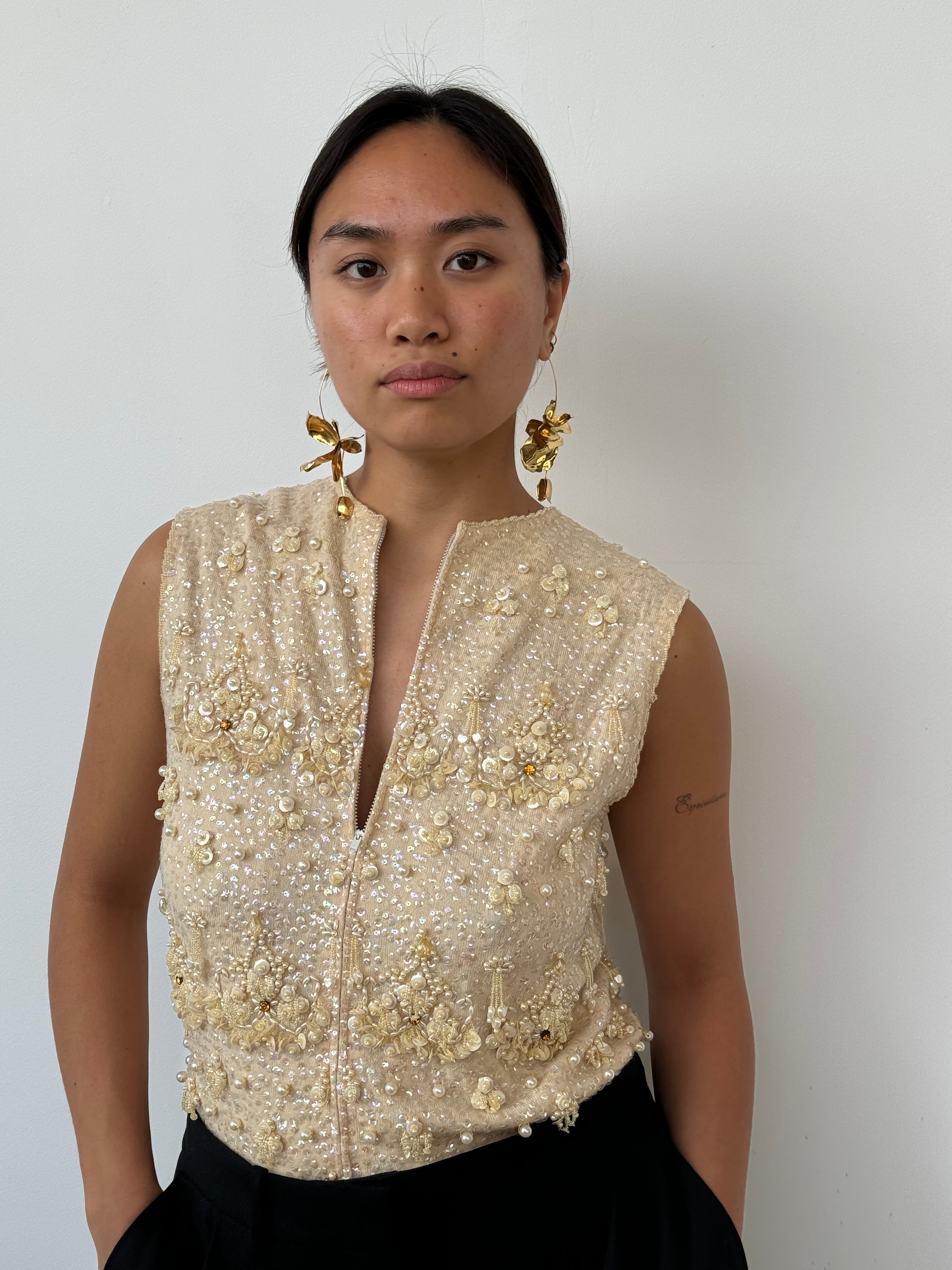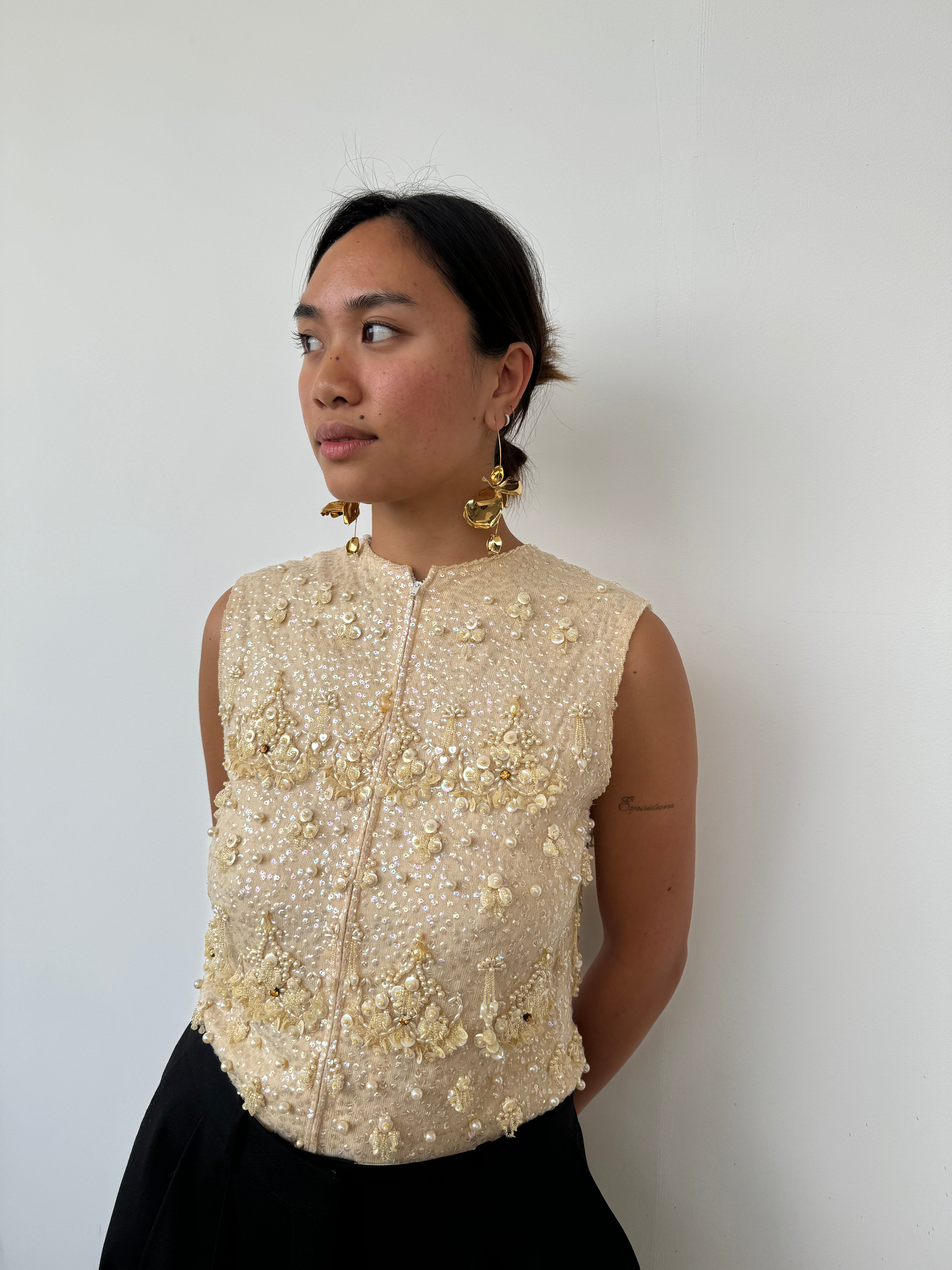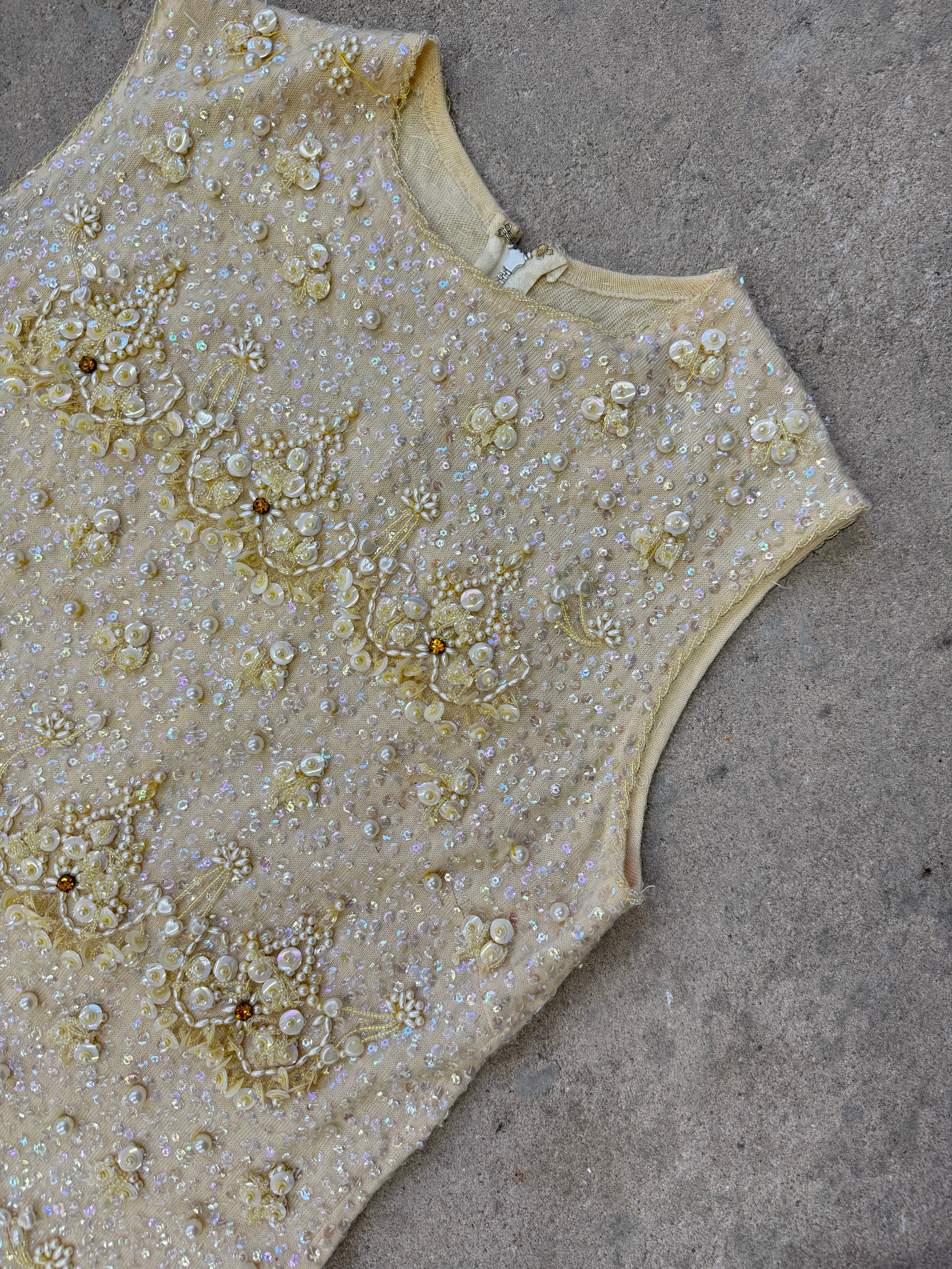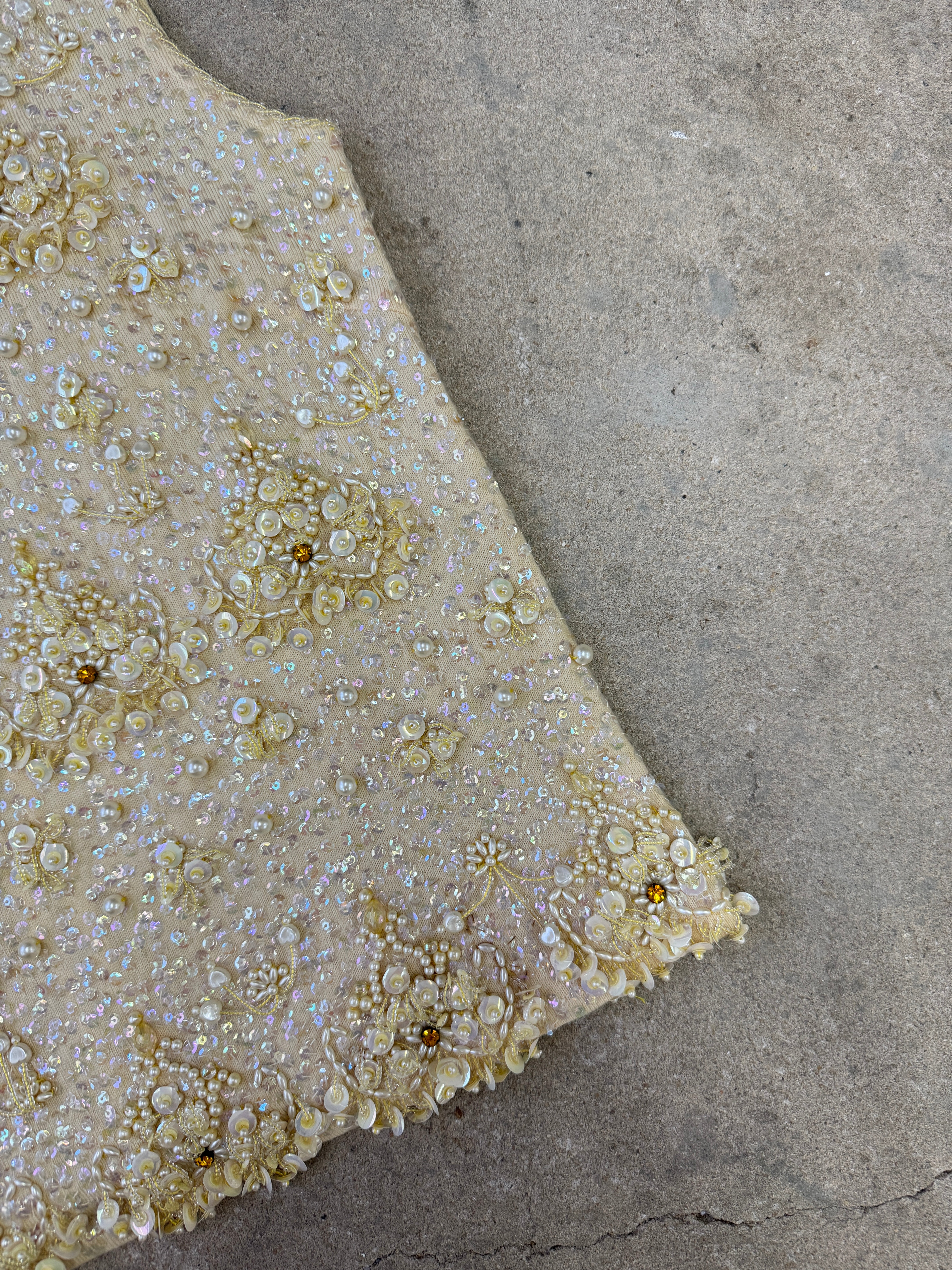 Vintage Light Gold Beaded Top | UK8