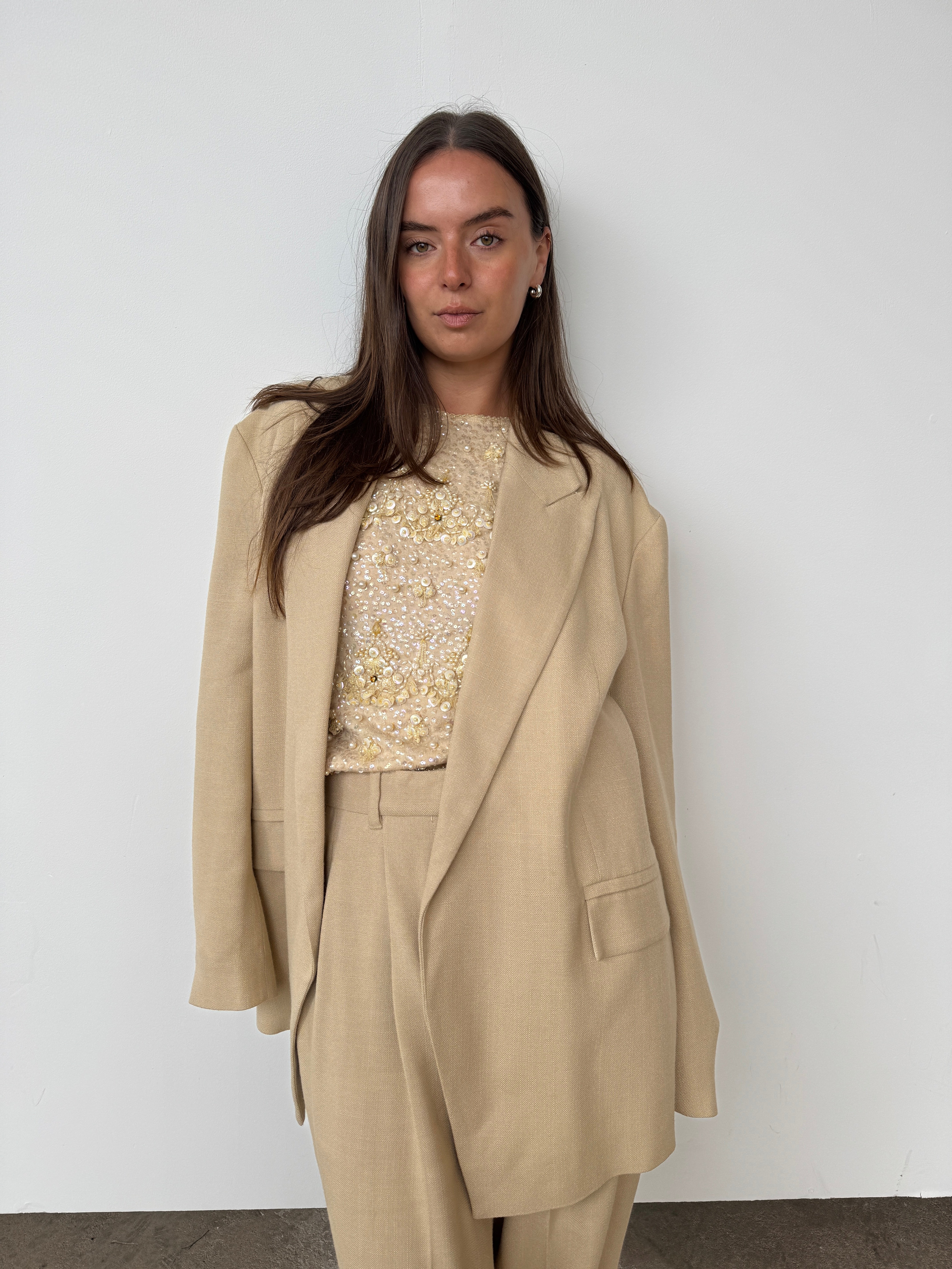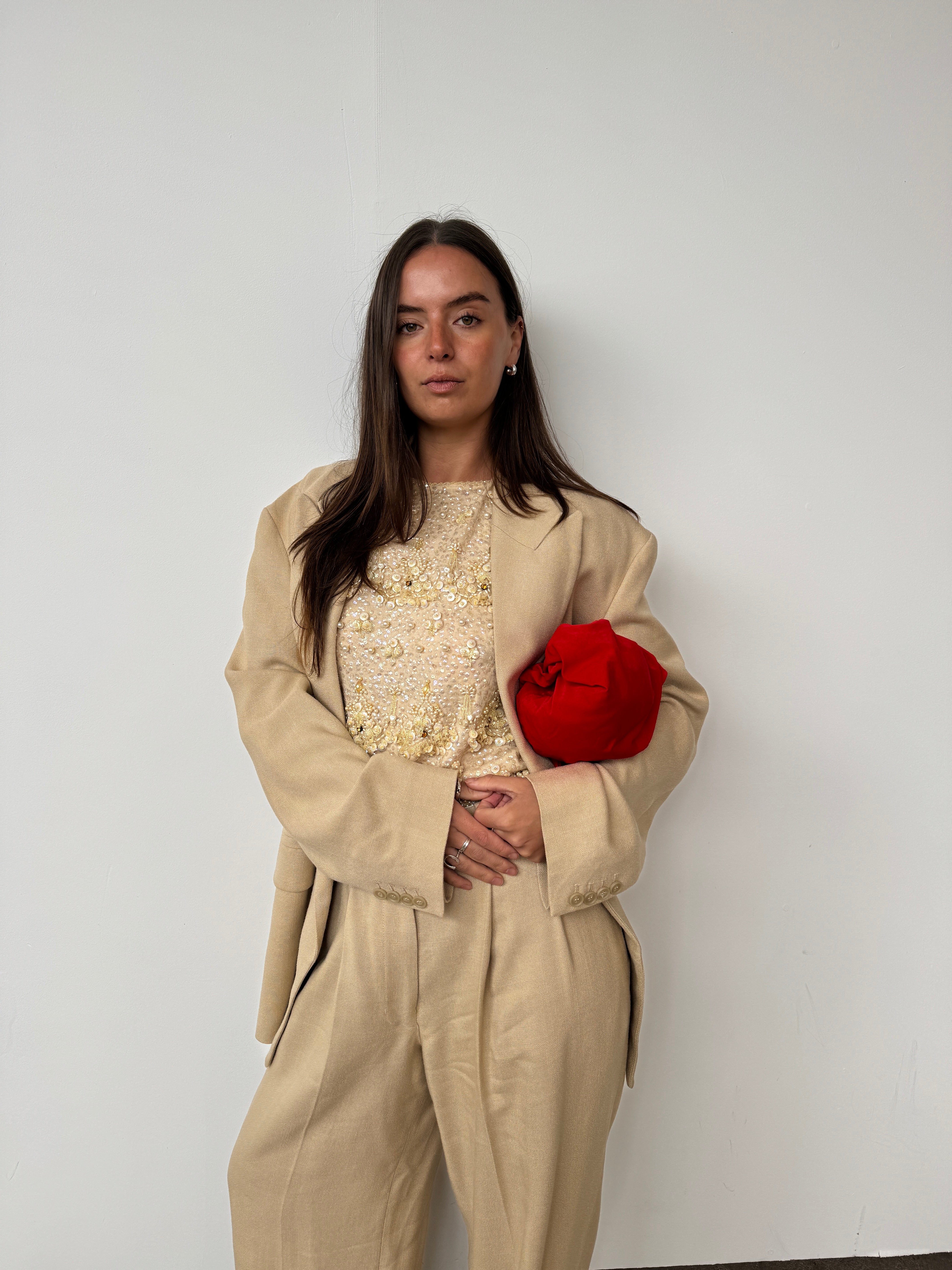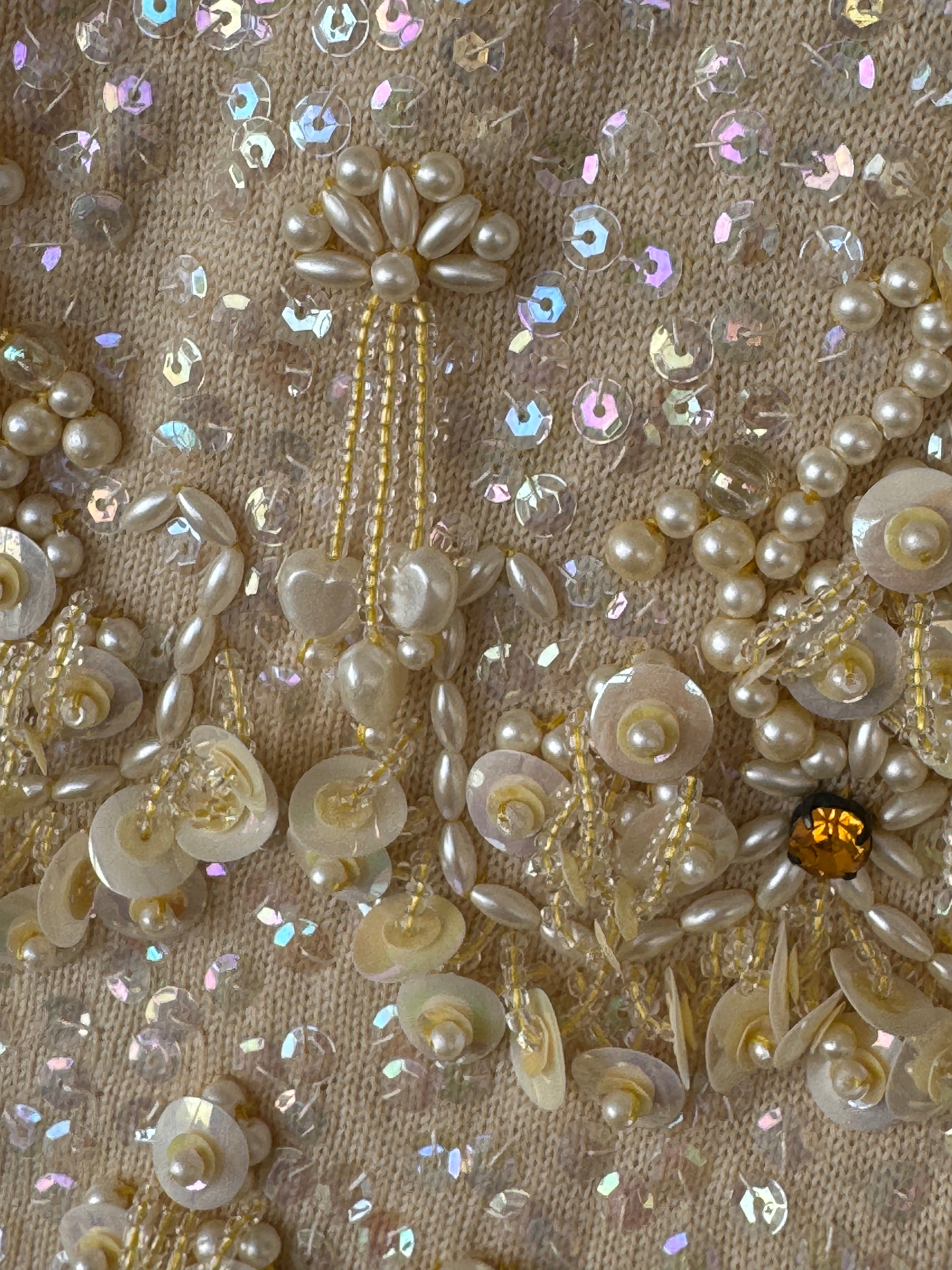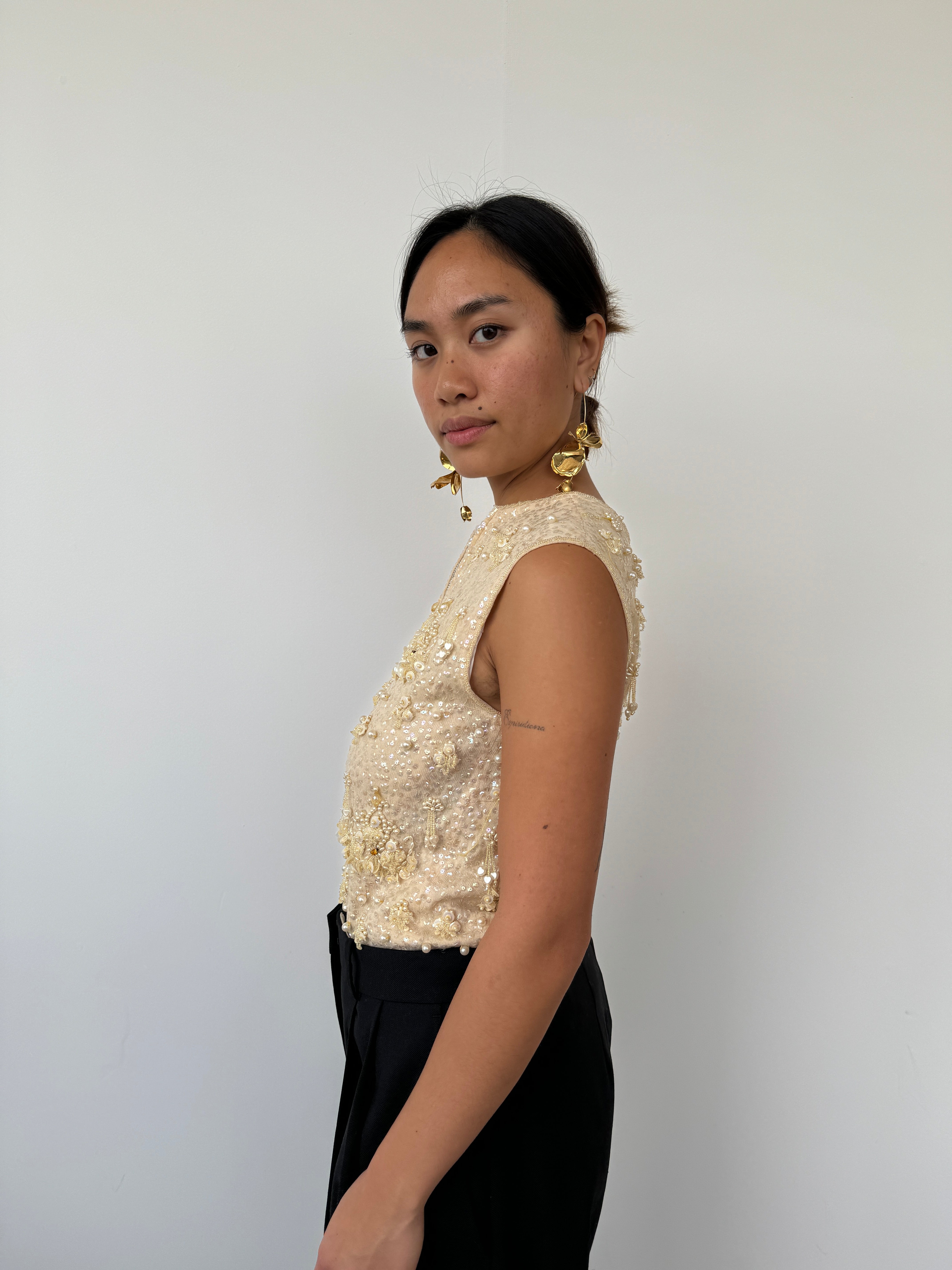 Vintage Light Gold Beaded Top | UK8