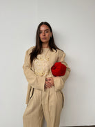 This piece has the most incredible embellishment. It works well worn both ways and features a zip closure