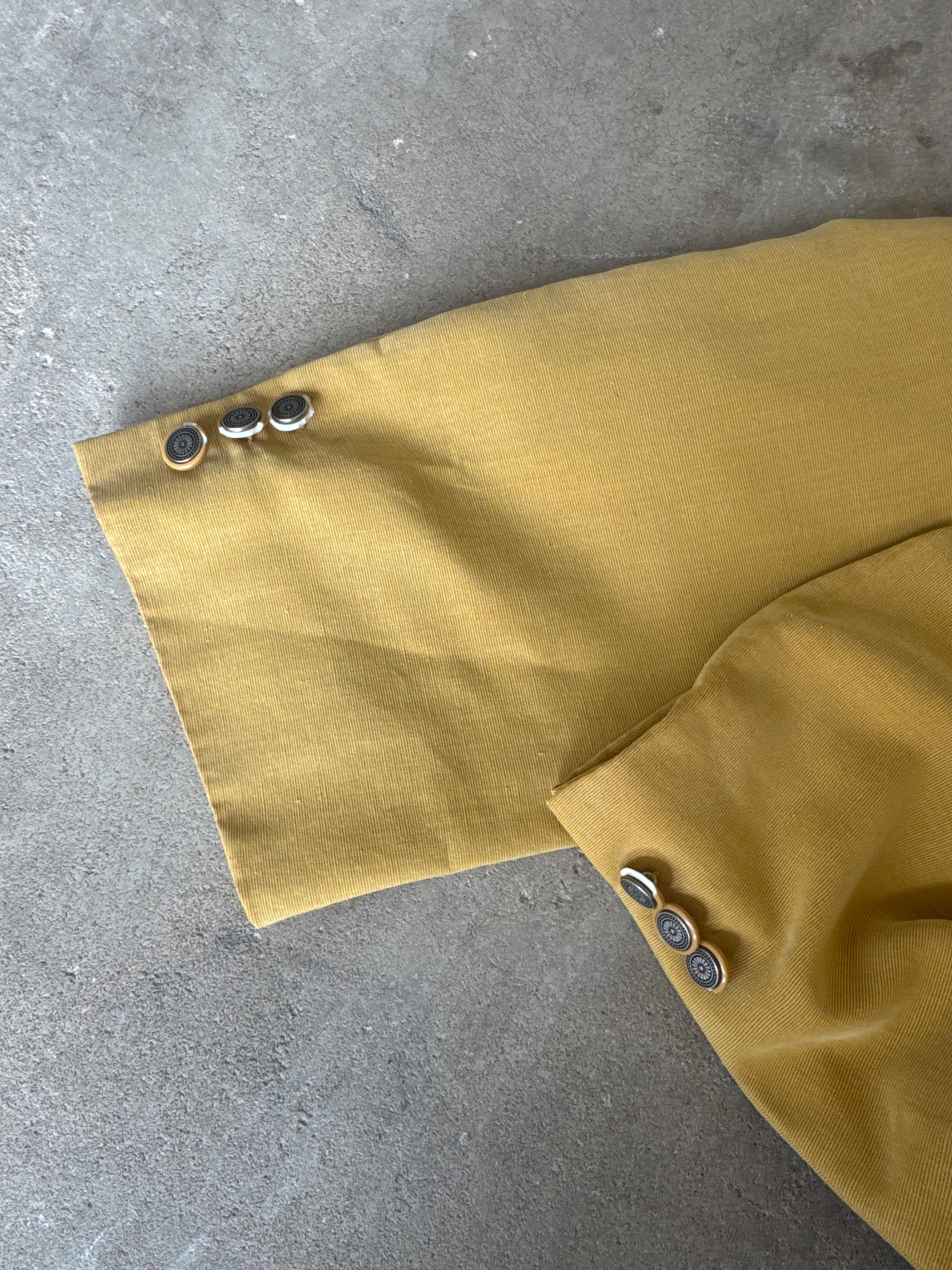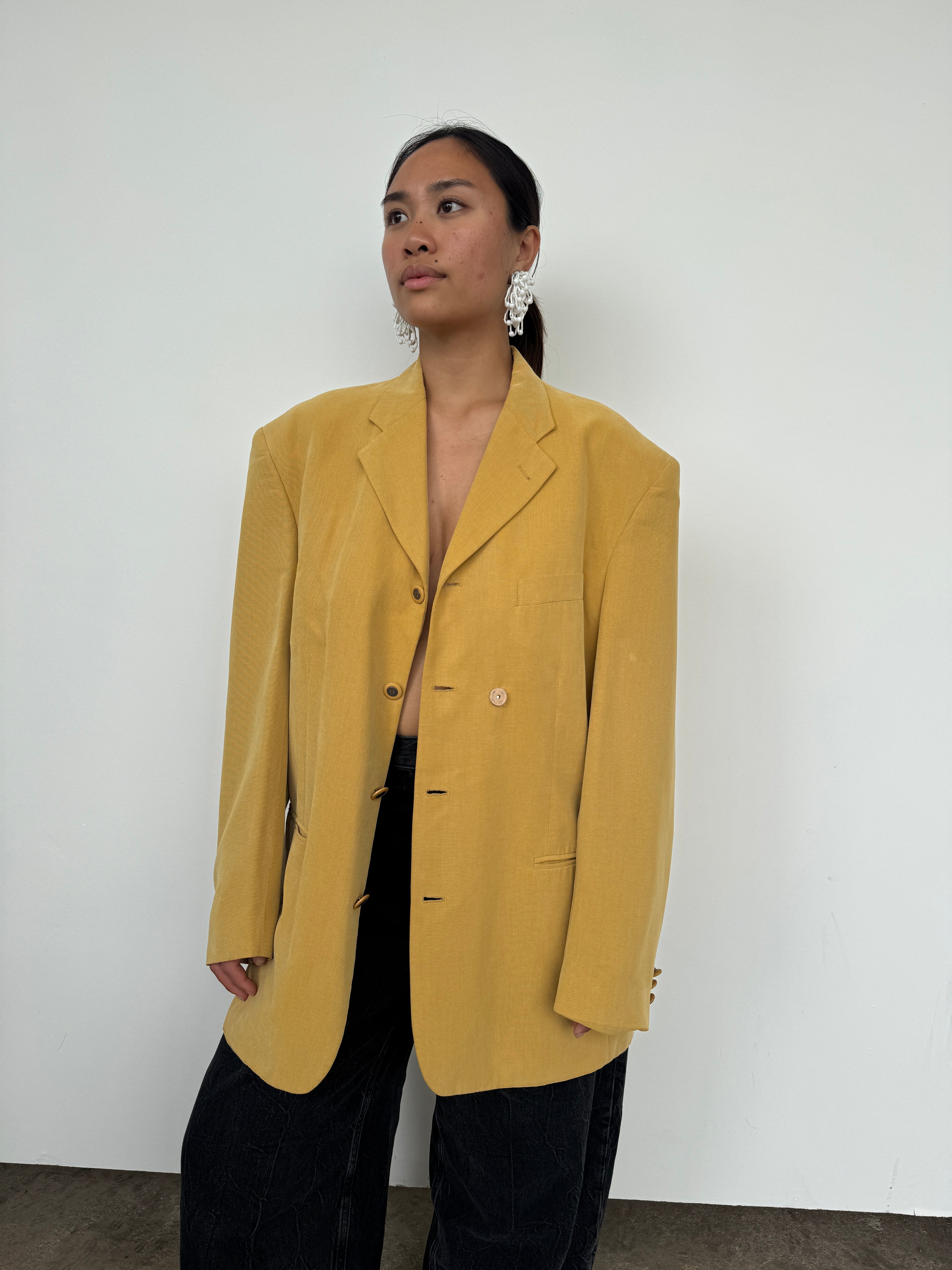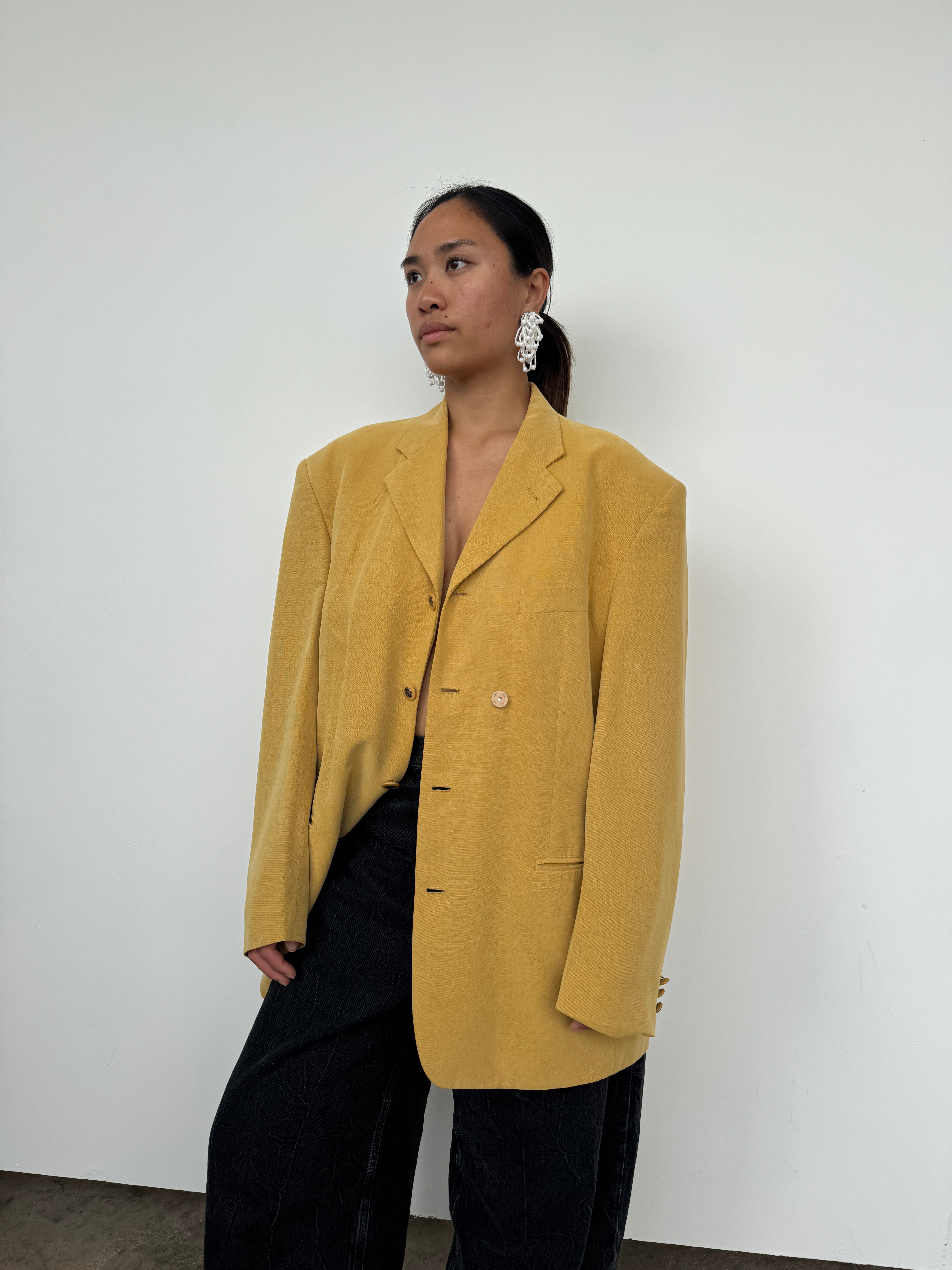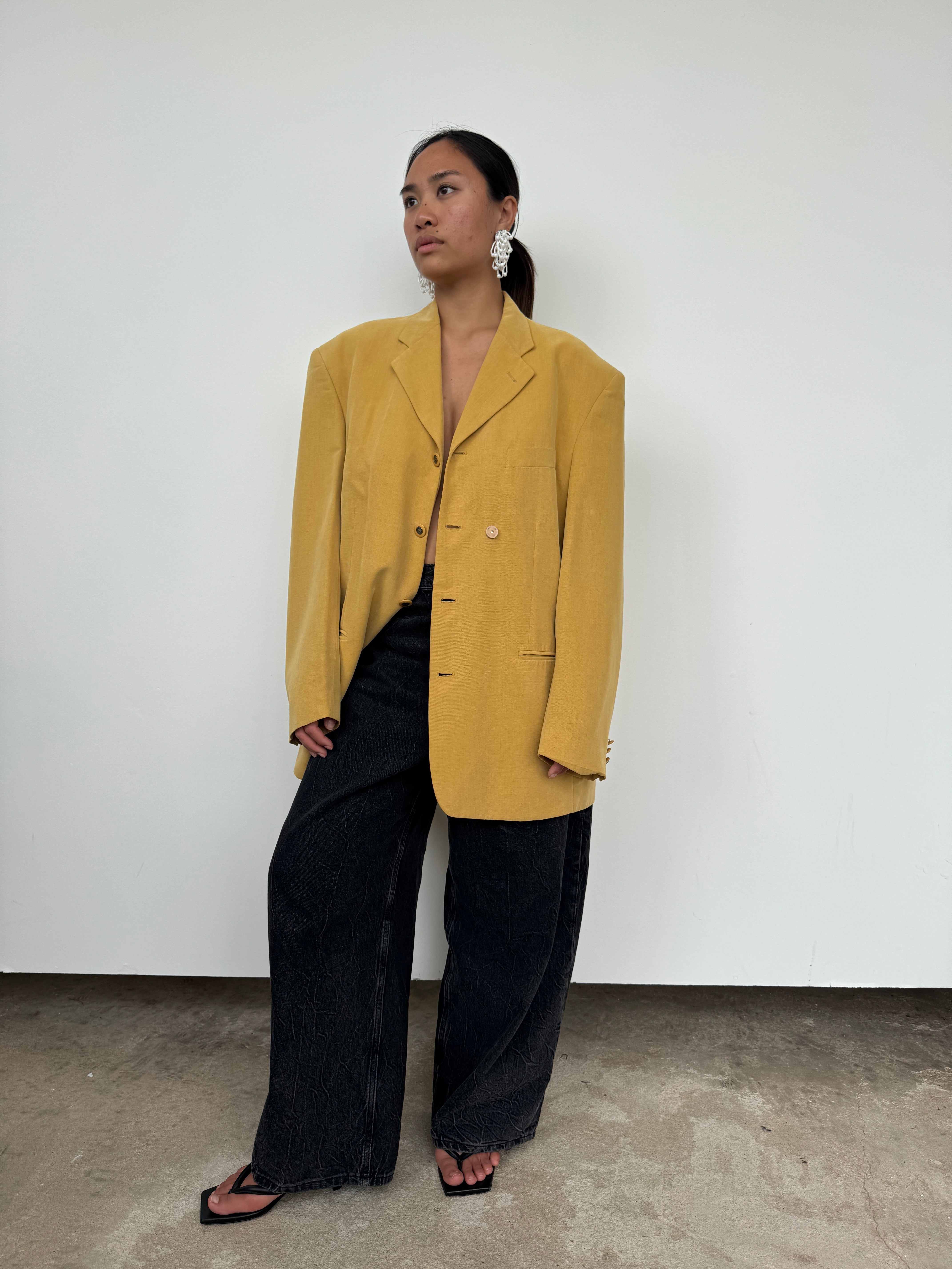 We have added a popper to this piece so that the blazer can be fastened to cinch the waist if desired. This creates a beautiful shape to the piece.