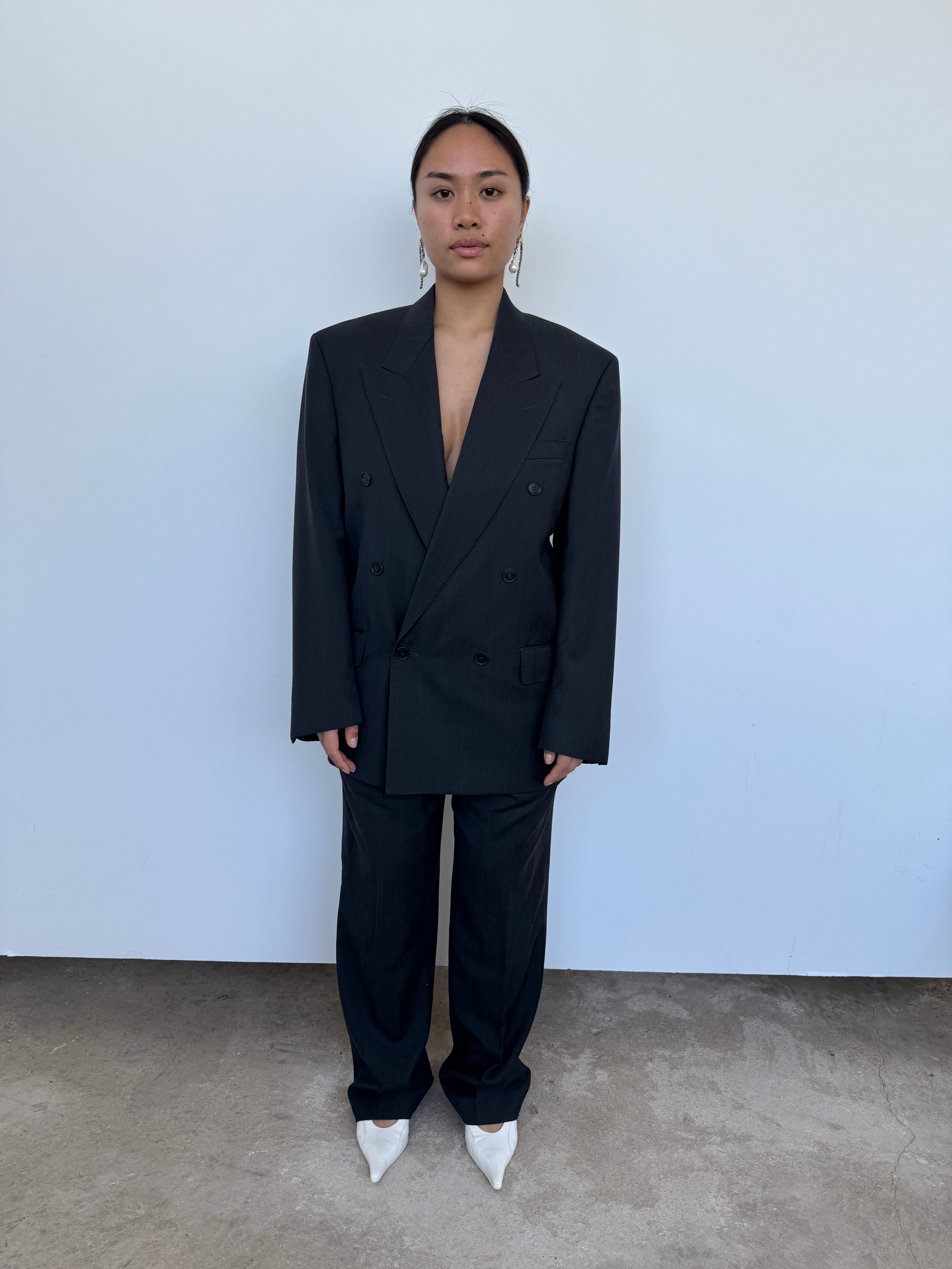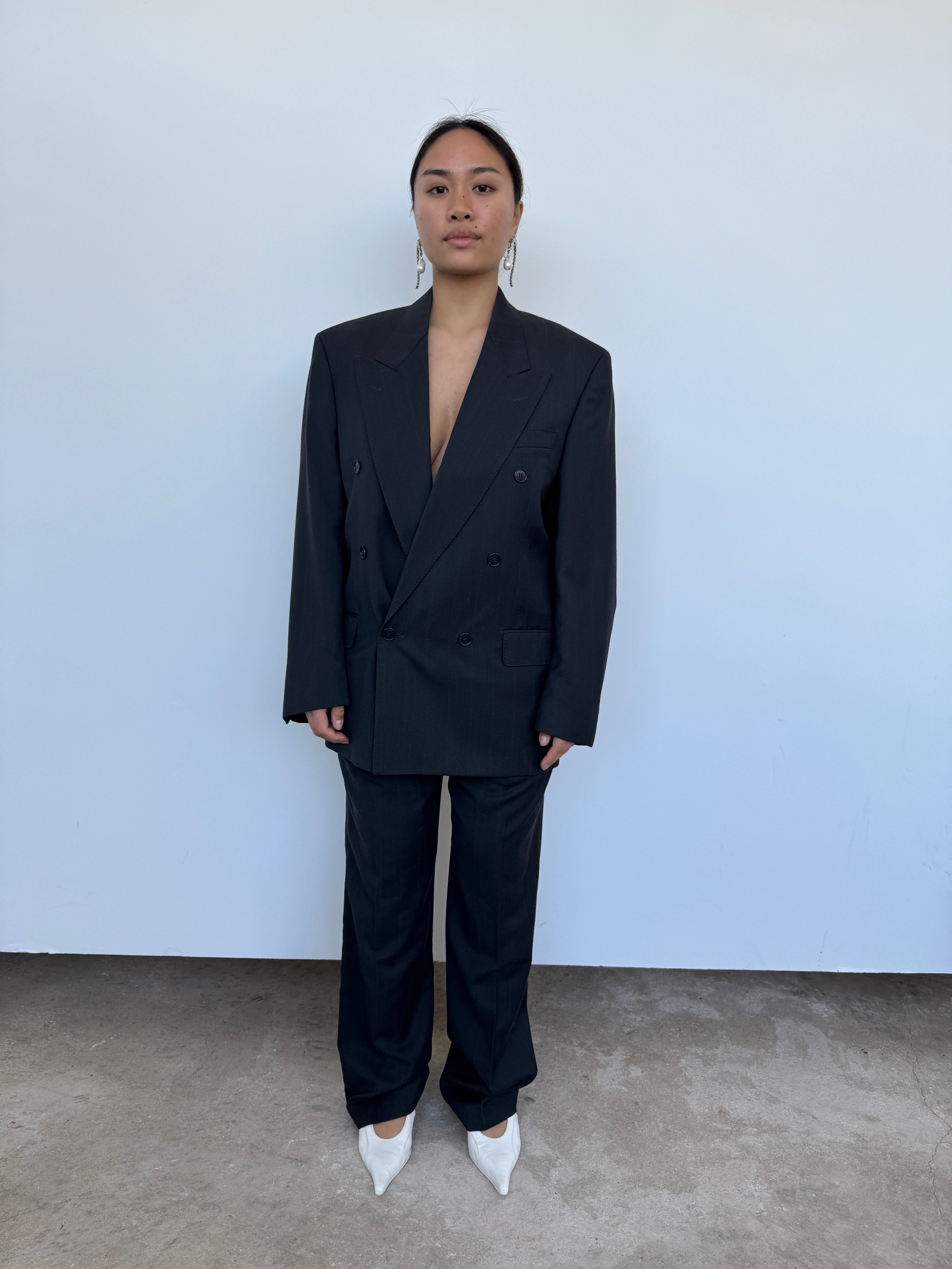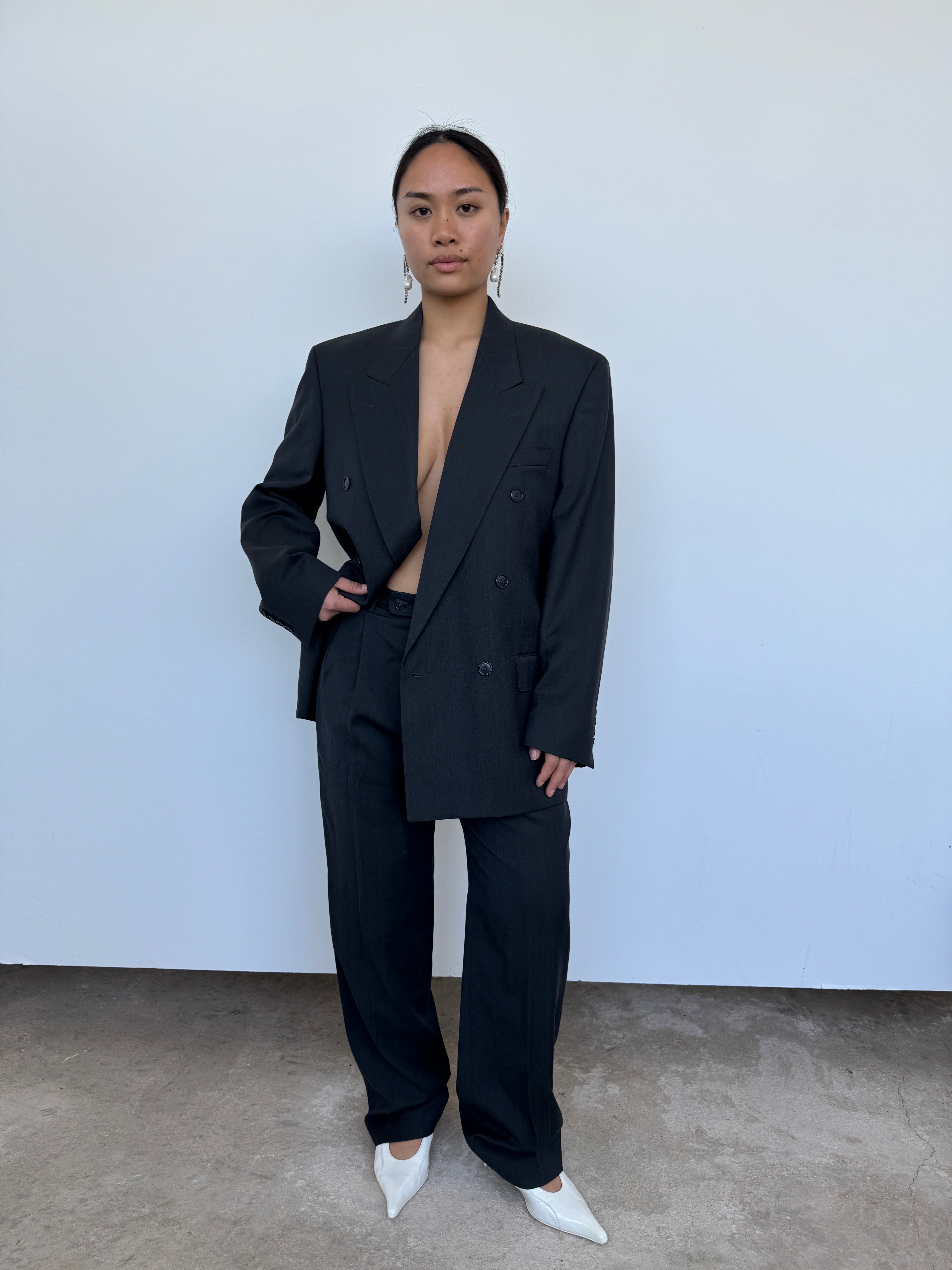 Vintage YSL Charcoal Blazer + Trouser Suit | UK12