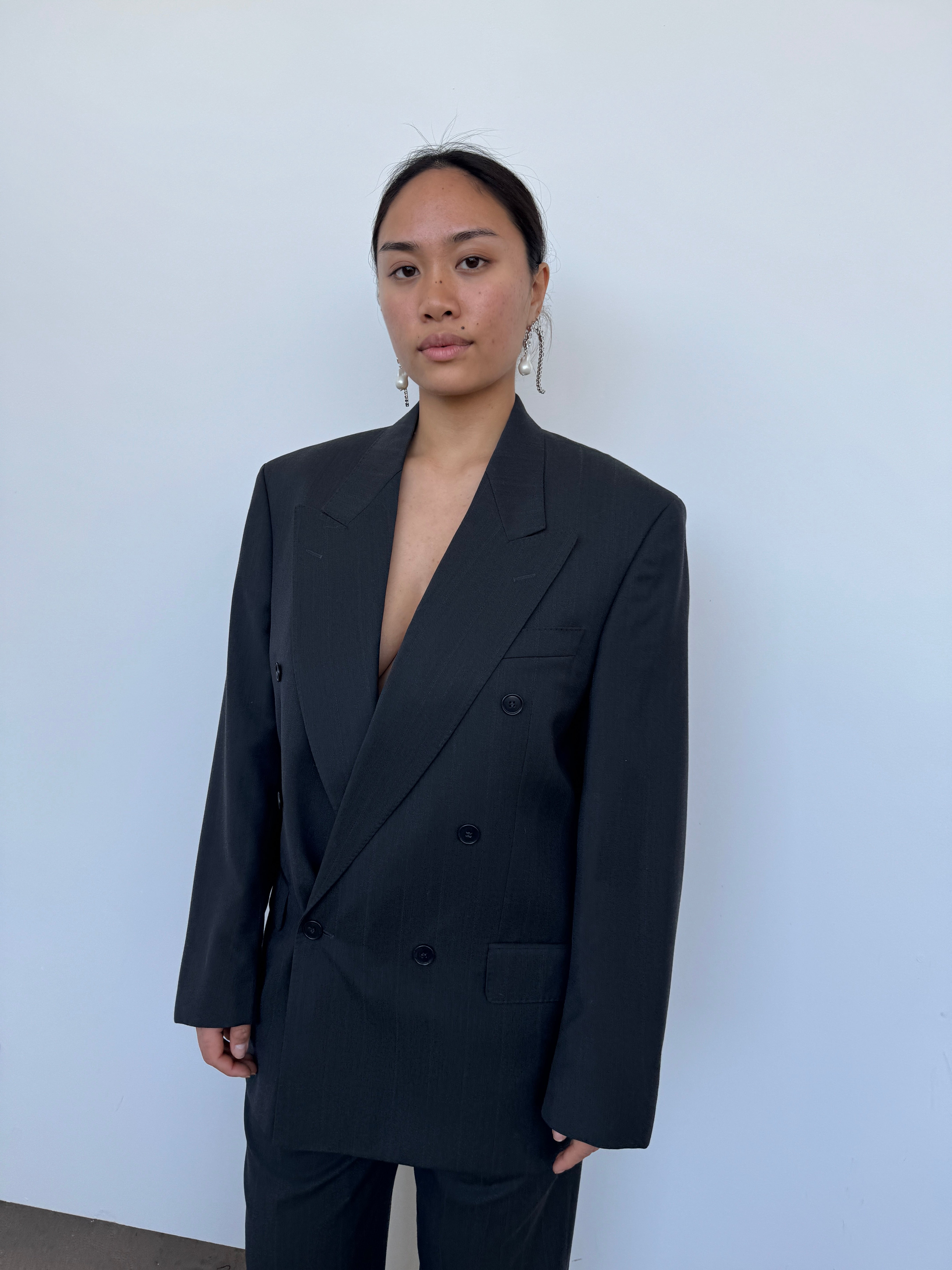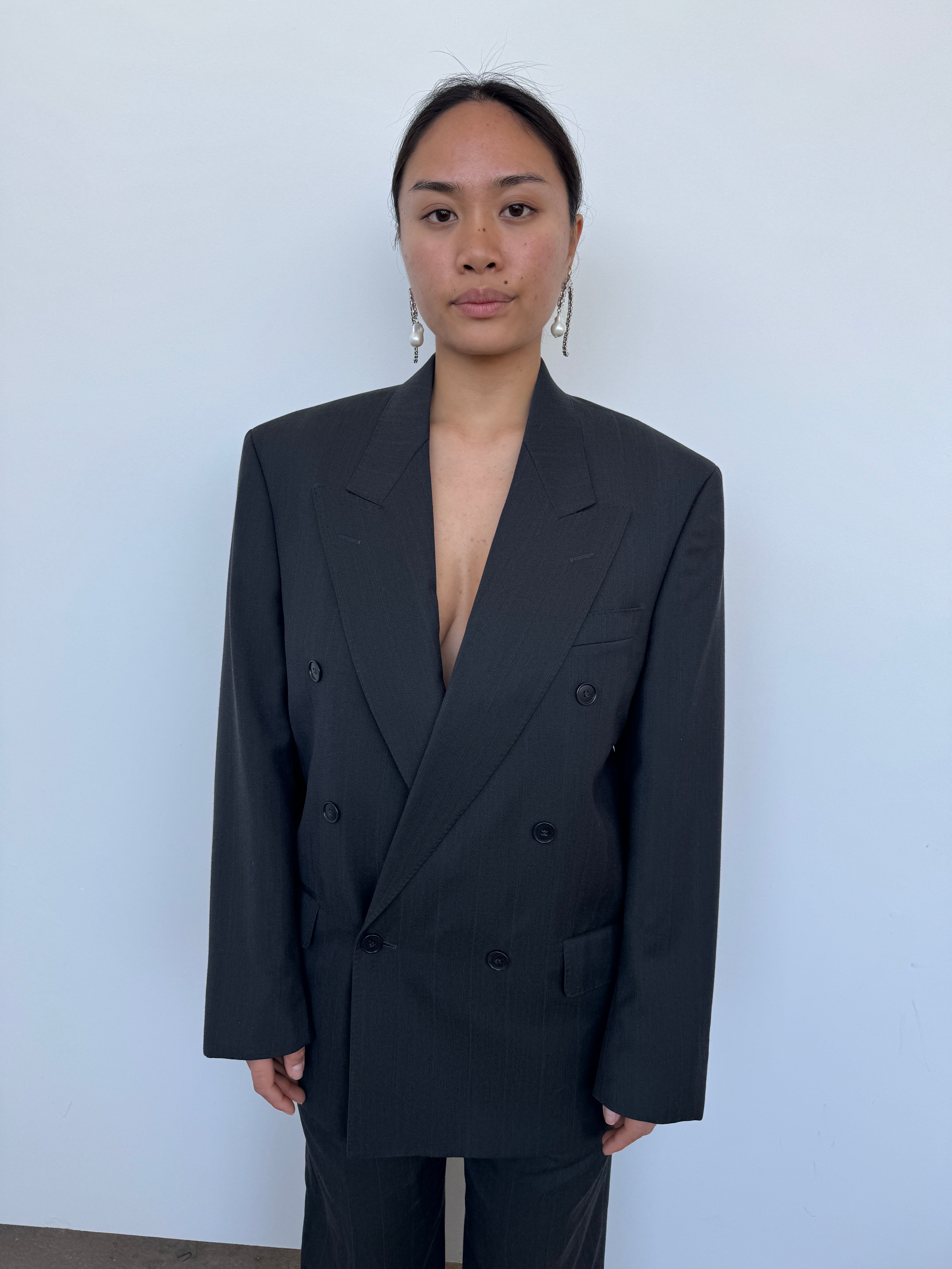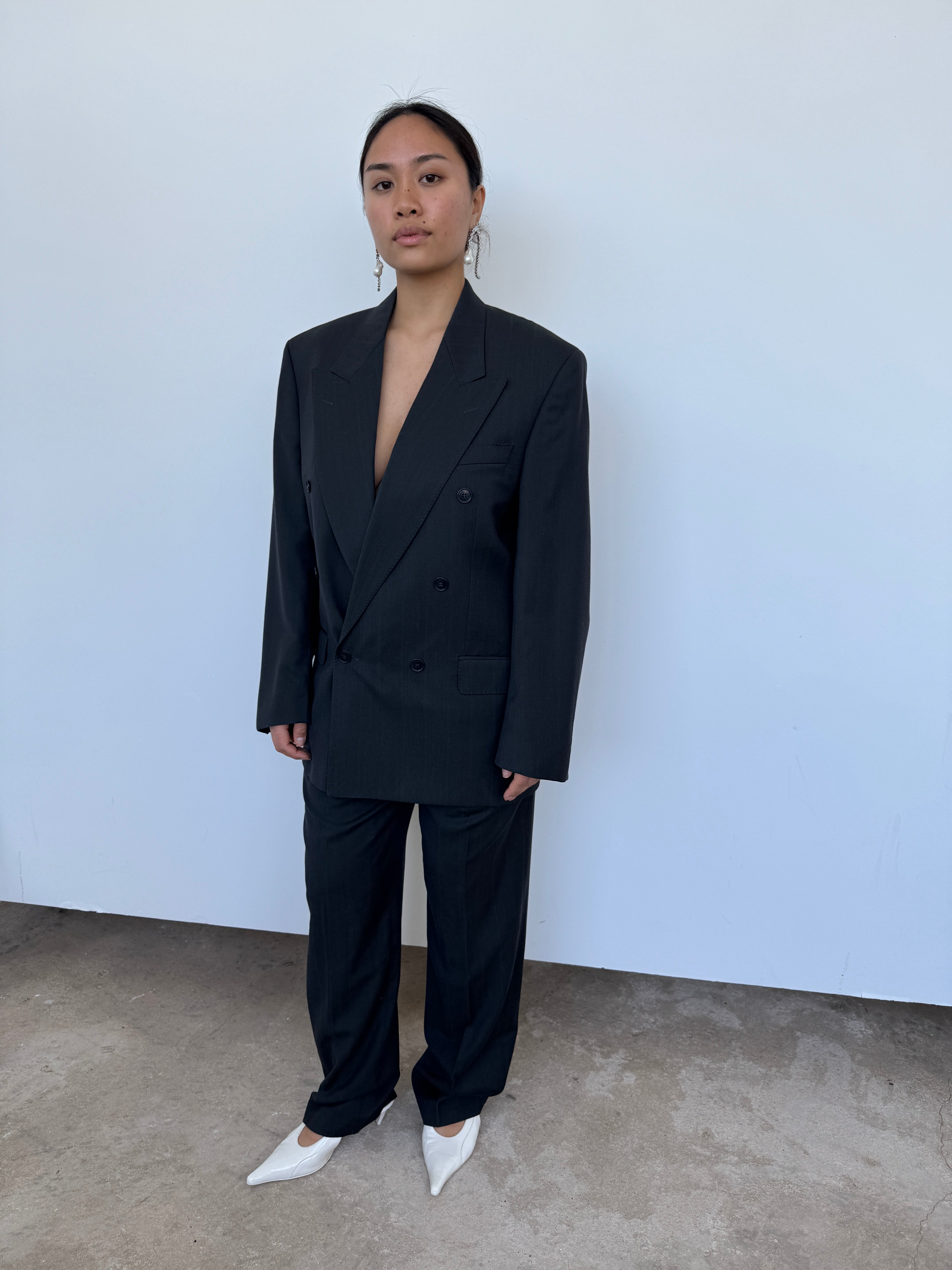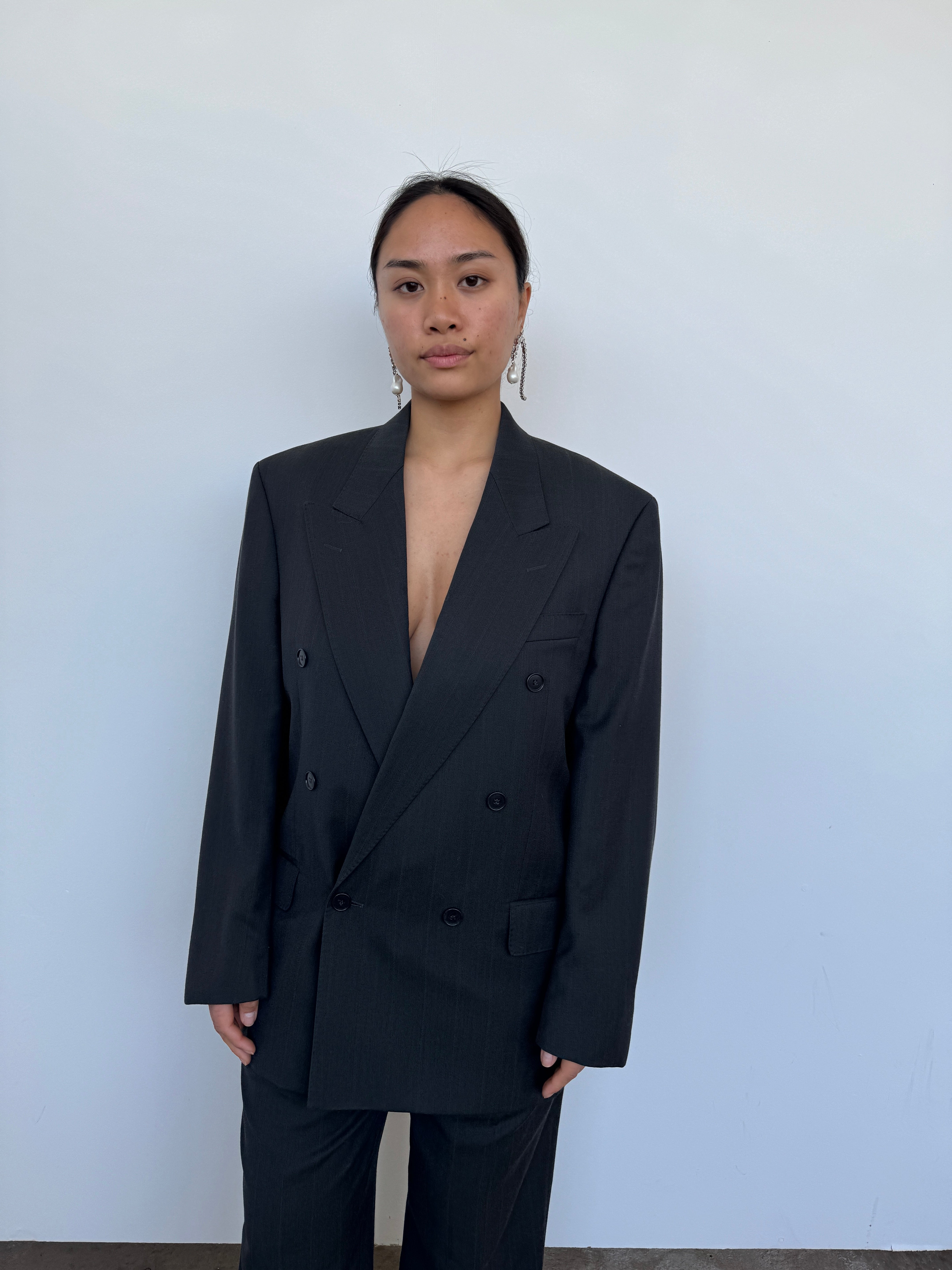 Vintage YSL Charcoal Blazer + Trouser Suit | UK12