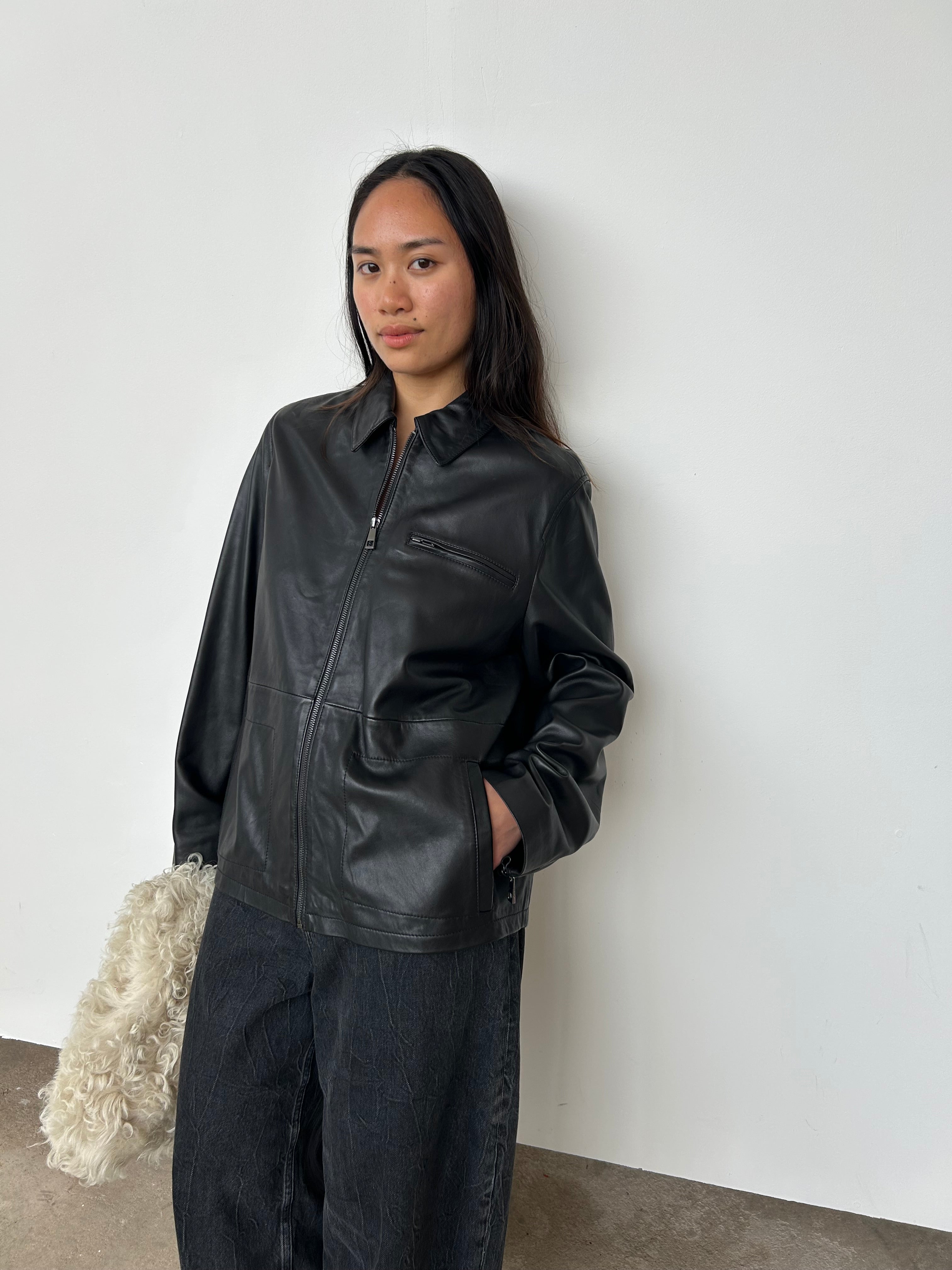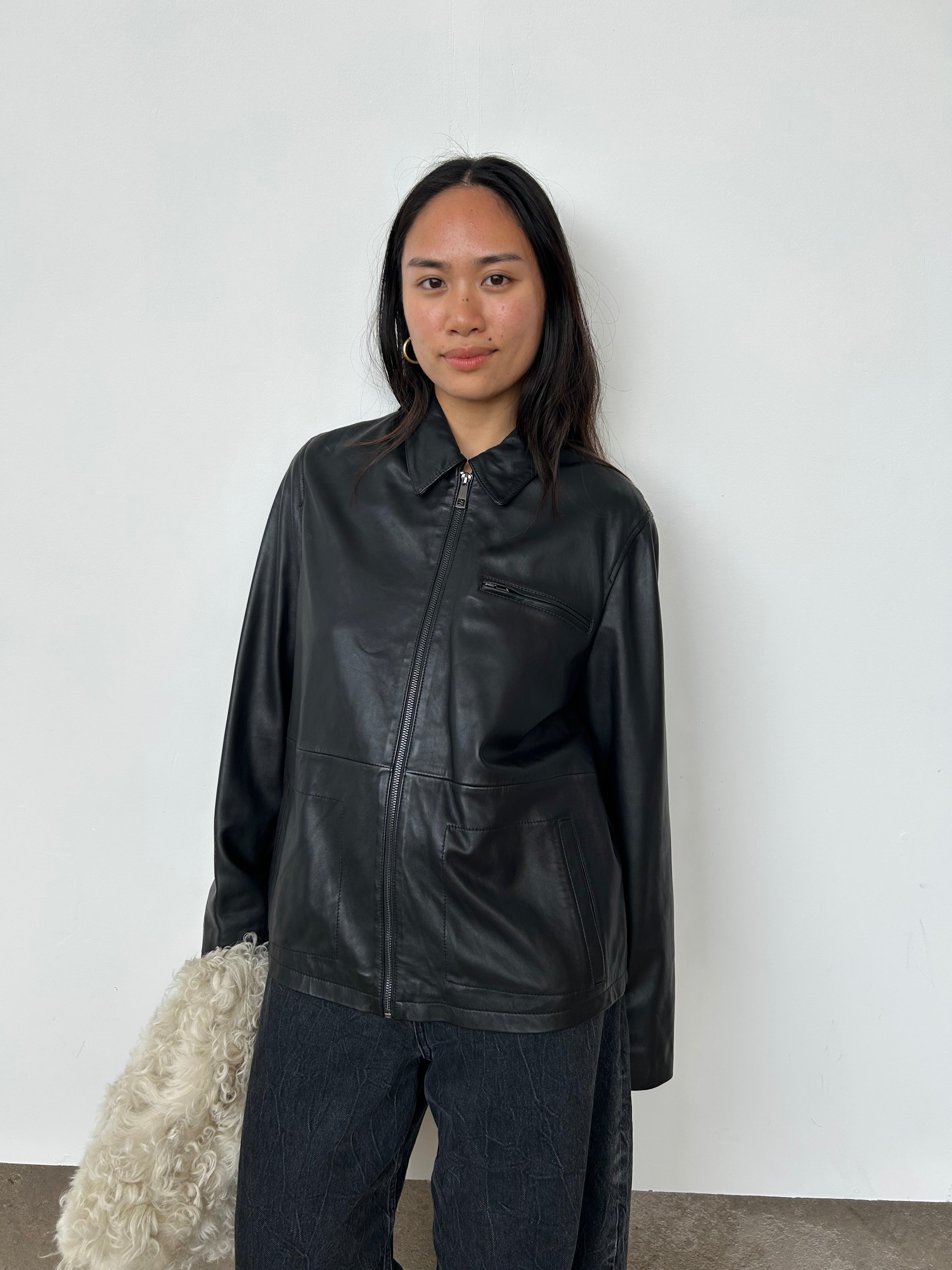 Whistles Black Leather Jacket | UK14